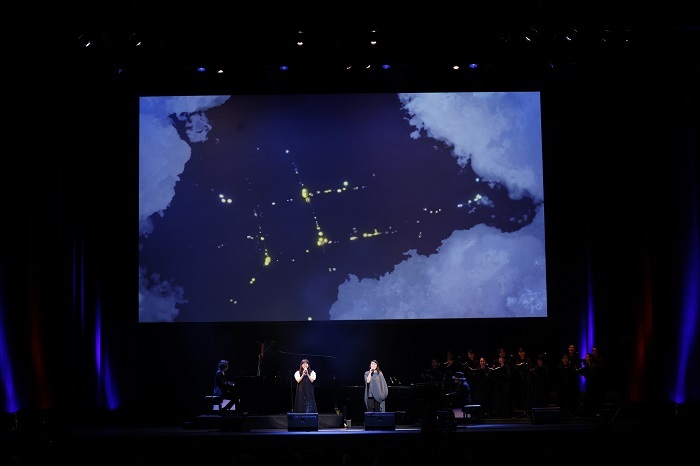 島本や麻衣の歌が続き、心の奥深くを揺さぶる「人の声」の力に感じ入っていると、この日だけのコーラス「リトル・キャロル」がステージに現れ、観客は『もののけ姫』の世界へ誘われていく。