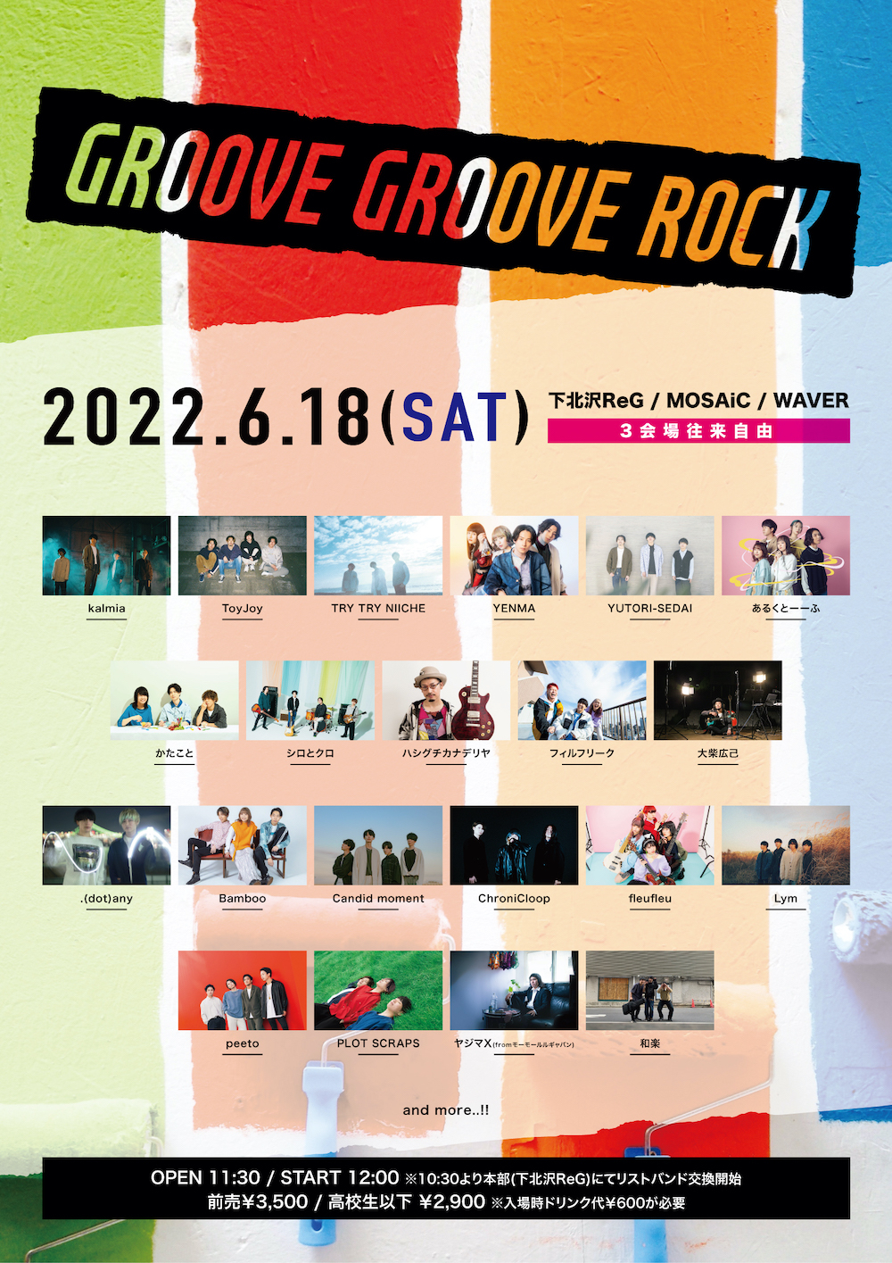 2022年6月18日(土)に下北沢ReG、MOSAiC、WAVERの3会場を使用した歌ものロック系サーキットイベント『GROOVE GROOVE ROCK』の第2弾出演アーティストが発表された。