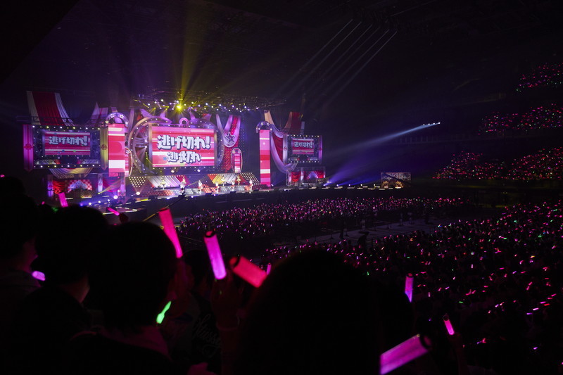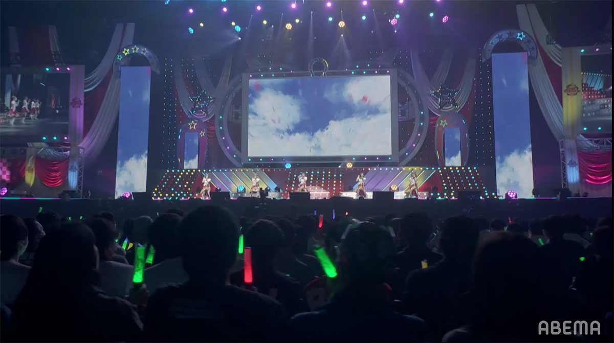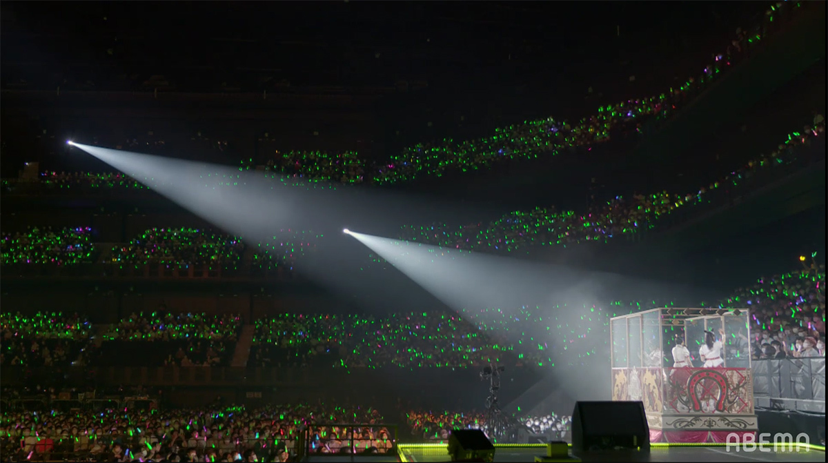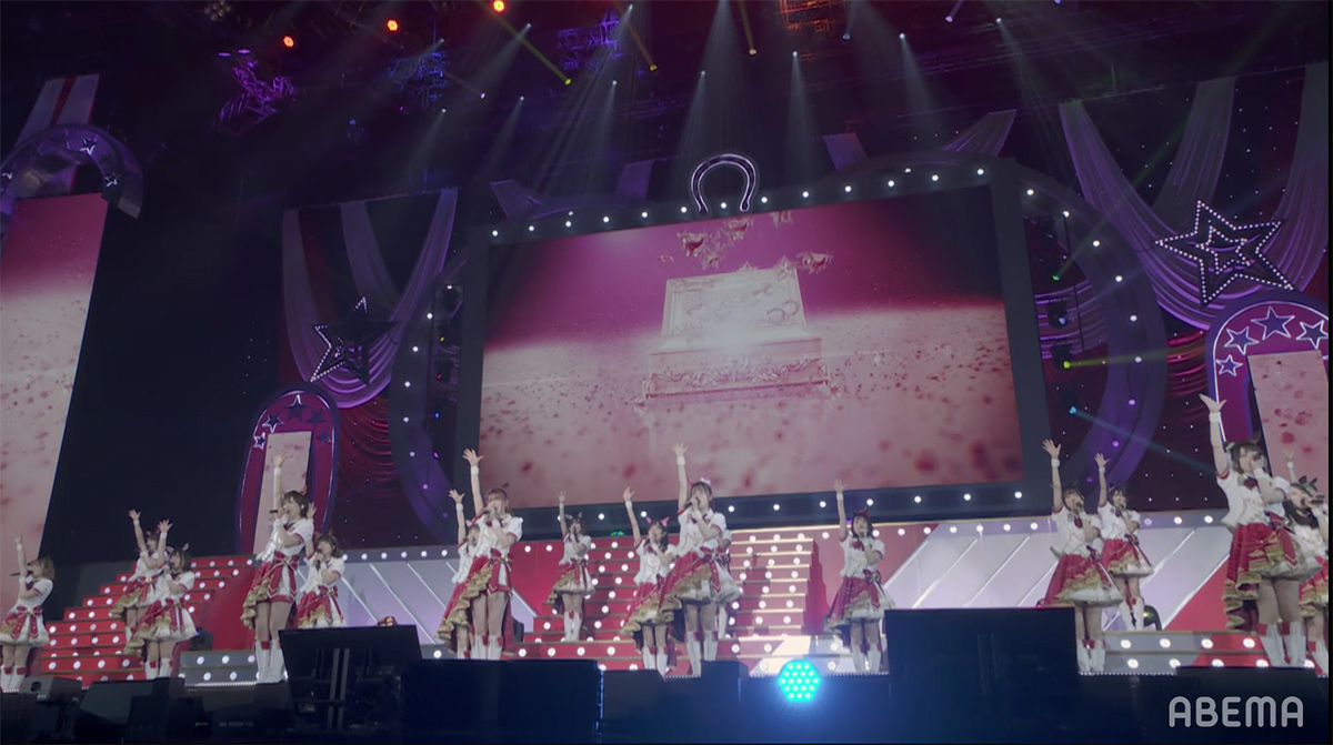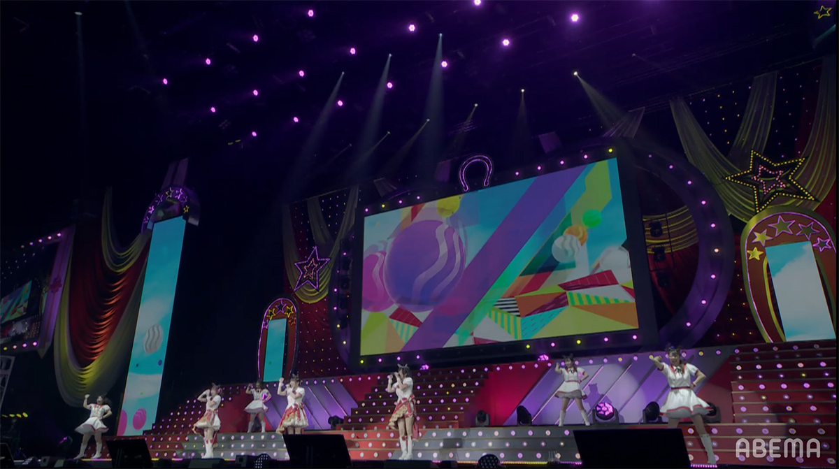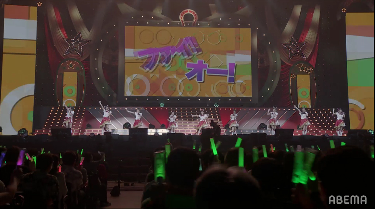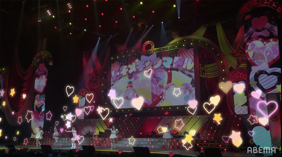 ステージ全体にハートが飛び交うポップな演出と、ピンク色に染まったコンサートライトの輝きが、ウマドルへの想いを目一杯詰め込んだナンバーと最強ウマドルとなったスマートファルコンを祝福するようにステージを盛り上げていく。