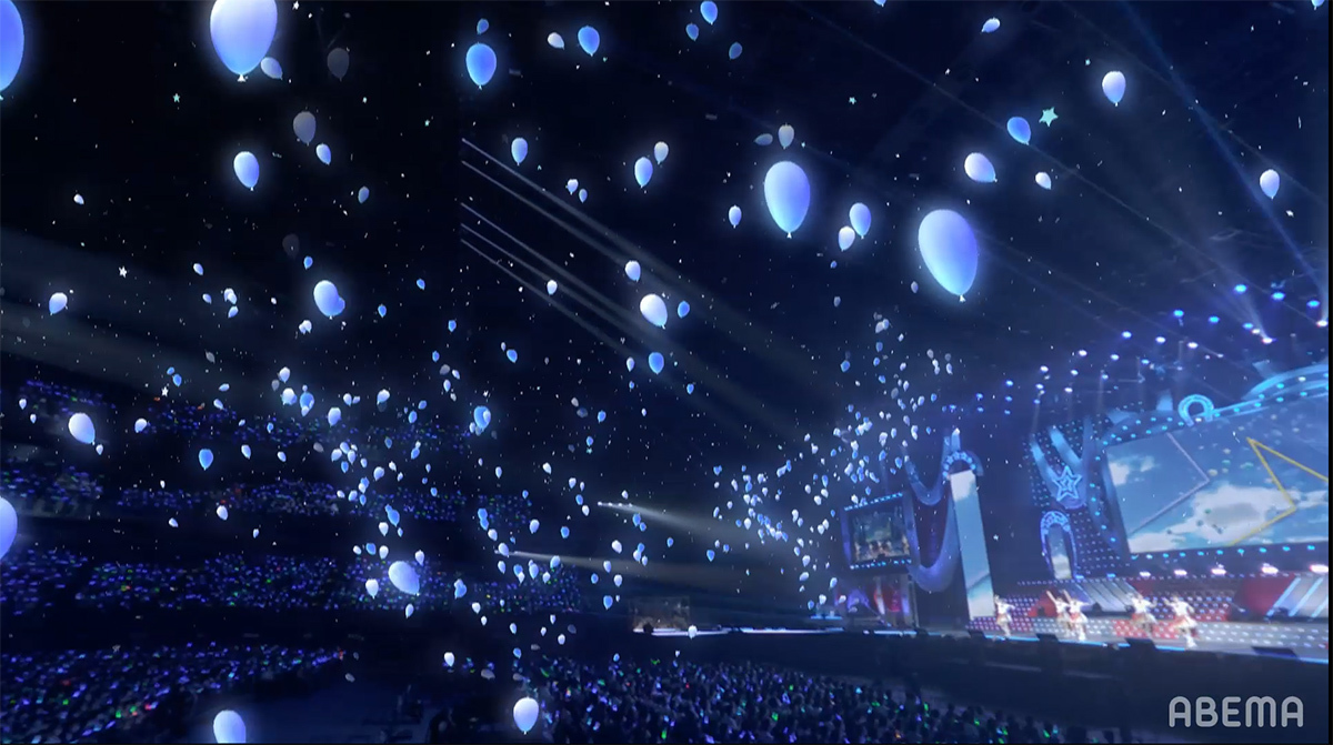 そんな二人のゲキとともに、一緒にがんばってここまで来てくれたトレーナー(ファン)へのウマ娘達からの感謝を込めた歌声が場内に響き渡る。それに応える様に客席はターフのような緑のコンサートライトの輝きで埋めつくされ、配信ではその上空をウマ娘の走りのような輝きが駆け抜け、色鮮やかなバルーンが舞い上がっていく。