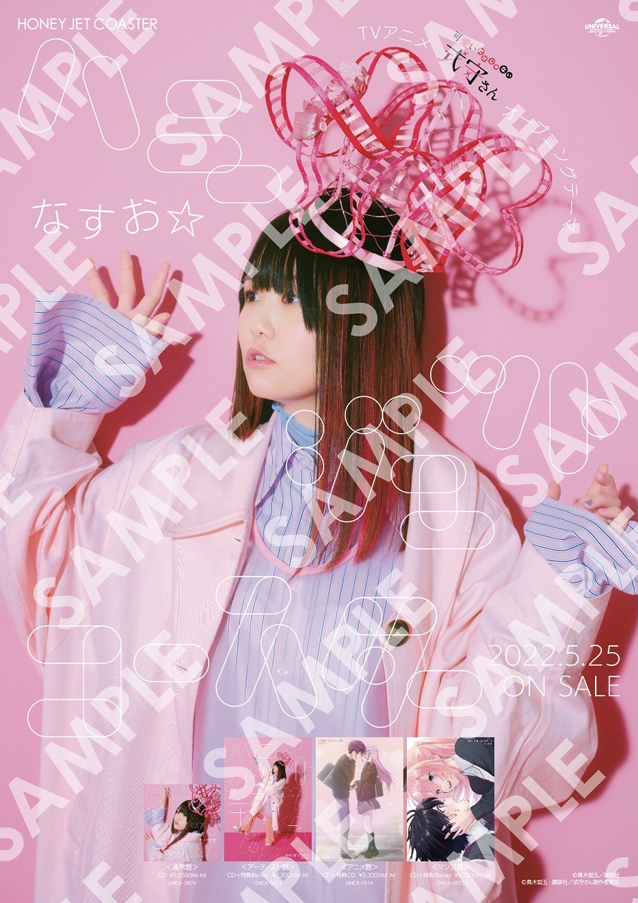 2022年5月25日(水)発売となるTVアニメ『可愛いだけじゃない式守さん』OPテーマ、なすお☆が歌う「ハニージェットコースター」のジャケットと法人特典が解禁された。