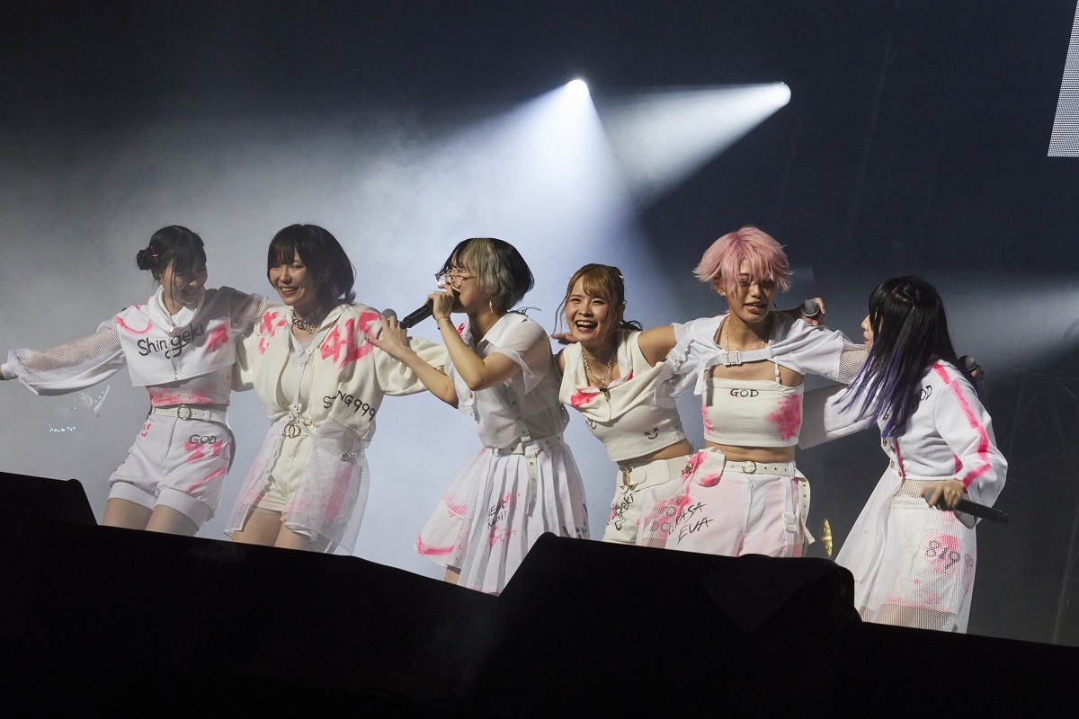 三笠:対バンでは、あまねのスクリームや、よいこのラップのスキルの高さは特に“アイドルなのにここまでやれるの?”と驚いて、神激に食いついてくれる部分になってましたね。あとは音の違いもよく驚かれたんですよ。“CD流してるんじゃないの?”というところから、パラデータで分けて音が生演奏のように変化してすごい音圧で出てくるところは“俺らより音すごくない?”と食いついてくれる方が多くて。リハのときにドラムの音、バスドラのドンドンドン、シンバルのシャシャシャって音が始まると“バンドじゃないのになんでドラムの音がするの?”、“見えないところにバンドがいるの?”と何度も驚かれました。そういう意味で、他のバンドさんともアイドルさんとも違う、神激のライブの音作りは、すごく誇れるところだなと改めて思いましたね。