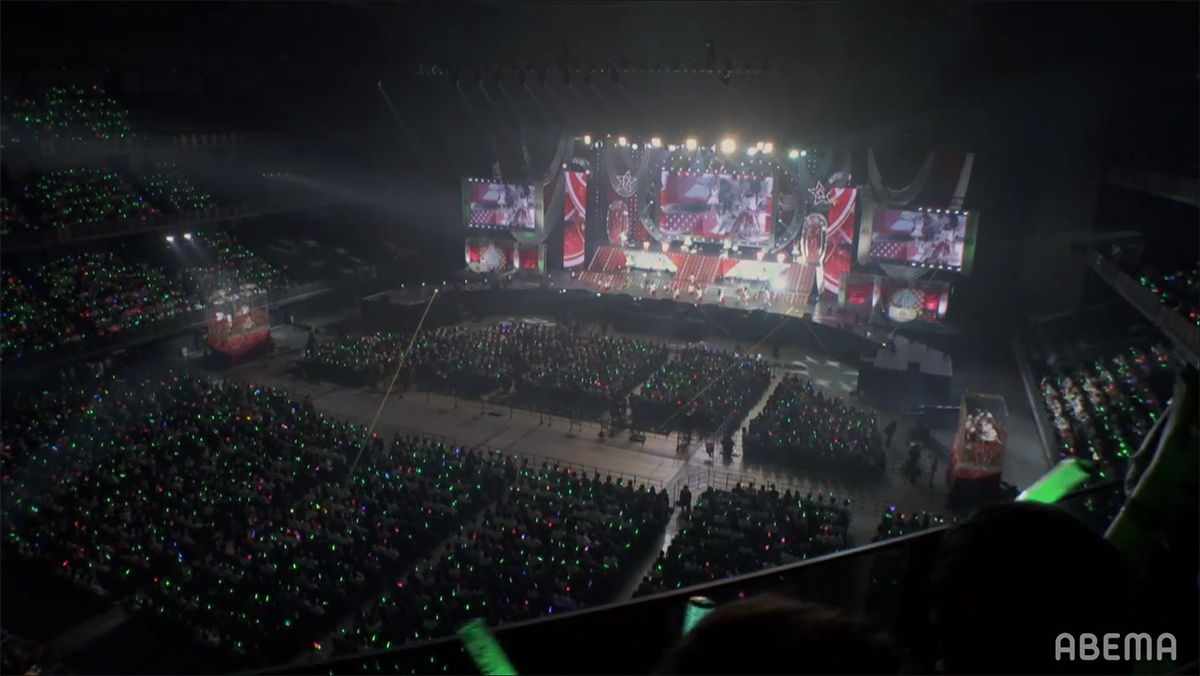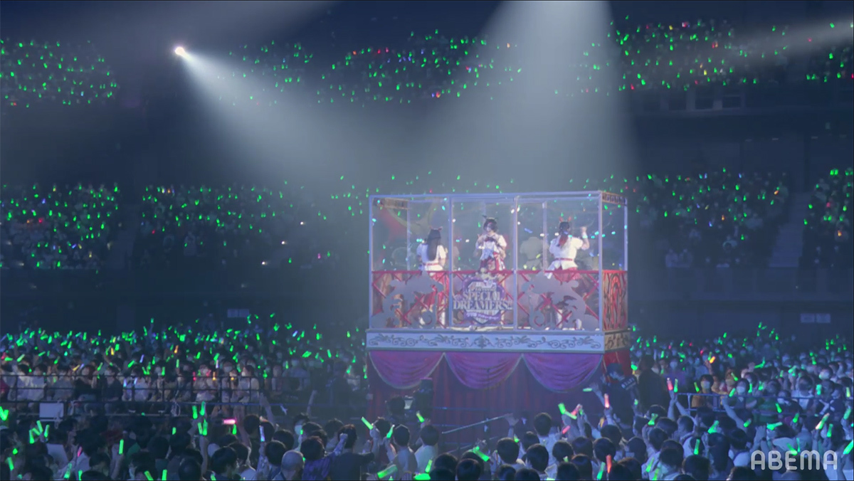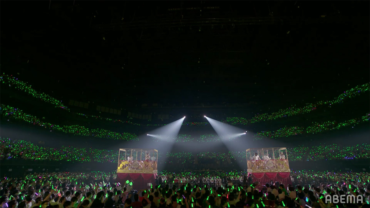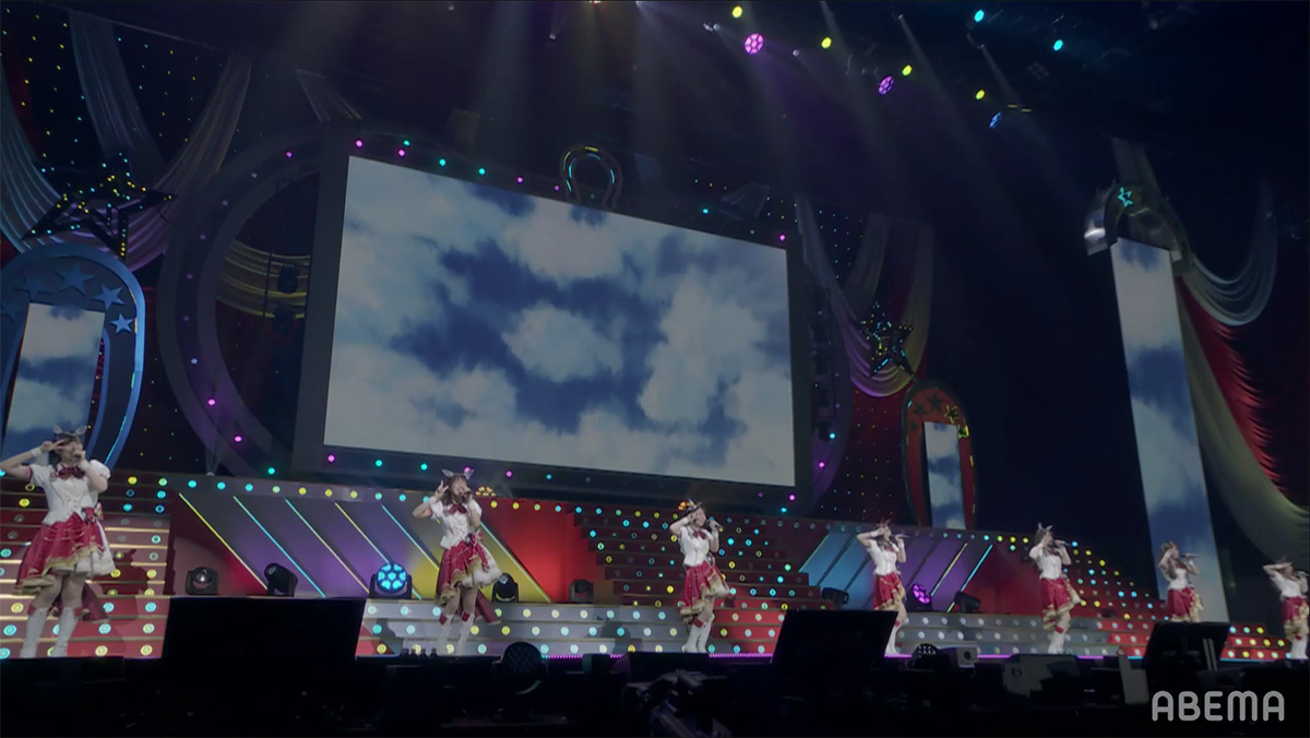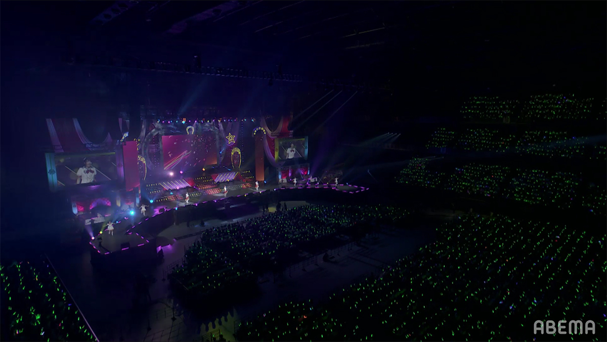企画スタート時の懐かしい曲を大会場で唄えたことの楽しさや、DAY1では踊るのに精一杯だった曲を今日はちゃんとやりきれたことへの嬉しさ、初めてのソロ曲や以前から唄いたかったナンバーを唄えた喜びなどが語られる中、いよいよライブもクライマックスへと突入する。