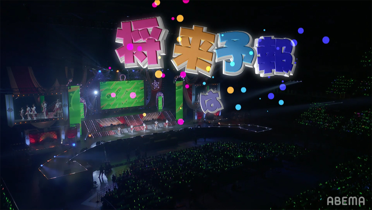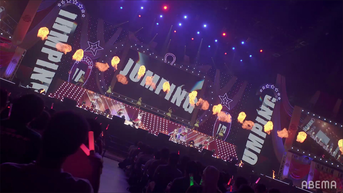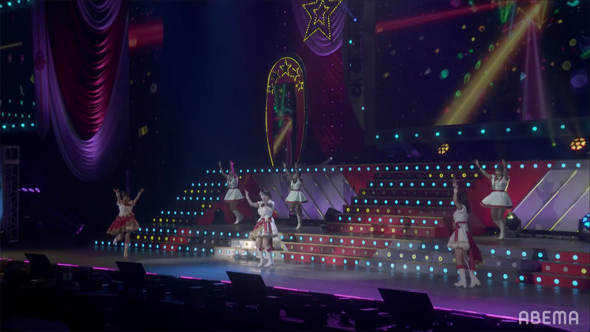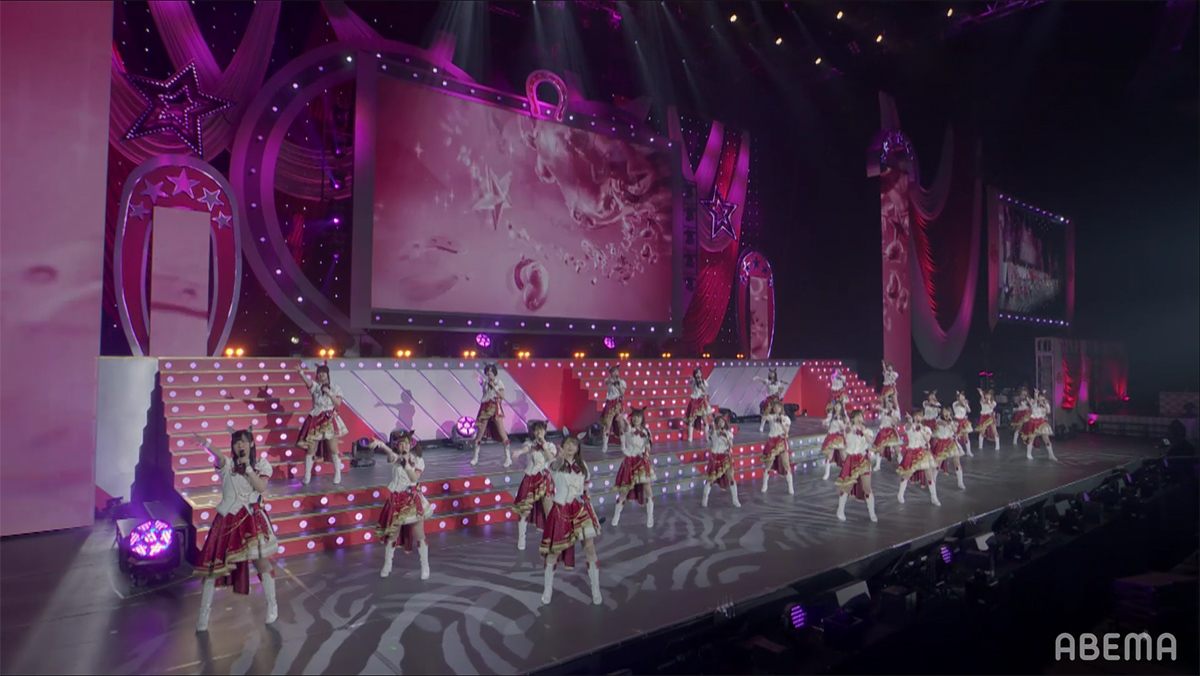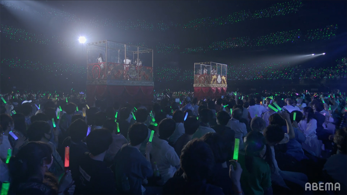 企画スタート時の懐かしい曲を大会場で唄えたことの楽しさや、DAY1では踊るのに精一杯だった曲を今日はちゃんとやりきれたことへの嬉しさ、初めてのソロ曲や以前から唄いたかったナンバーを唄えた喜びなどが語られる中、いよいよライブもクライマックスへと突入する。