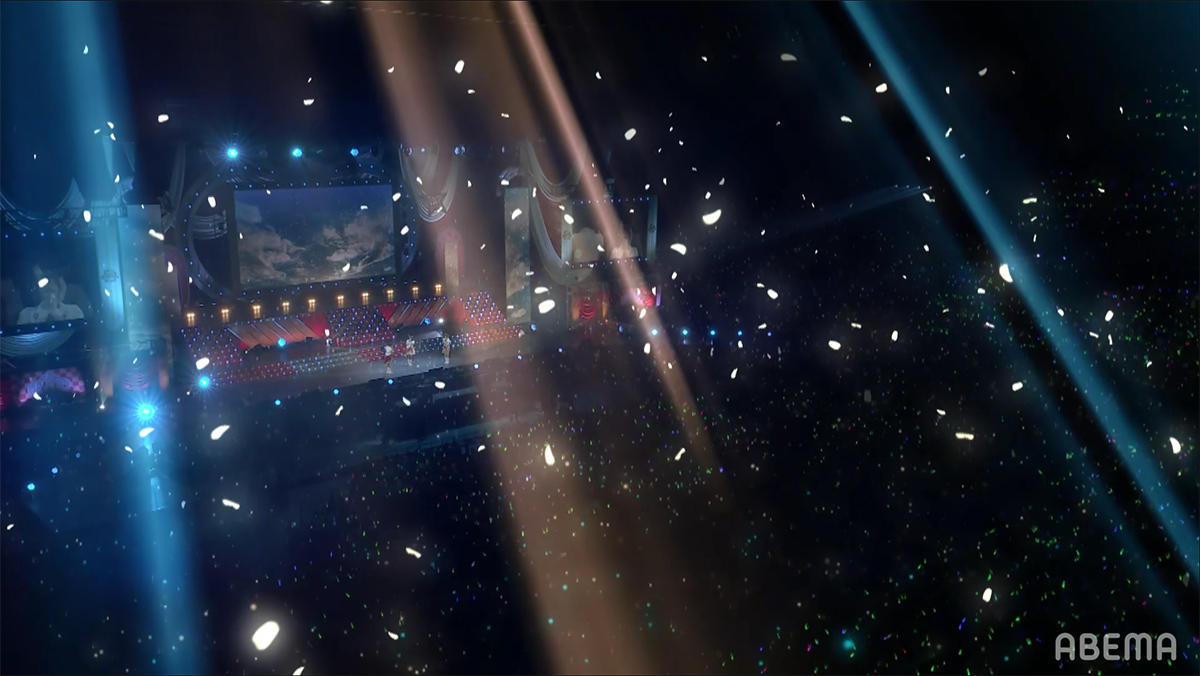 抱き続けた夢を叶えるべく歩み続けた日々を振り返りながら、大切な仲間との出会いの末に辿り着けた喜びを静かにしっとりと唄い上げていく。そしてラストではスポットライトが場内の天井に星空(スピカ)を描き出し、ファンも歌に聴き入りながらアニメの思い出に浸った。