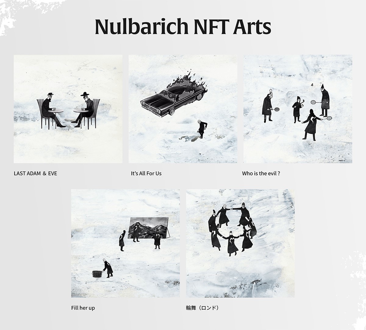 Nulbarich初の「Nulbarich NFT Arts」は、現在の彼らのライブに欠かせない一曲でもあり、アニメーションアーティストの山田遼志がディレクションした「It's ALL For Us」のリリックビデオに登場するバンドのアイコンでもあるキャラクター「ナルバリ君」を使用したデータをもとに制作された作品で、厳選された5種類のナルバリ君が登場。5作品ごとにそれぞれ10点、合計50点がシリアルナンバー付きで販売。また、5作品ごとに設定された寓話も楽しむことができる。