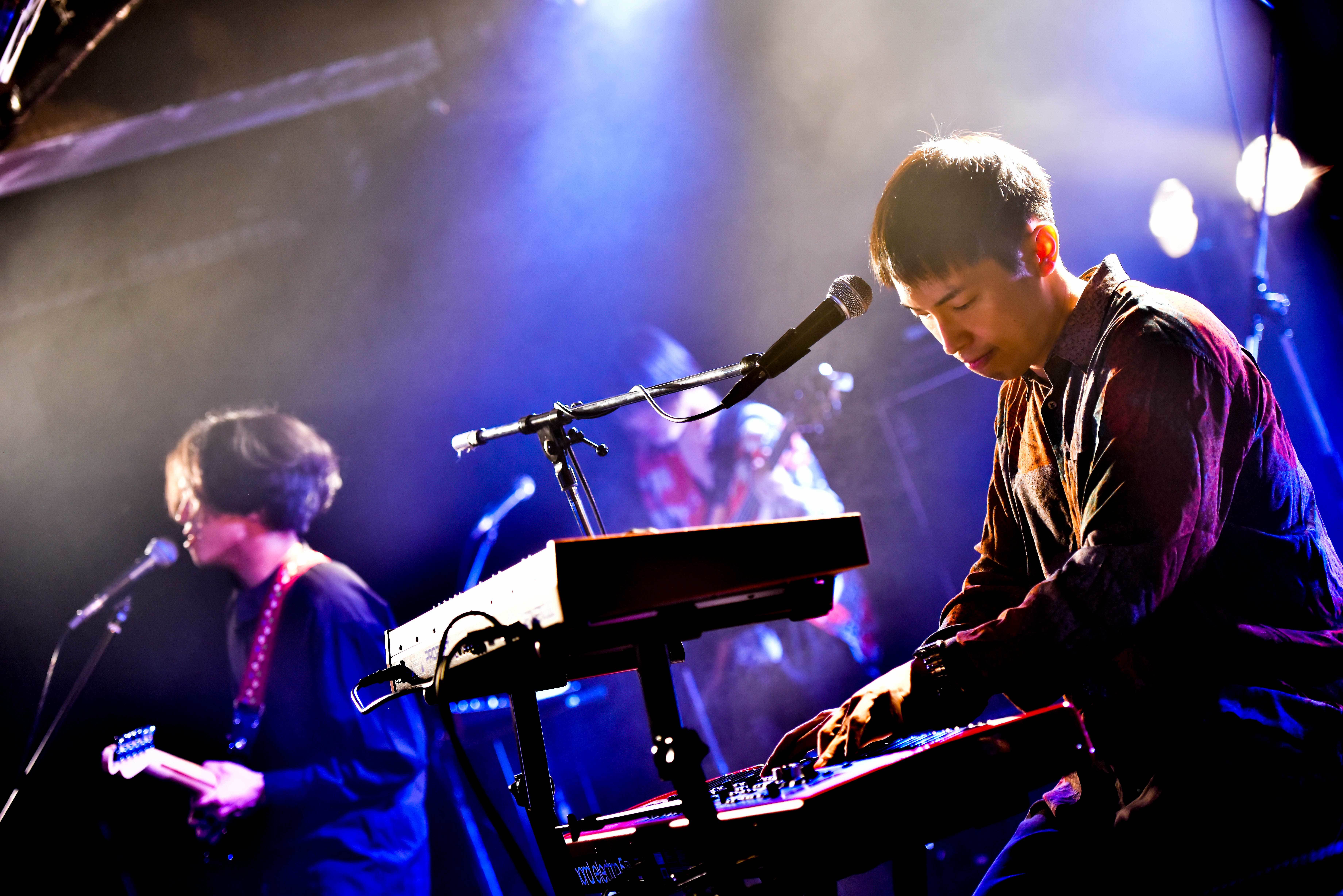 続く「またたき」では、菊池のスリリングな鍵盤さばきにほれぼれしつつ、甫木元の咆哮は神々しさすら感じさせる。さらにハートウォーミングな「Winter」ではアーシーな甫木元の声質と力強い音塊が重なり、何倍何十倍にも曲の力を増幅させていく。まるで1曲で1本の映画の始まりからエンドロールまで観ているような雄弁さに息をのむばかりだ。ひときわフロアが沸いた「I Don't Have A Pen」では、転がるような鍵盤の調べに独白のごとく言葉をつなげていく甫木元。脇を固める小山田和正(Dr)も硬質なリズムを打ち鳴らし、観客を鼓舞していく。