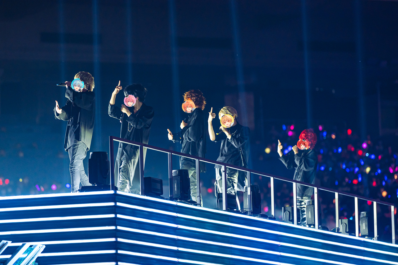 アカペラに始まり、メインステージから伸びる花道を通って回転するセンターステージで歌った「マブシガリヤ」。上昇するセンターステージで、ていねいに歌をつなぎ、5人でぎゅっと肩を組んだりもした「ナミダメ」。彩りの異なる歌声とそのハーモニーが、ただただ美しい。