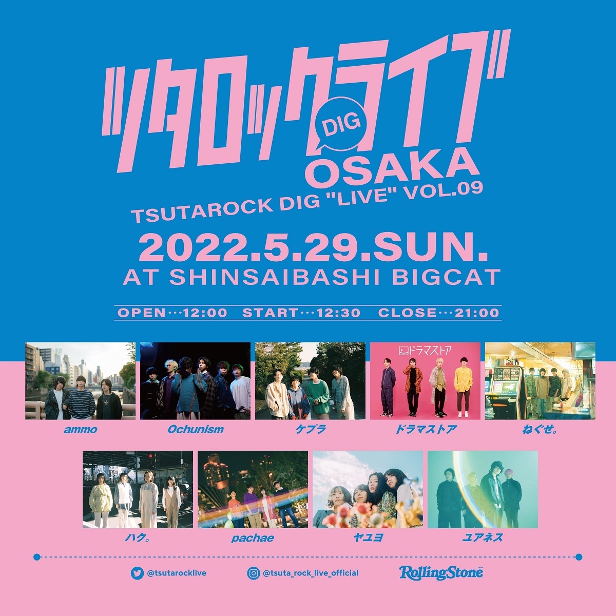 『ツタロック DIG』は、“今、チェックしておきたい次世代のシーンの主役を集結させる”イベント。2022年は初の大阪開催となり、ammo、Ochunism、ケプラ、ドラマストア、ねぐせ。、ハク。、pachae、ヤユヨ、ユアネスが出演する。