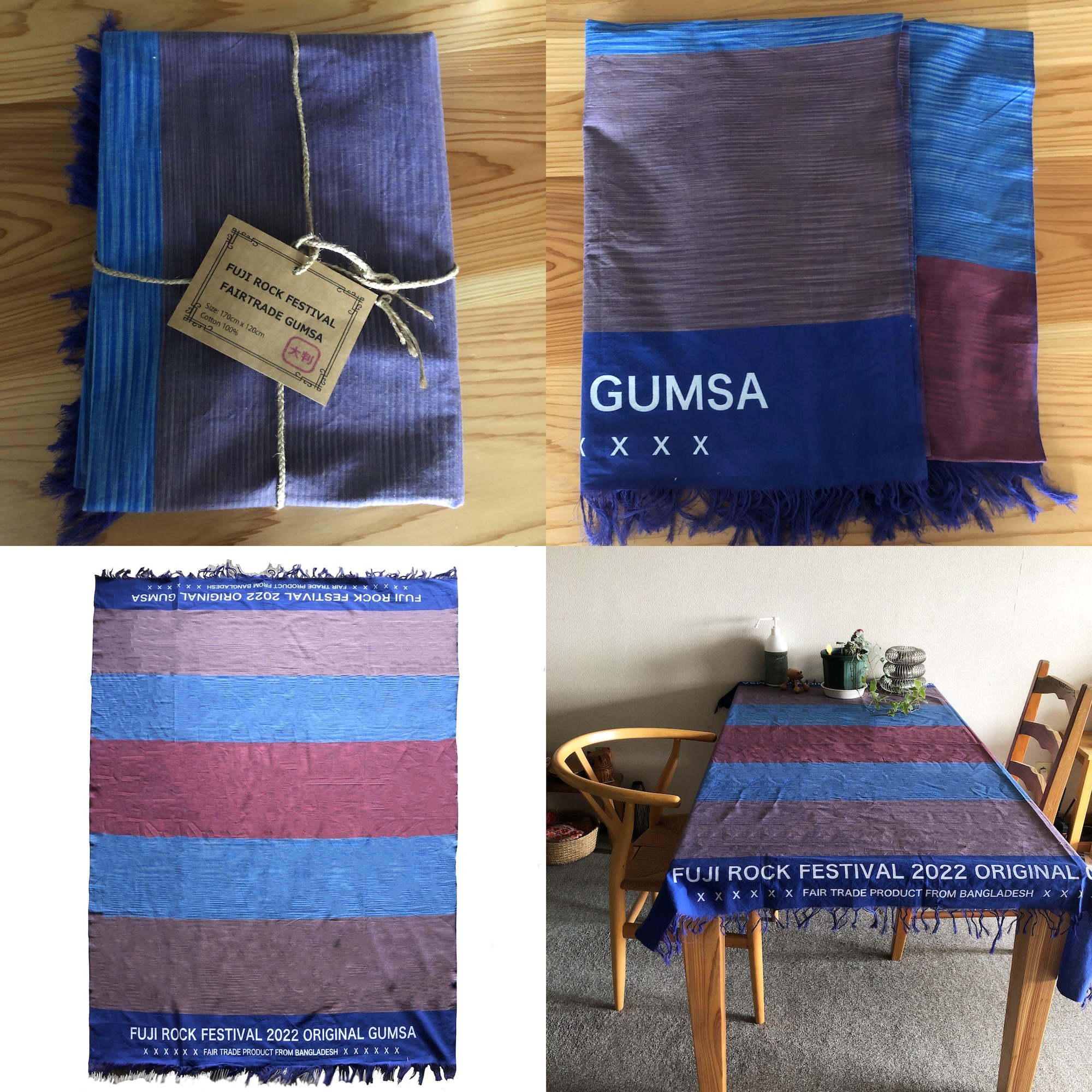 ガムサとしての使用はもちろんですが、サイズが約120cmx 170cmと大判なのでテーブルクロスにもぴったり。見本写真にあるようにウッディなテーブルに合わせると美しい濃紺がグッと引き立ち、オシャレ度を一瞬で高めてくれます。アウトドアでもインドアでも、手軽に雰囲気を上質に変えられる便利アイテムです。