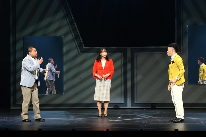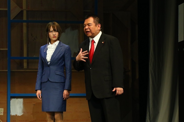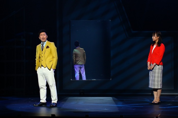 セリフを“歌”で語るミュージカルならではのパフォーマンスに、出演者たちは大奮闘。末成映薫、島田珠代らがキレのあるダンスで見せるナンバー『ネタ合わせ』や、川畑と妻役の加藤夕夏がかわいい掛け合いで聴かせるプロポーズソング、“笑顔”を禁じられた渋谷凪咲らが反抗心をあらわにする迫力のシーンなど、次から次へと見どころが続く。