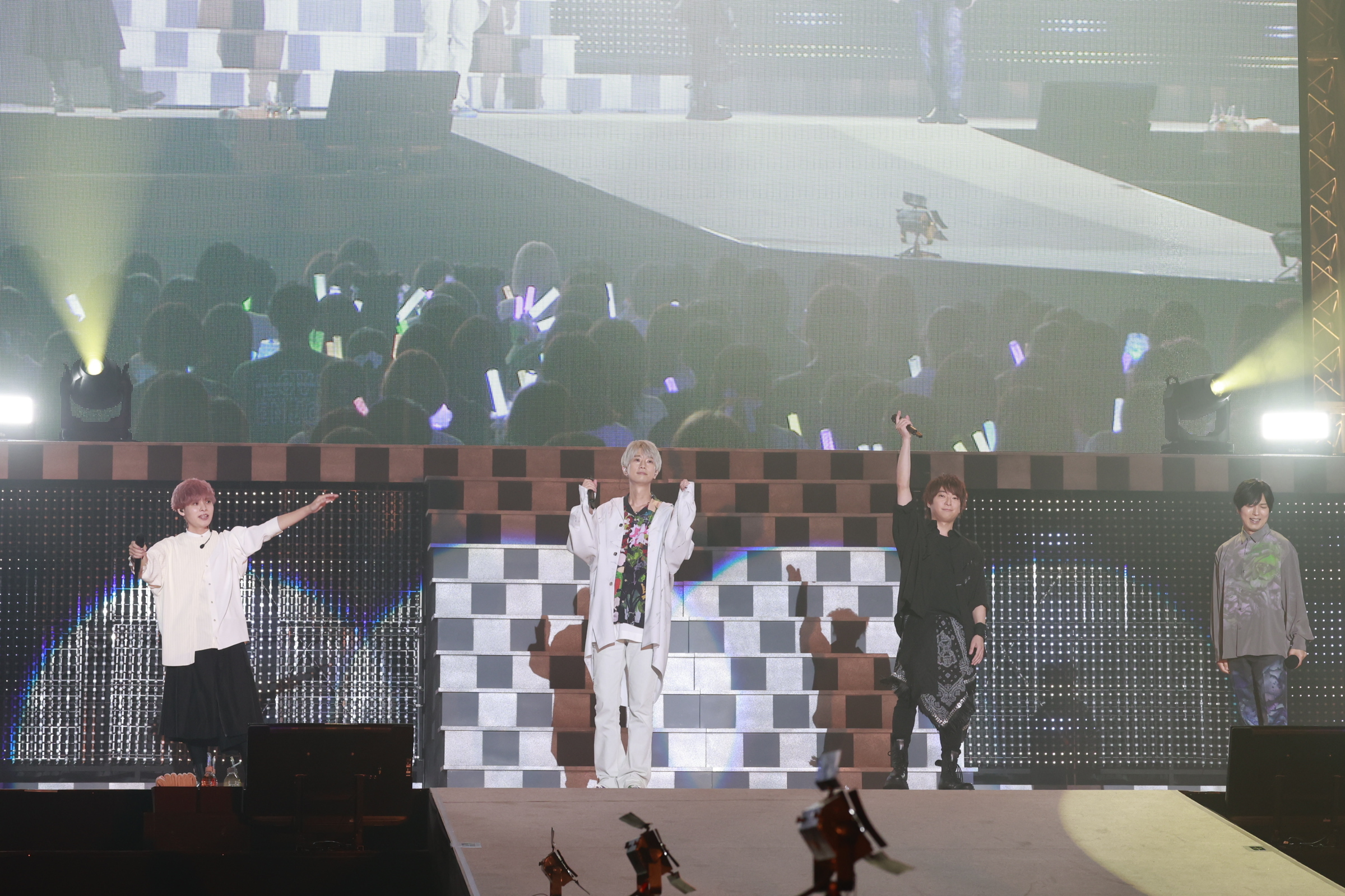 バラエティーコーナーを挟み、ライブ後半戦は神谷浩史からスタート。新曲「Drive」など5曲を披露し、2ndフルアルバムを制作中であることを発表した。続いて登場した江口拓也は、リリースしたばかりの2ndミニアルバムから「SŌIUMONDA」「AGARISM」など5曲を披露している。