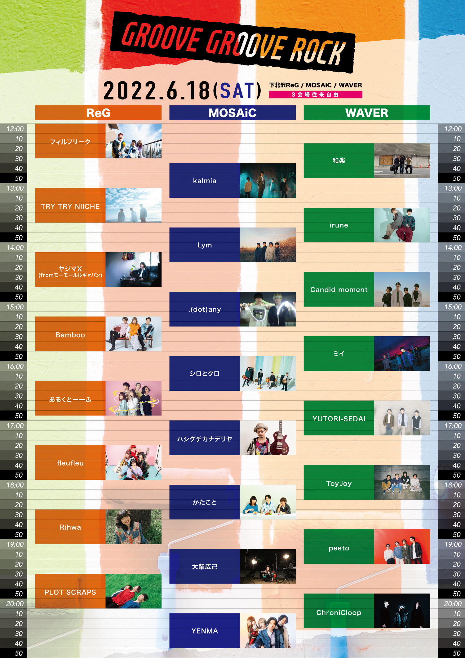 6月18日(土)に下北沢ReG / MOSAiC / WAVERの3会場を使用した歌ものロックサーキットイベント『GROOVE GROOVE ROCK』の第3弾にして最終出演アーティストが発表された。