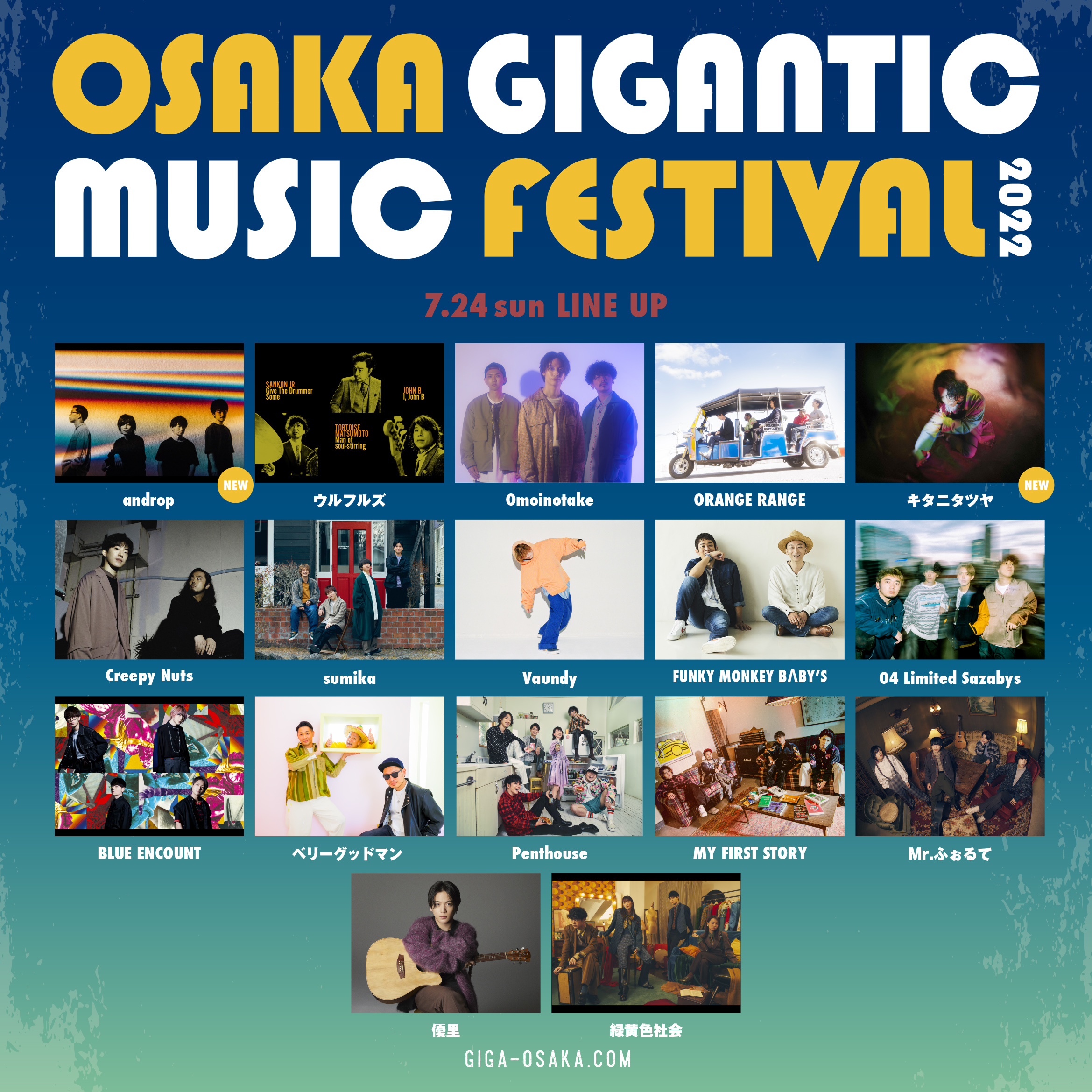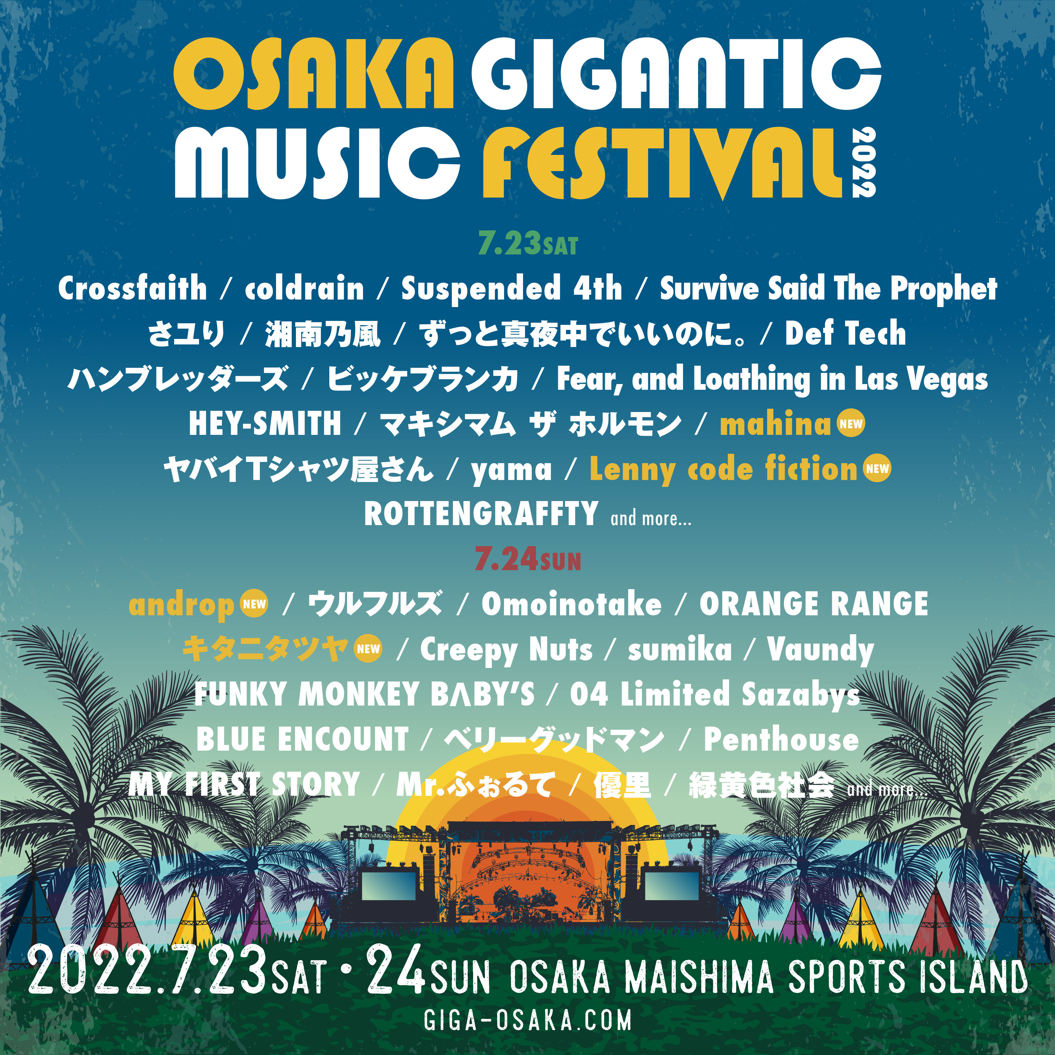 夏フェス「ジャイガ」こと『OSAKA GIGANTIC MUSIC FESTIVAL 2022』の第6弾出演アーティストが発表された。