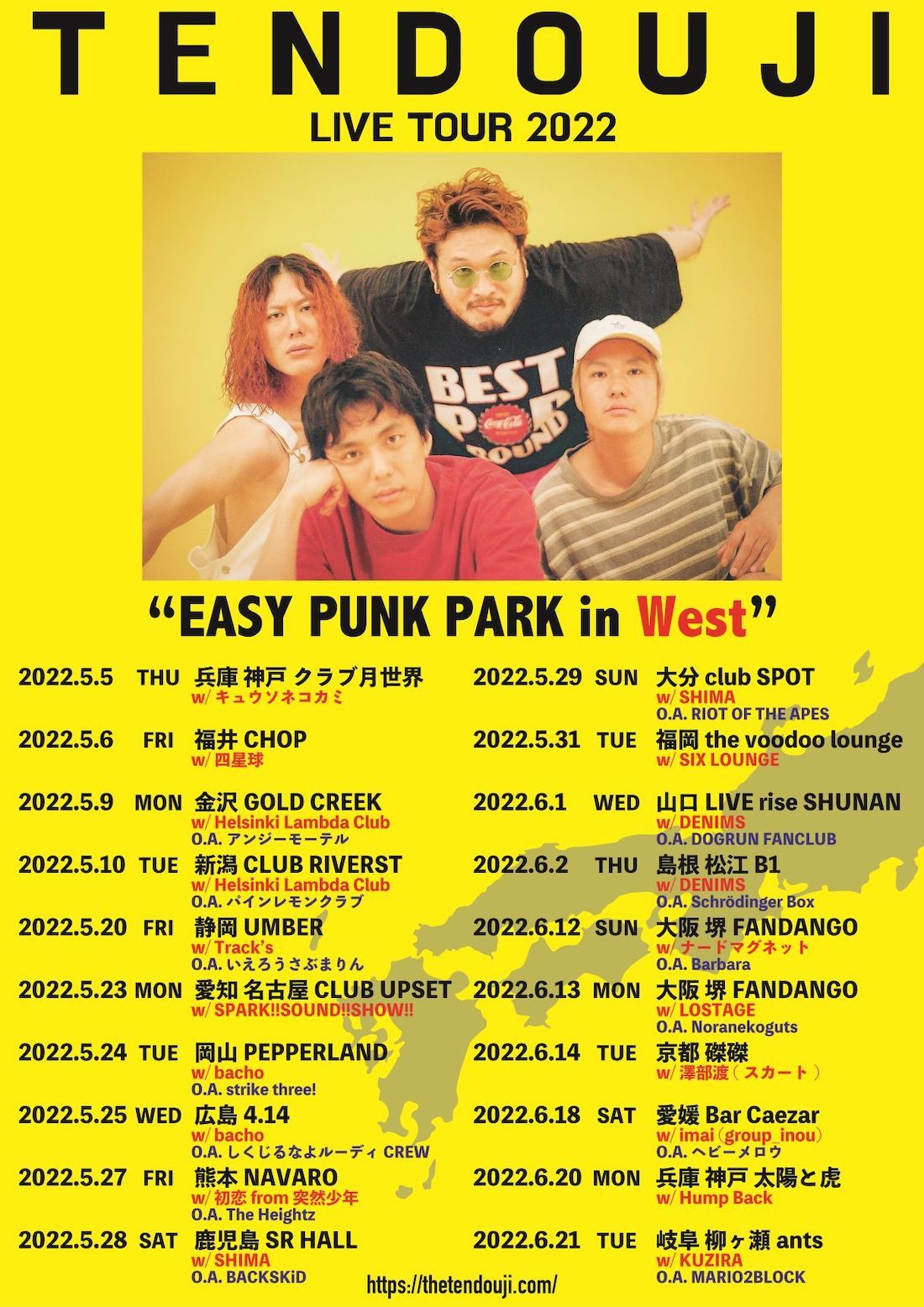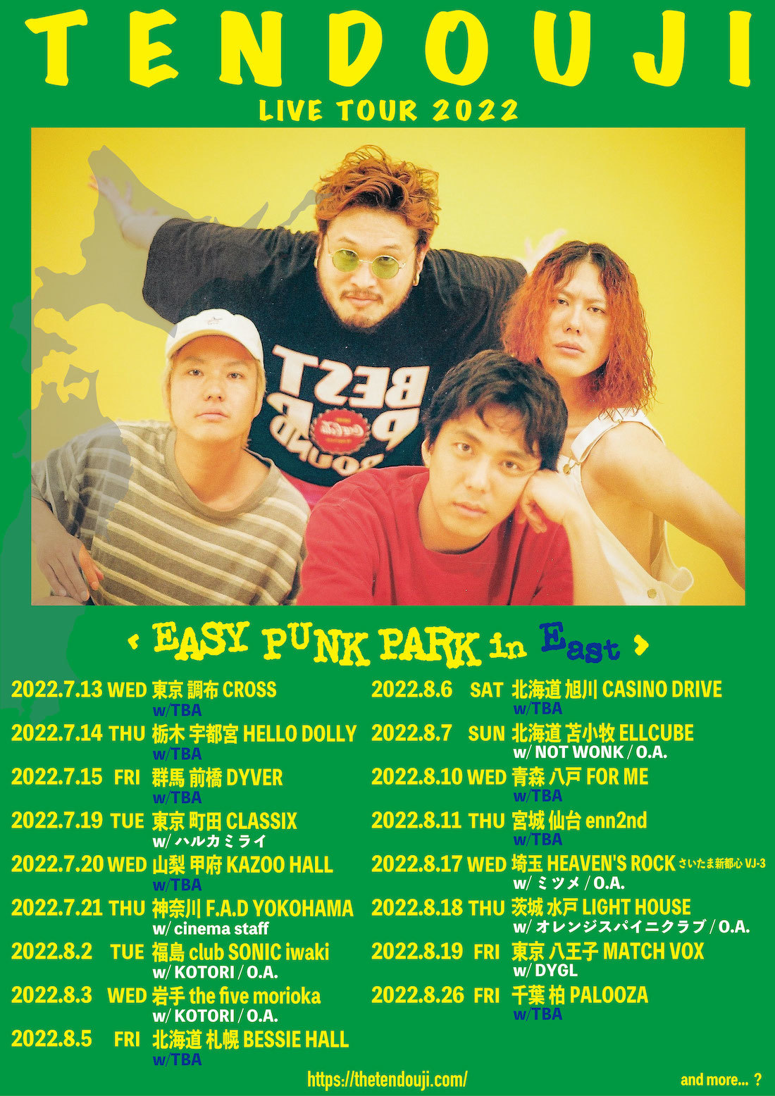 『EASY PUNK PARK in West』と題した西日本を中心にまわる対バンツアーを開催中のTENDOUJIが、東日本編『EASY PUNK PARK in East』の追加出演者を発表した。
