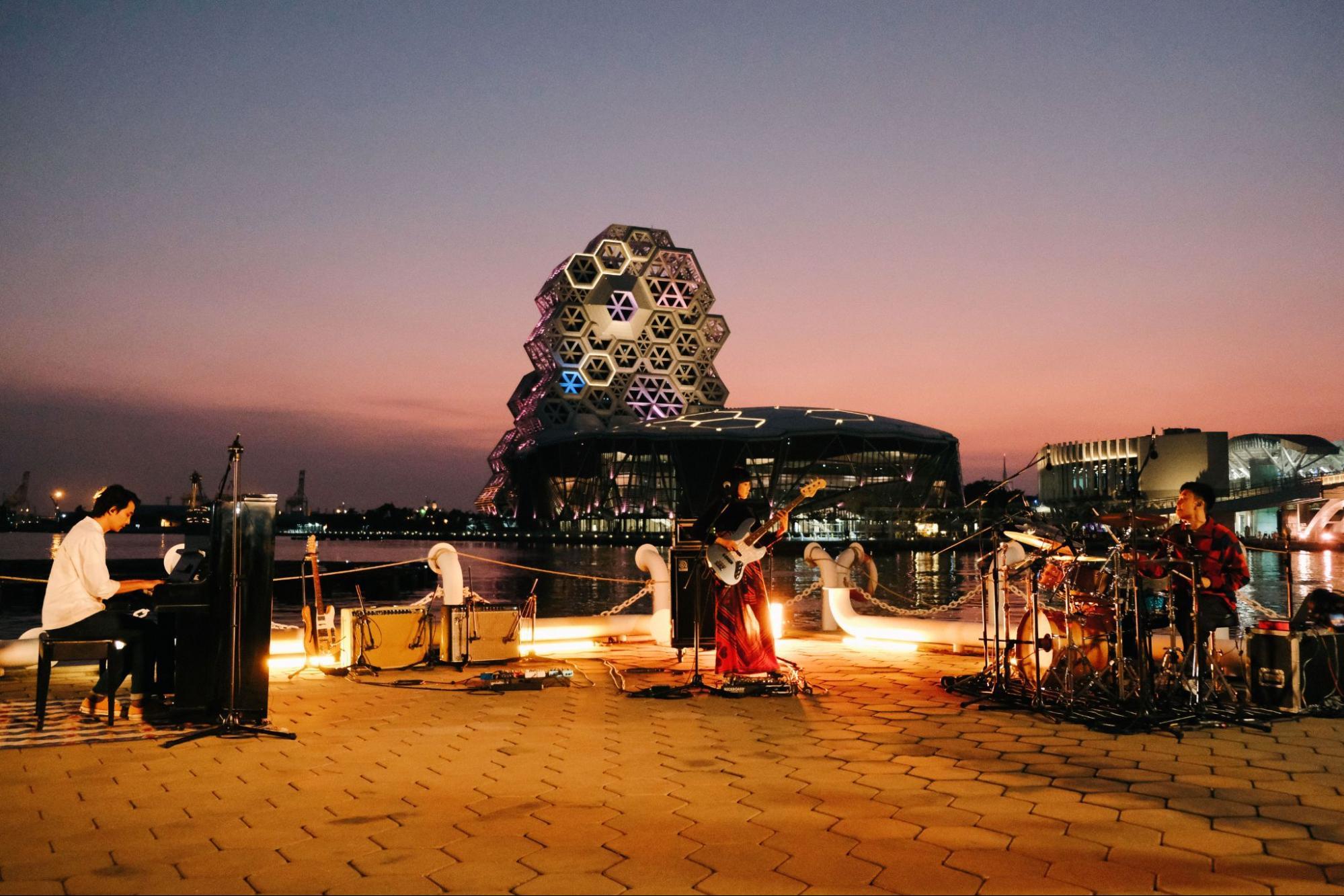 ライブ会場に注目が集まる今年の『Taiwan Beats Showcase』はドローンを使い観客の視点を現代に移し、後半に突入。「nambra」と「Minyo Pop」の2曲を披露したサイケデリックユニット・夢東(Mong Tong)は、これまでその存在が非公開となっていた「Pawnshop」というアンダーグラウンド・エレクトロニックシーンを牽引していく会場でパフォーマンスした初めてのアーティストとなった。