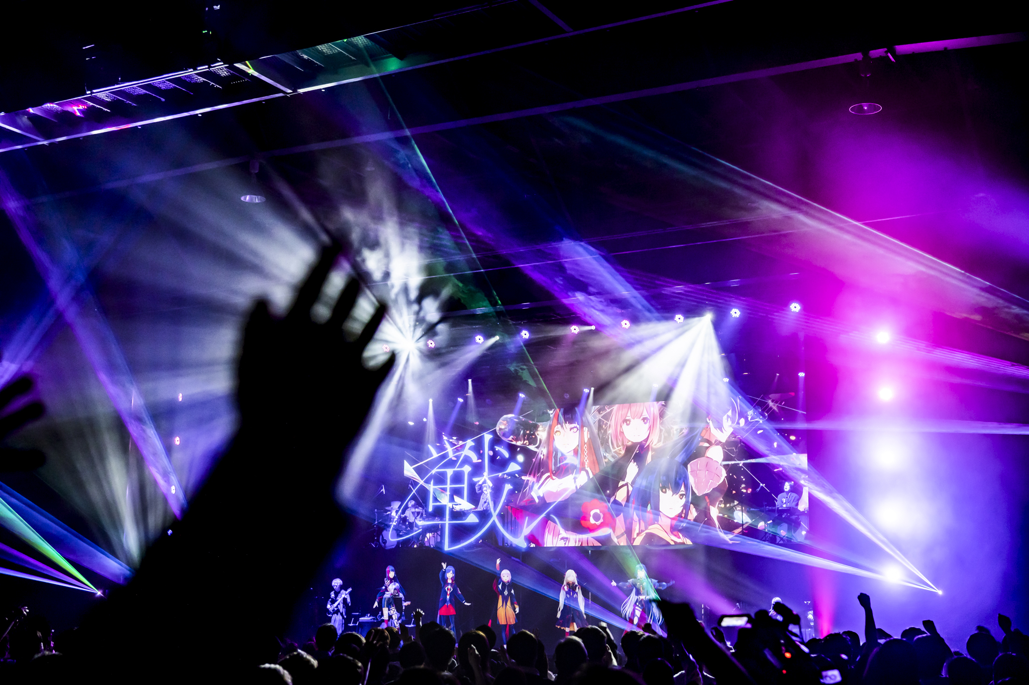 アニメ映像使ったイメージビデオが流れ、ライブは第2部として再び幕が開く。第2部のスタートもライブ冒頭と同じく2人コンビとなって歌っていくターン、理芽が自身のアルバム『NEW ROMANCER』収録されていた「魔的」を原曲通り花譜とともに披露していただけでなく、花譜と春猿火による「残火」、幸祜と理芽による「素的」の2曲が新曲として披露された。