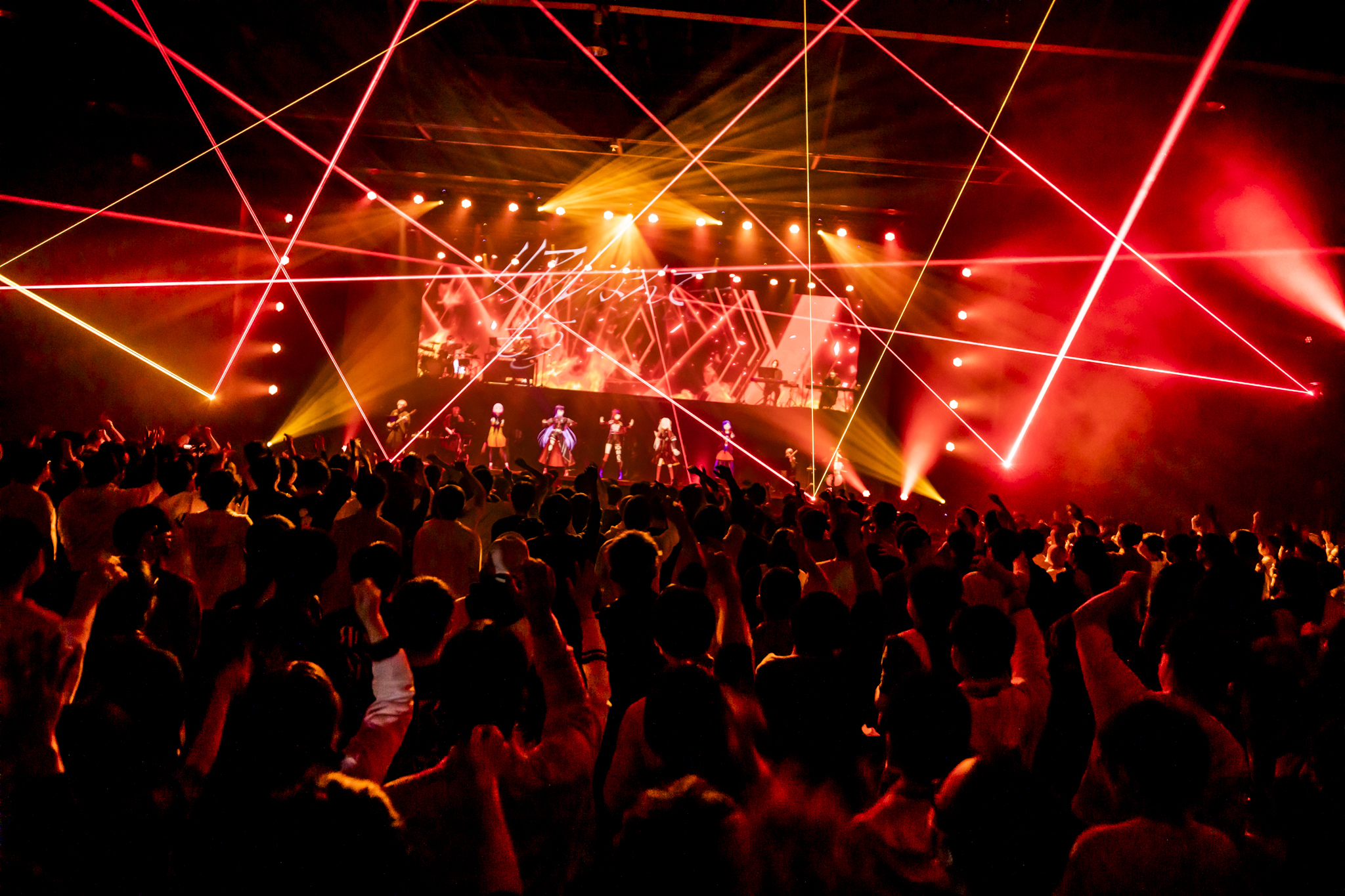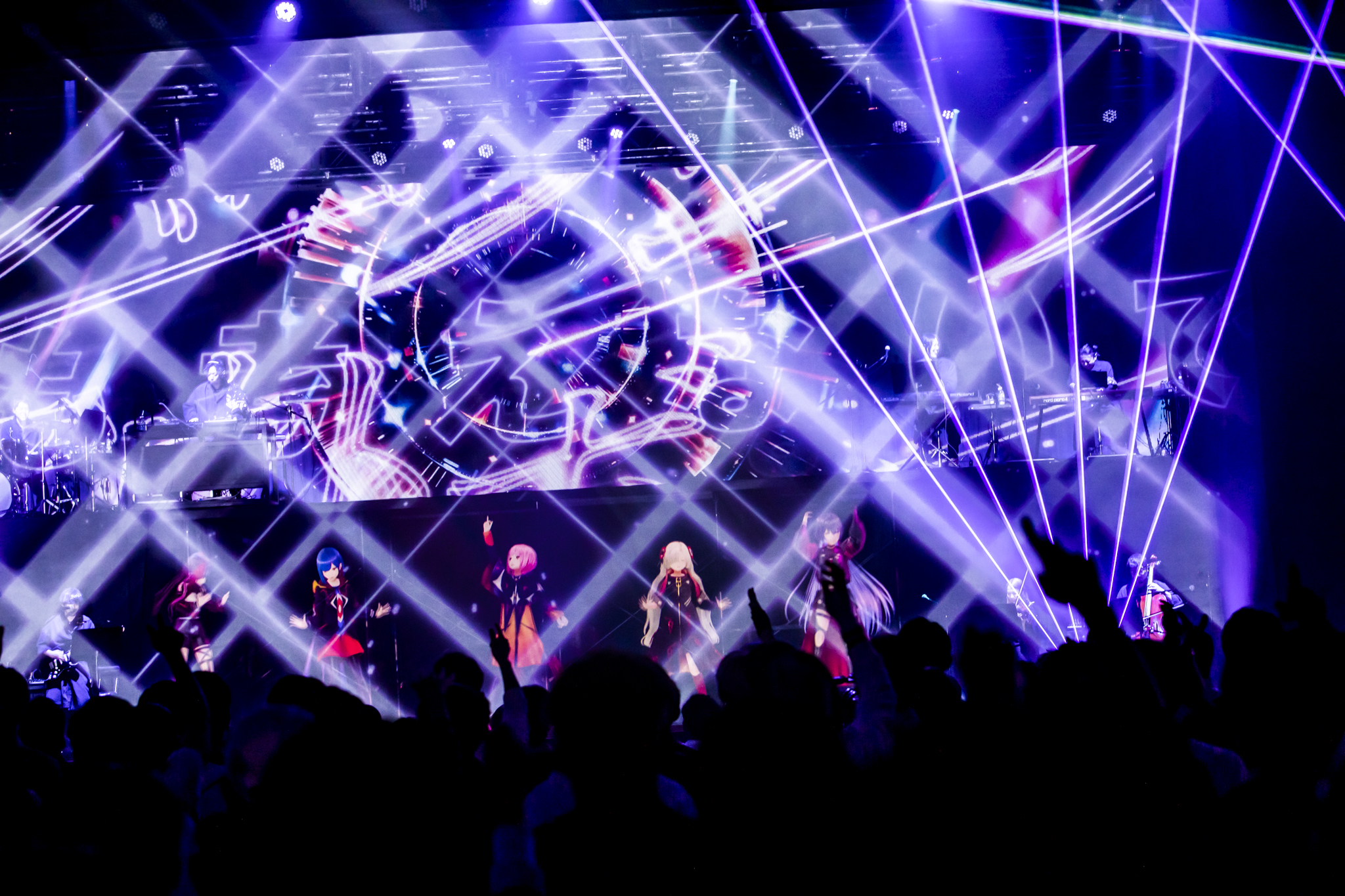 配信サイトから今回のライブを見ると、AR技術をふんだんに活かし、ステージ上のバンドメンバーらと同じステージに立つ5人が見れた。他のVTuberライブとは別種の質感で象られた美麗なルックスをしっかりと表現していたのはいうまでもなく、脇をフッと目配せする動き、大小さまざまに動く口元や髪の毛、一人一人の表情の違い、ちょっとしたジャンプなども捉えていた。