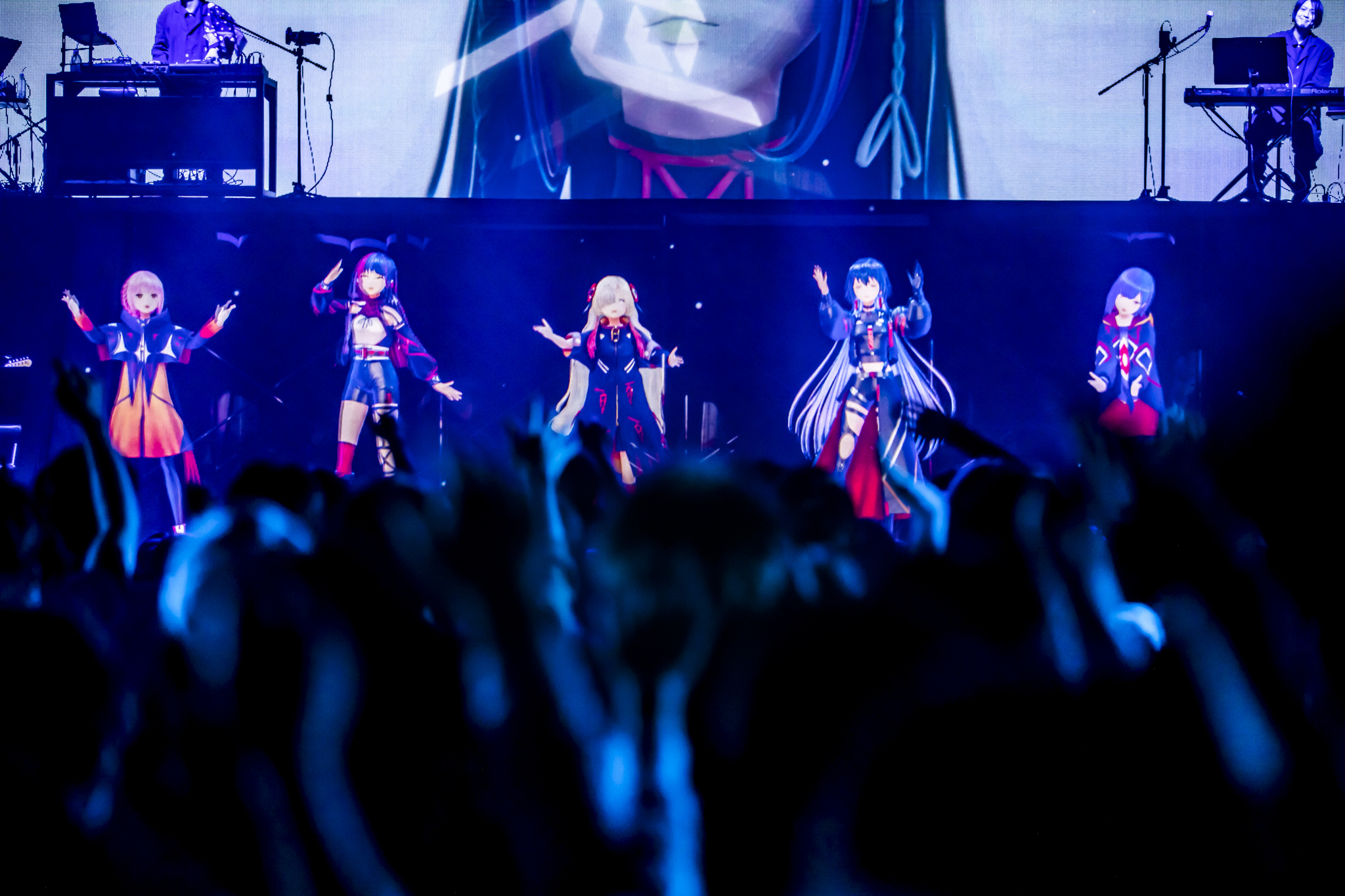 KAMITSUBAKI STUDIOに所属する花譜、理芽、春猿火、ヰ世界情緒、幸祜それぞれ5名がソロシンガー・「電脳の魔女」として活動しているなか、バーチャルシンガーグループV.W.Pとして初めて集結する一大集会となった。