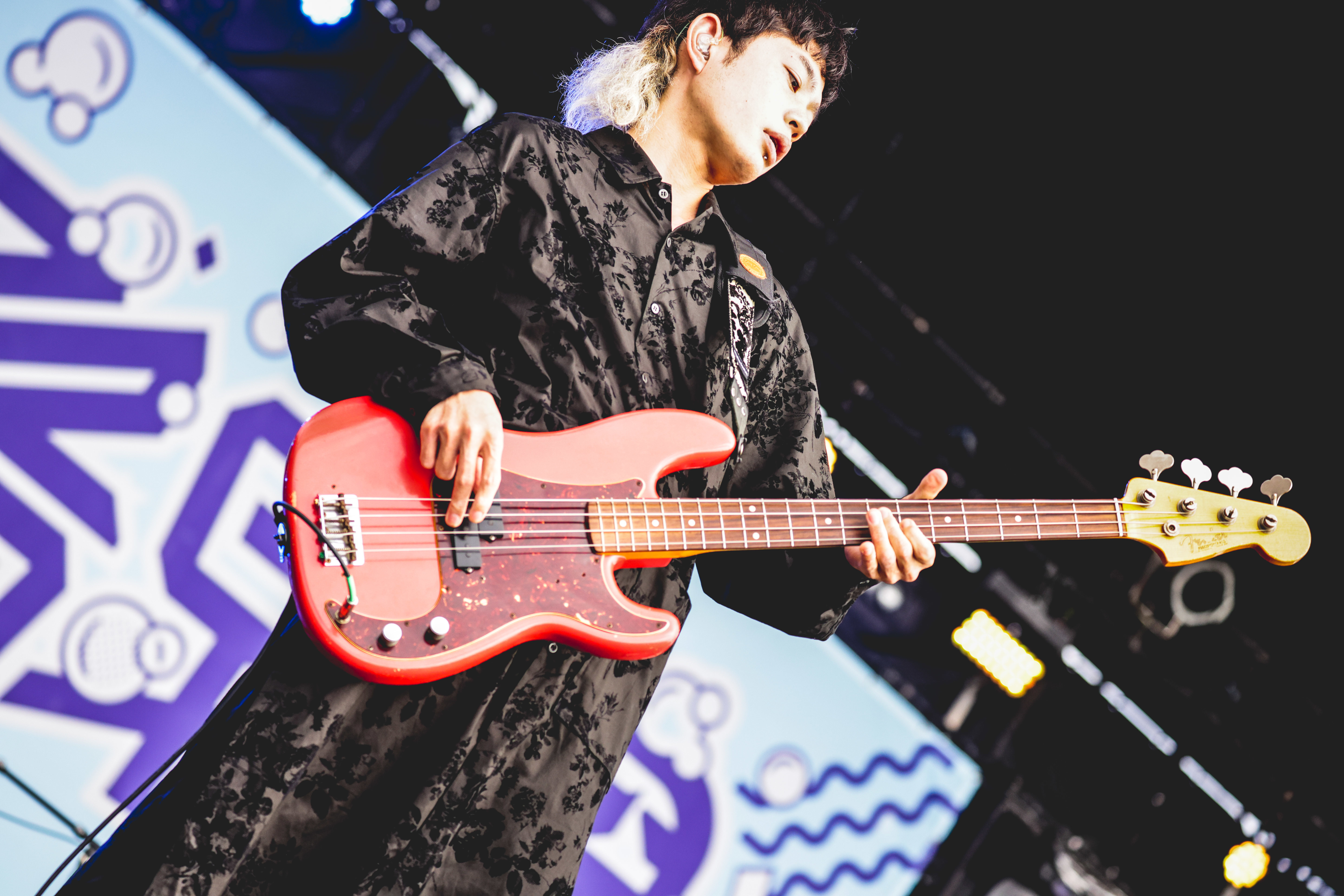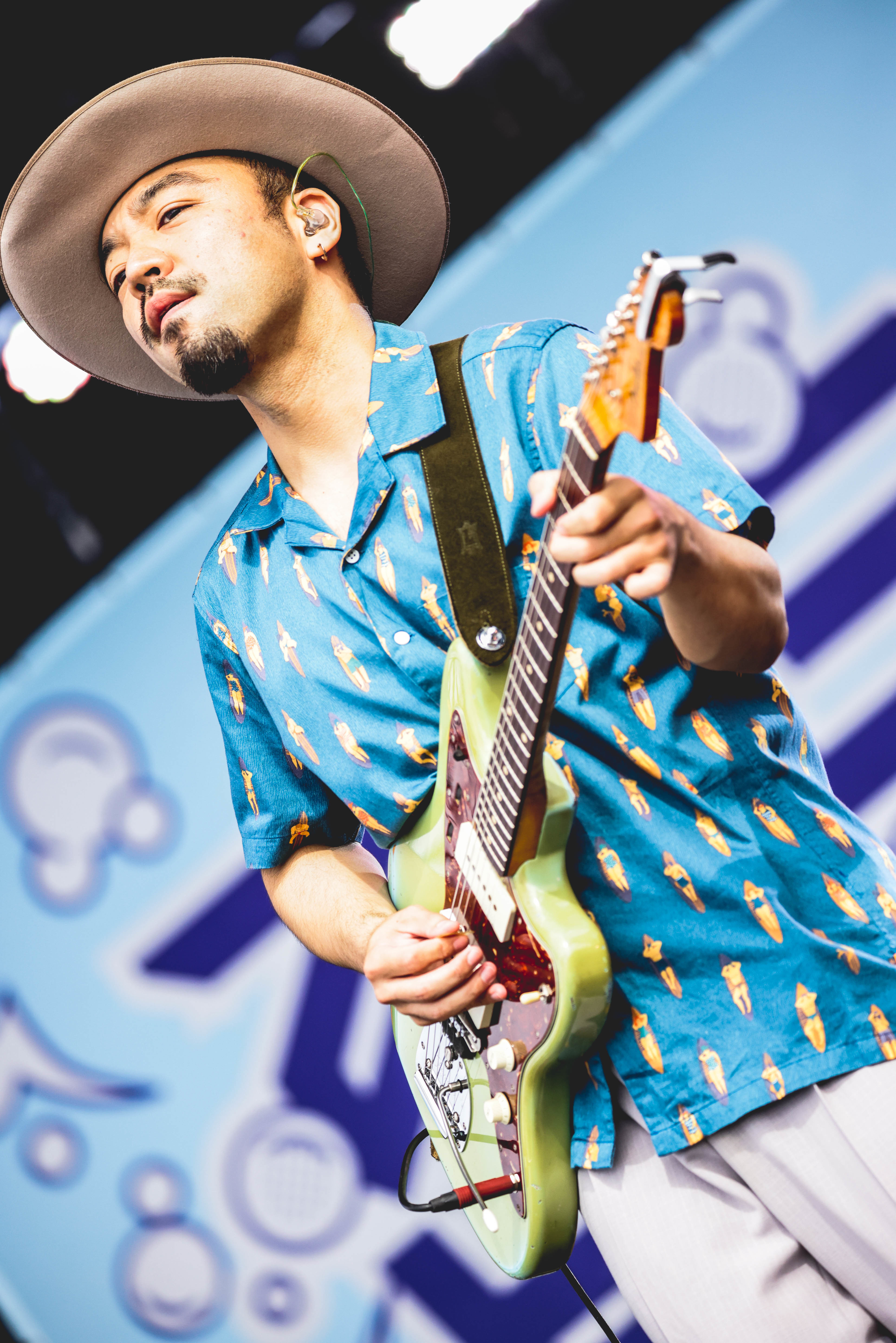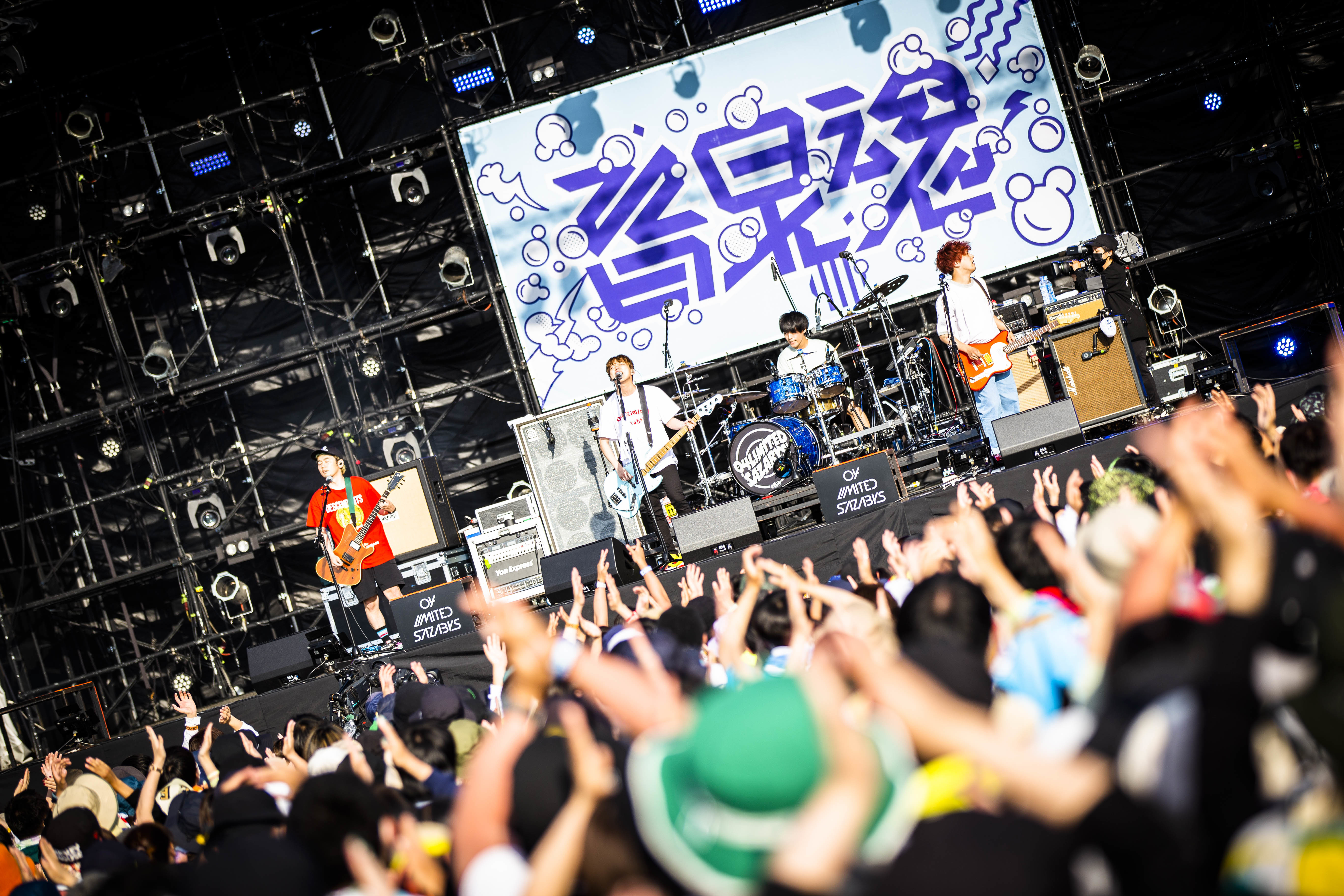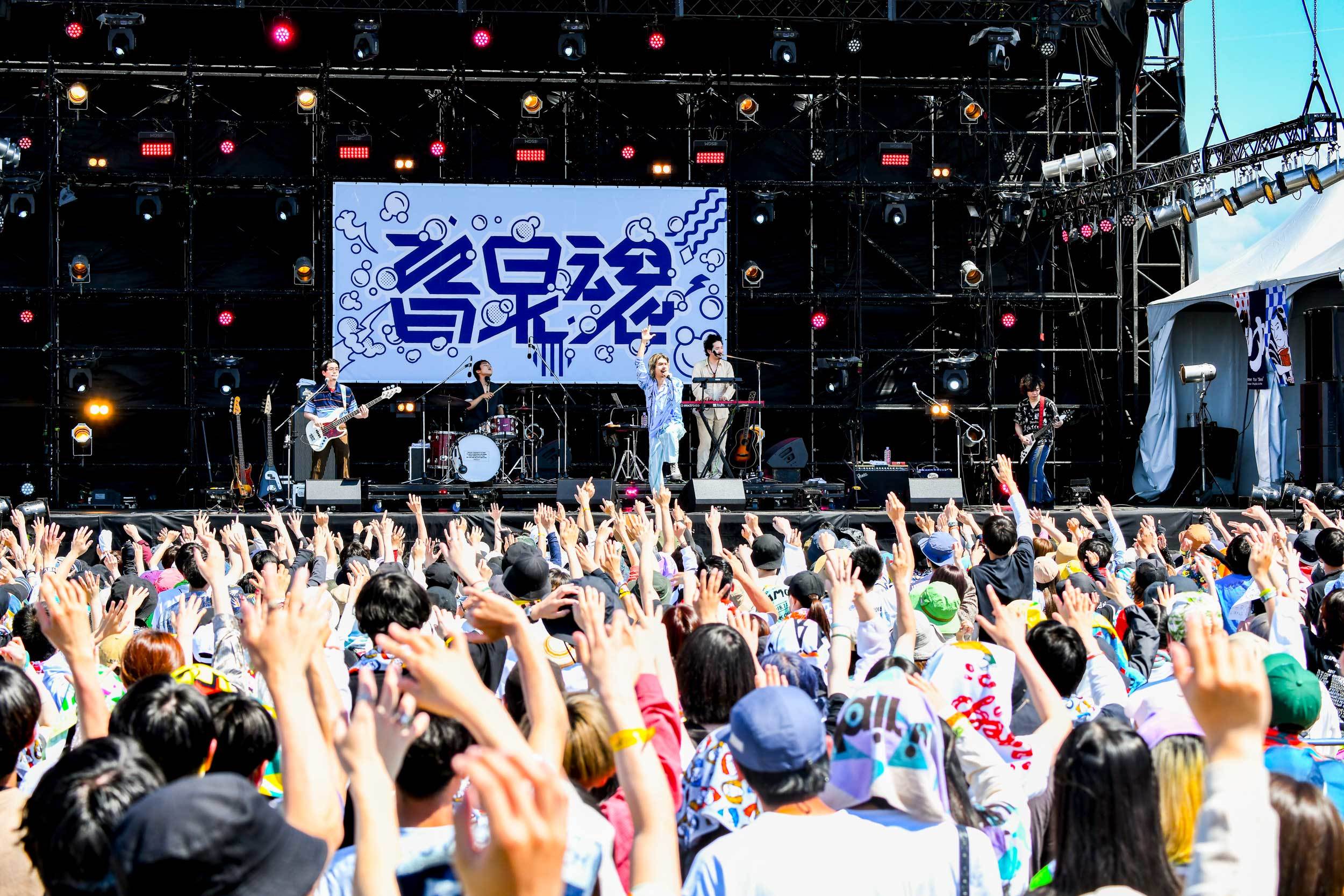 とも口にした大澤会長は、ちょっと前に作ったが音源リリースはしていない新曲「地味な生活」を、「このフェスに合わせたと思わせる歌詞がある、そう思ってもらってけっこうです!」と前置きしてから、プレイした。コロナ禍で地味な生活を強いられていてもうイヤだ、温泉行きたい旅行に行きたい、という歌詞を変え、<OTODAMA行きたい OTODAMA行きたい OTODAMA行きたい まあ来たけどね>と連呼する、この日のためだけの特別バージョン。無論、大ウケ。