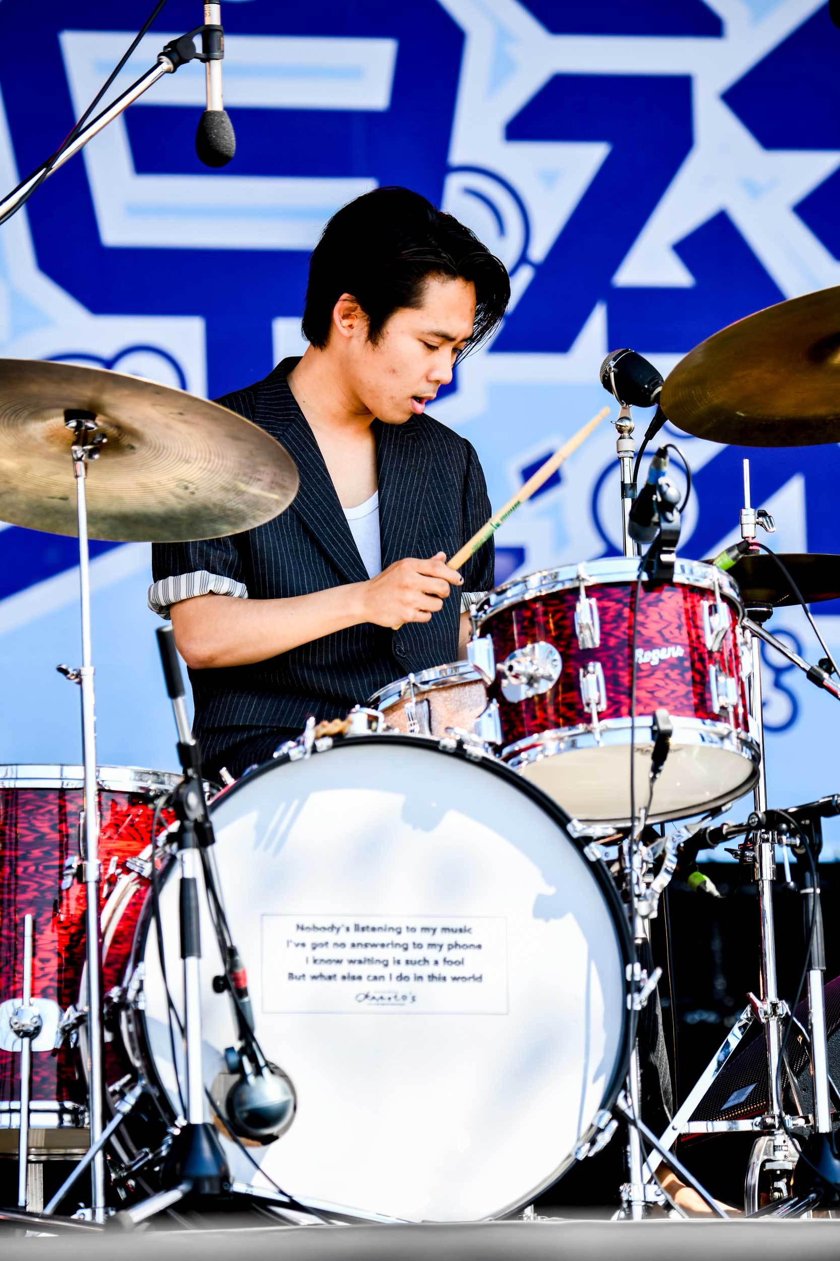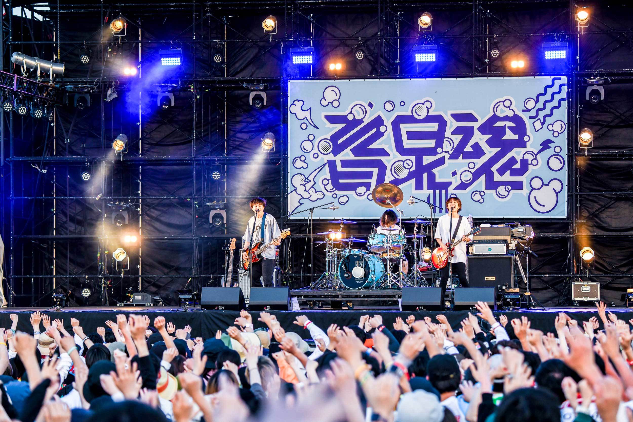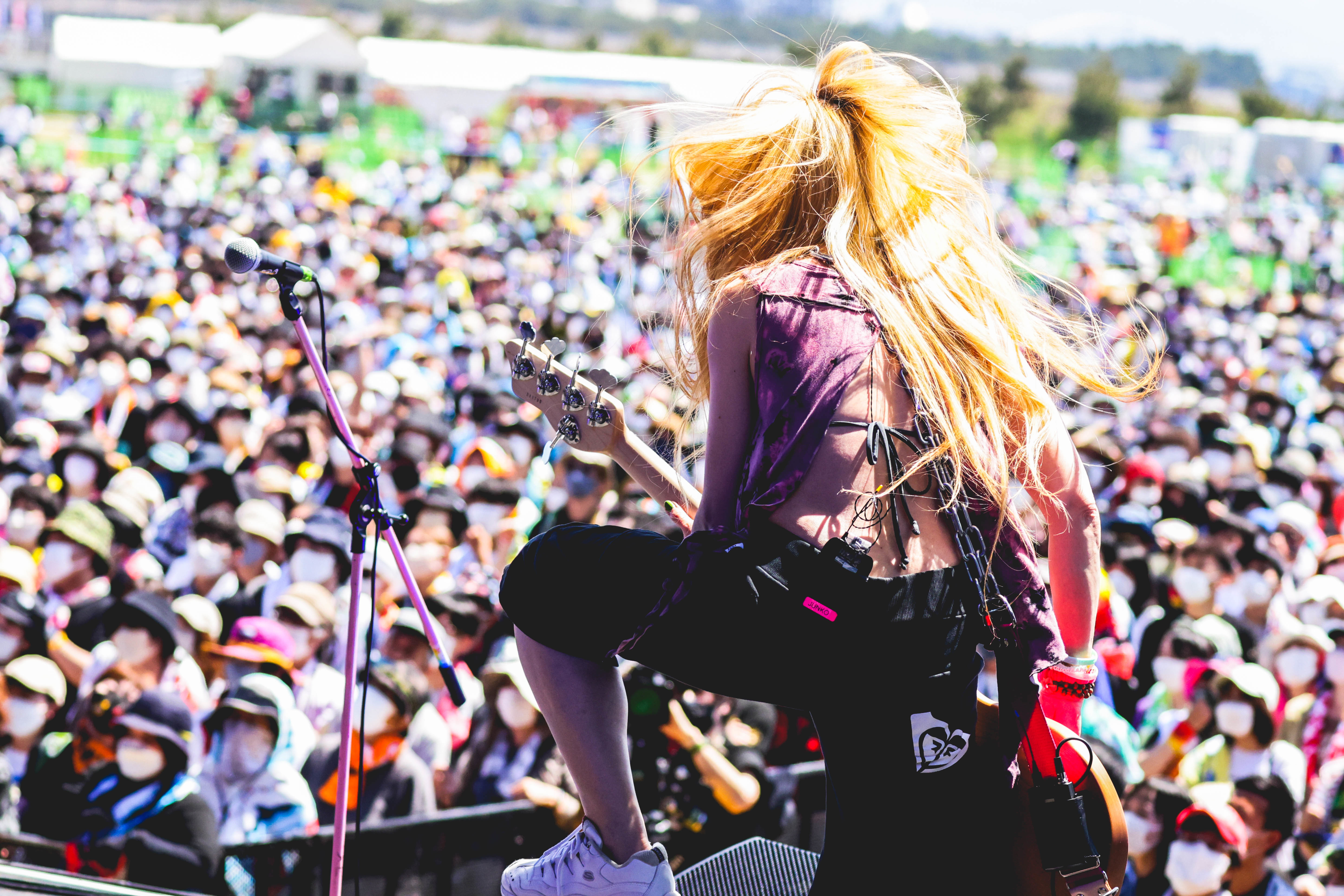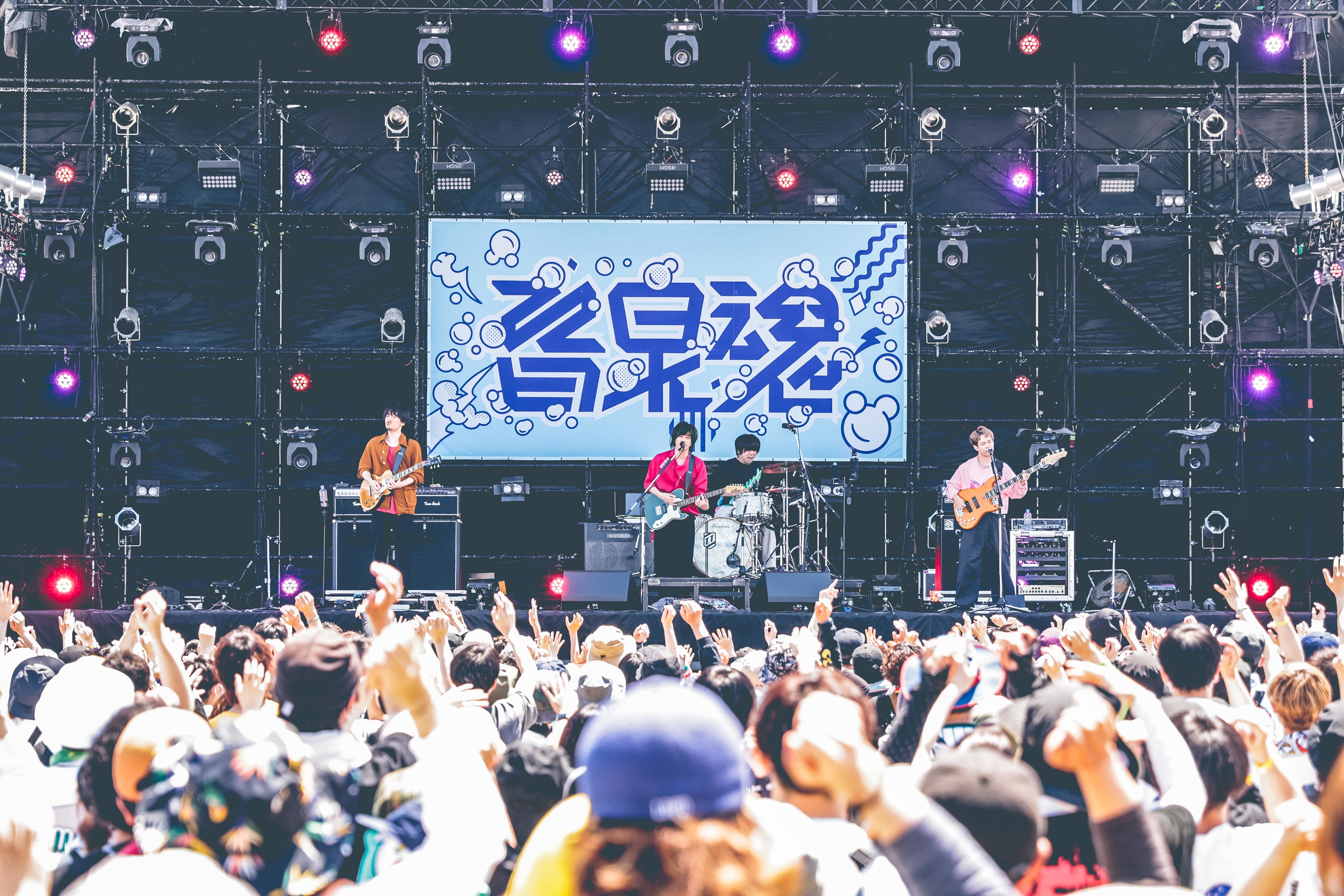 とも口にした大澤会長は、ちょっと前に作ったが音源リリースはしていない新曲「地味な生活」を、「このフェスに合わせたと思わせる歌詞がある、そう思ってもらってけっこうです!」と前置きしてから、プレイした。コロナ禍で地味な生活を強いられていてもうイヤだ、温泉行きたい旅行に行きたい、という歌詞を変え、<OTODAMA行きたい OTODAMA行きたい OTODAMA行きたい まあ来たけどね>と連呼する、この日のためだけの特別バージョン。無論、大ウケ。