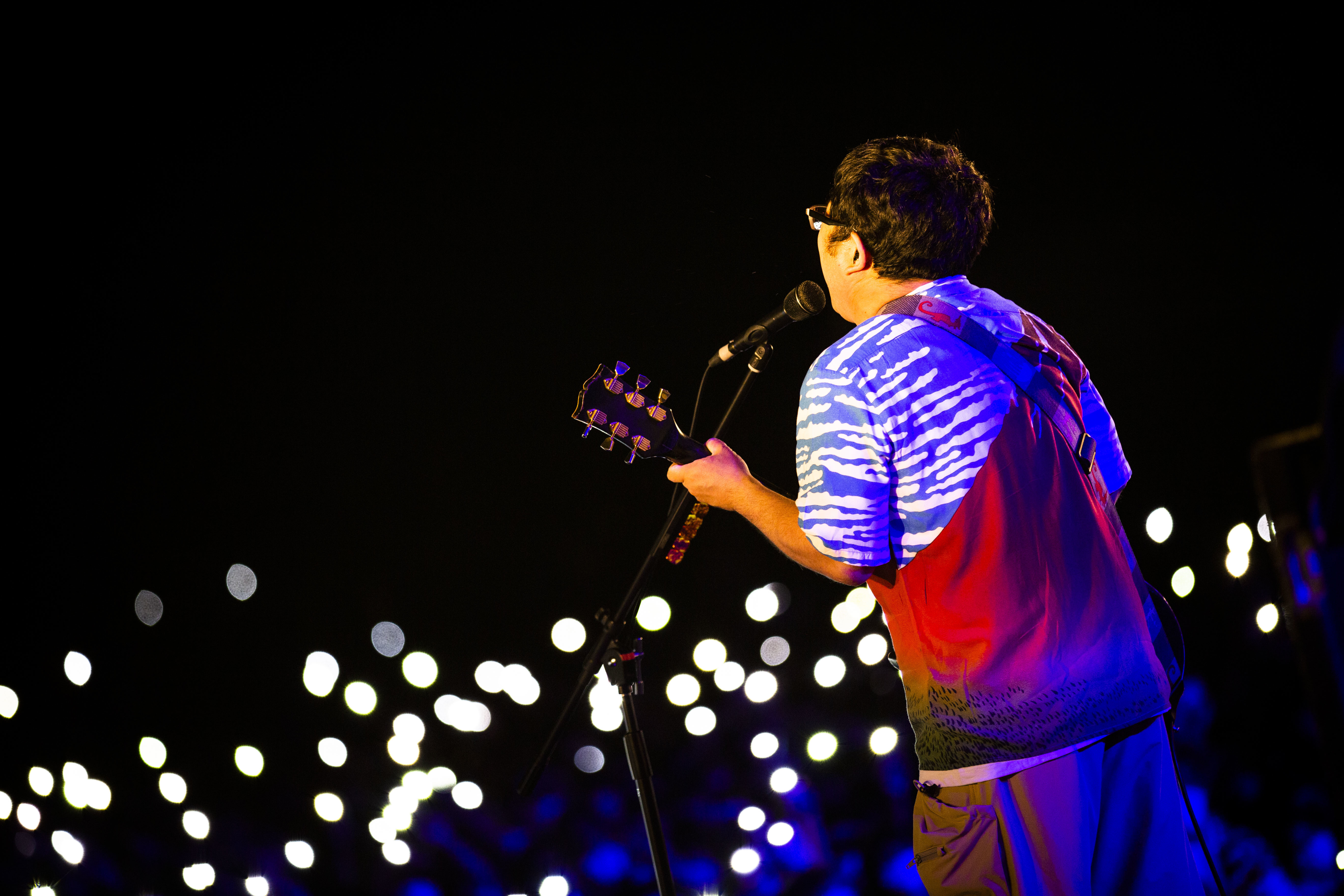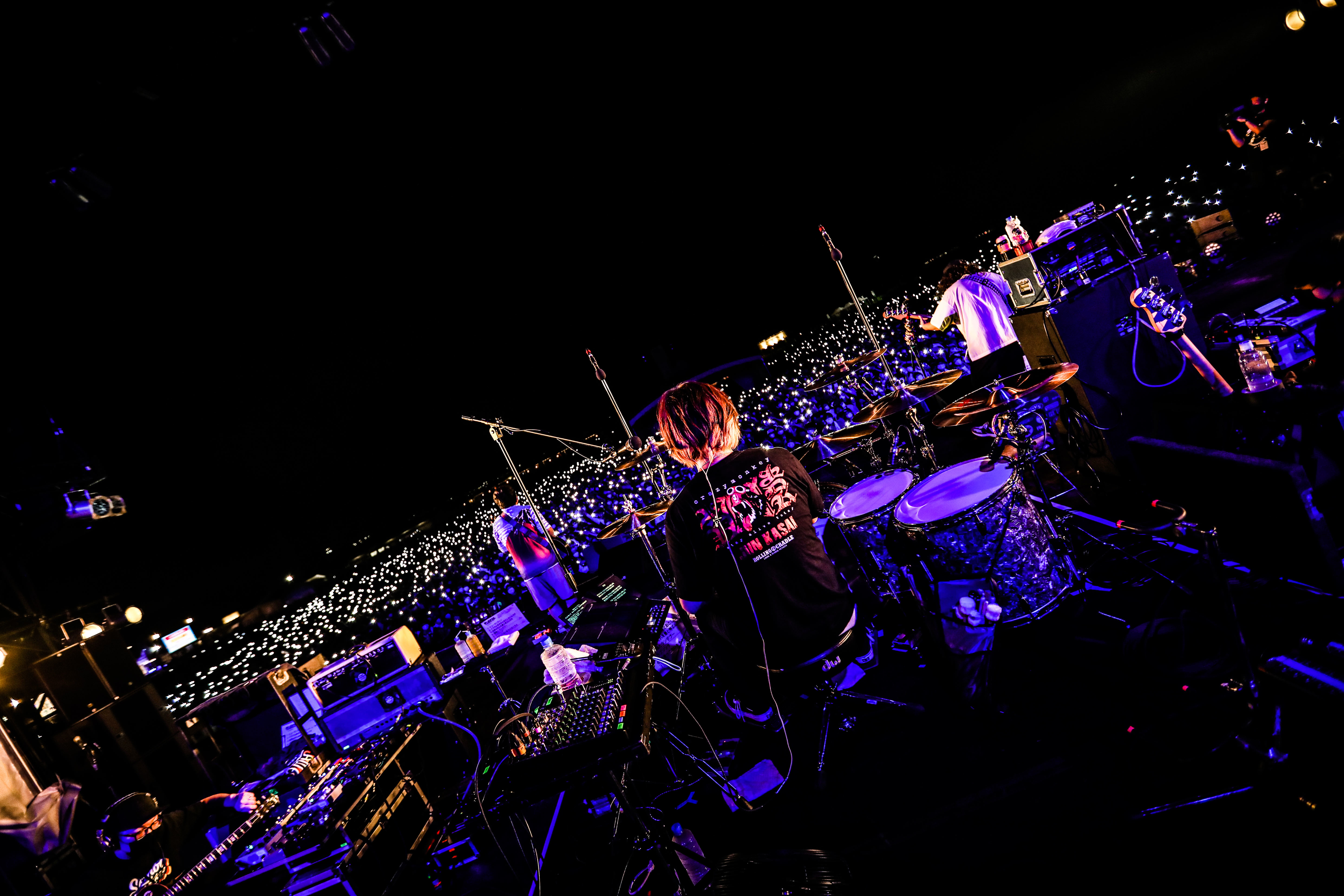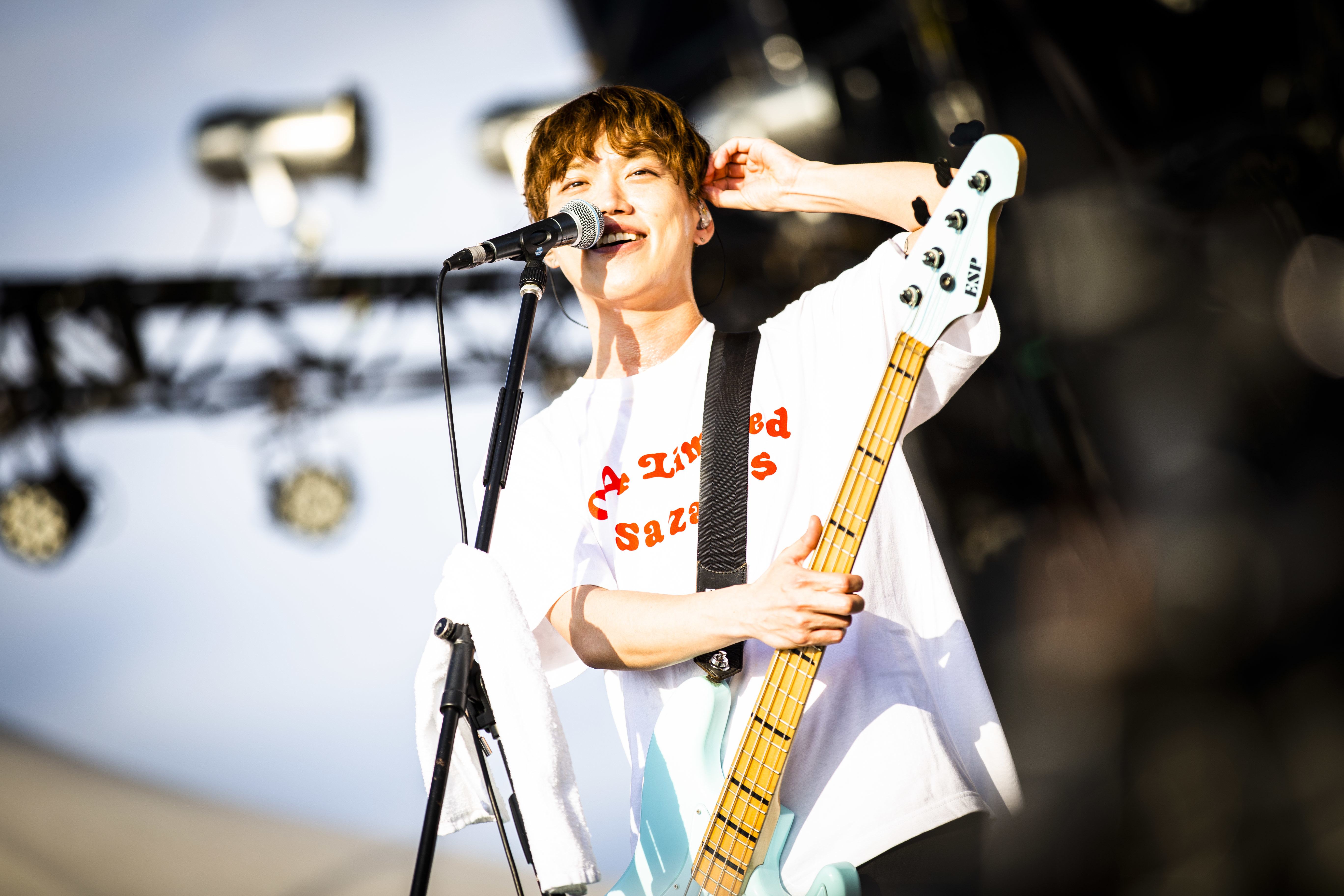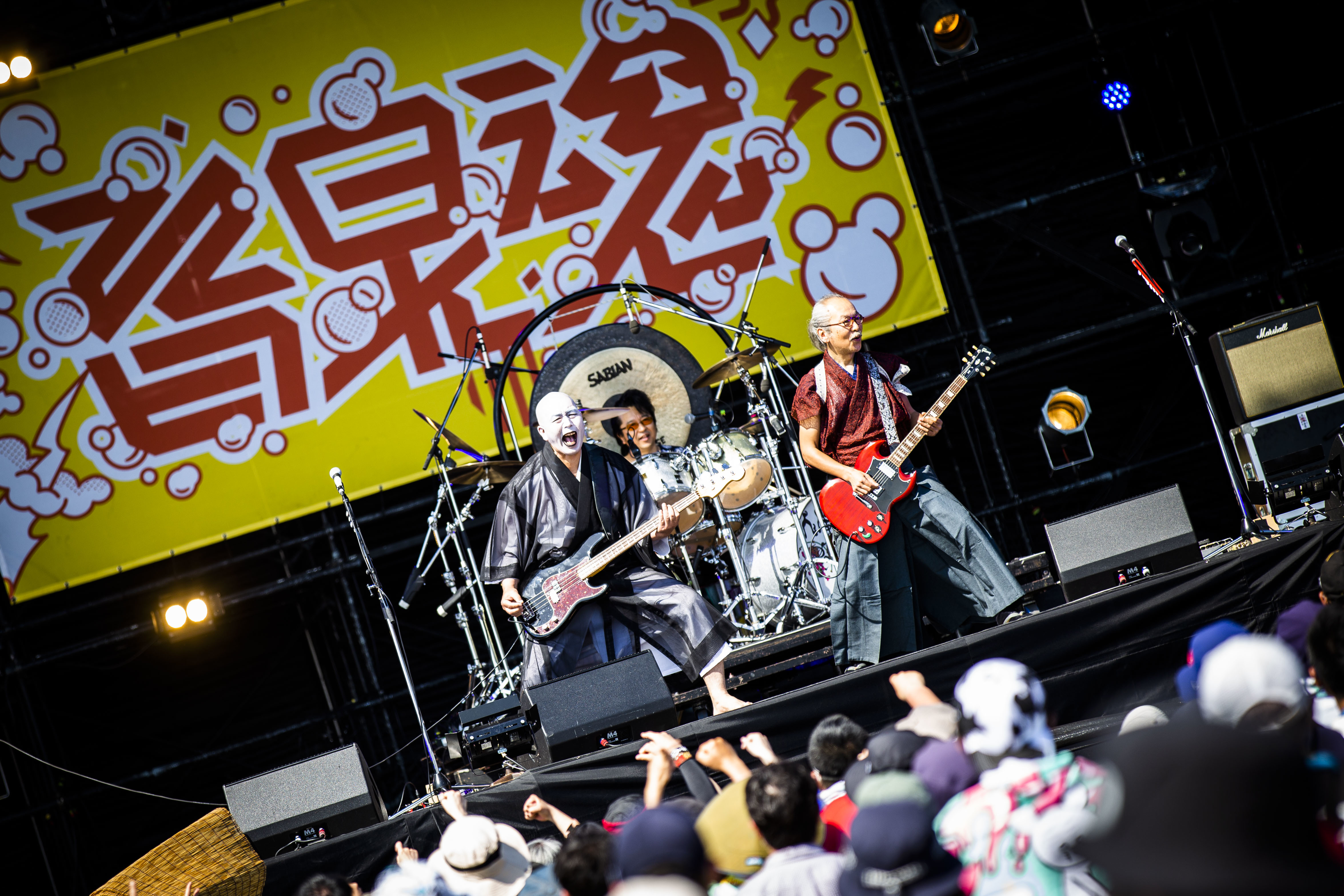 途中まで山口隆の弾き語り状態で進む「ラブソング」の時、山口の後ろで木内泰央がスマホのライトを左右に降ると、オーディエンスみんながそれに続き、露天風呂ステージのエリア全体が明るくなった。この「スマホの光をみんな降る」って、フェスで定番の光景だけど、2年半ぶりの『OTODAMA』で観ると、とりわけ感動的だった。