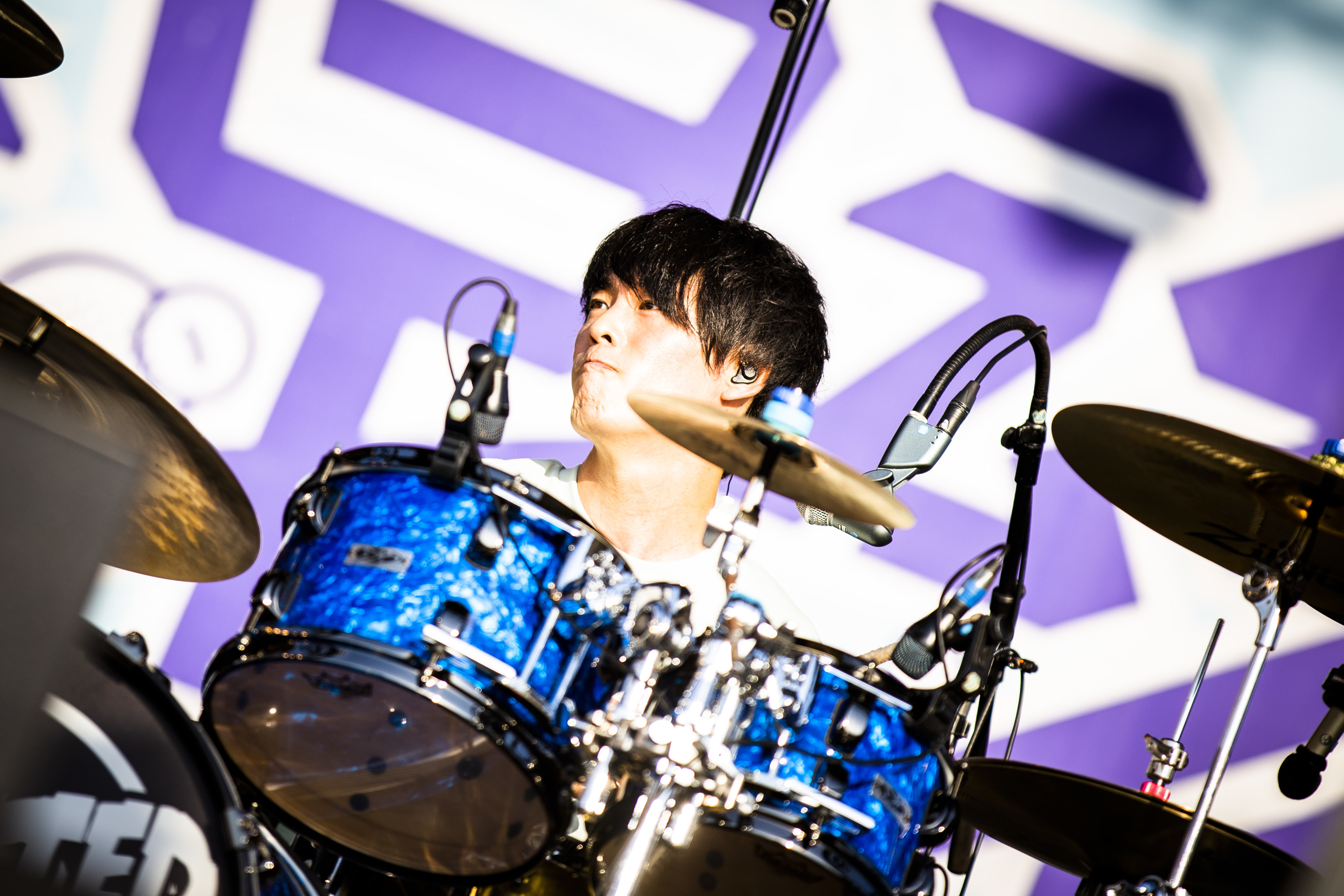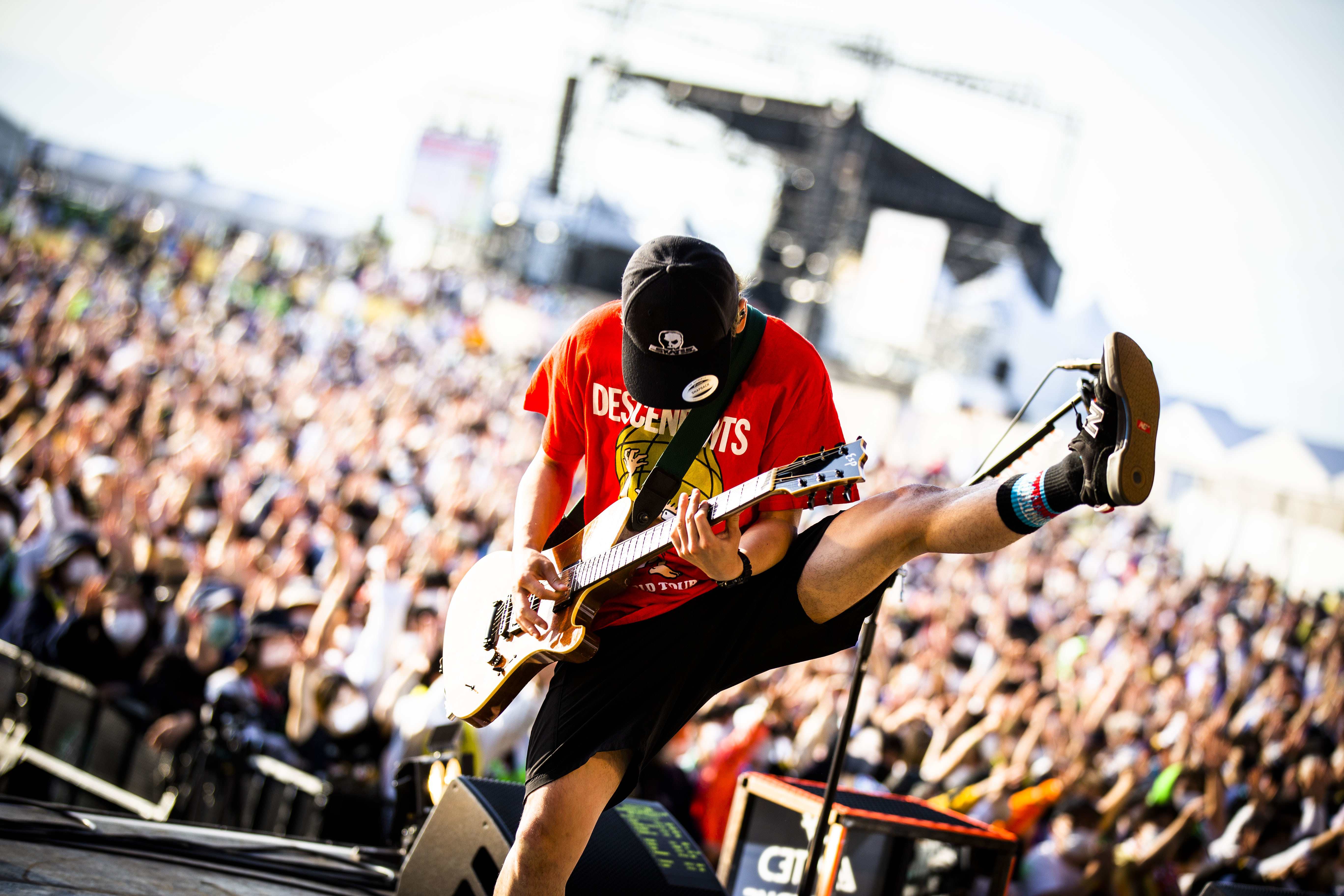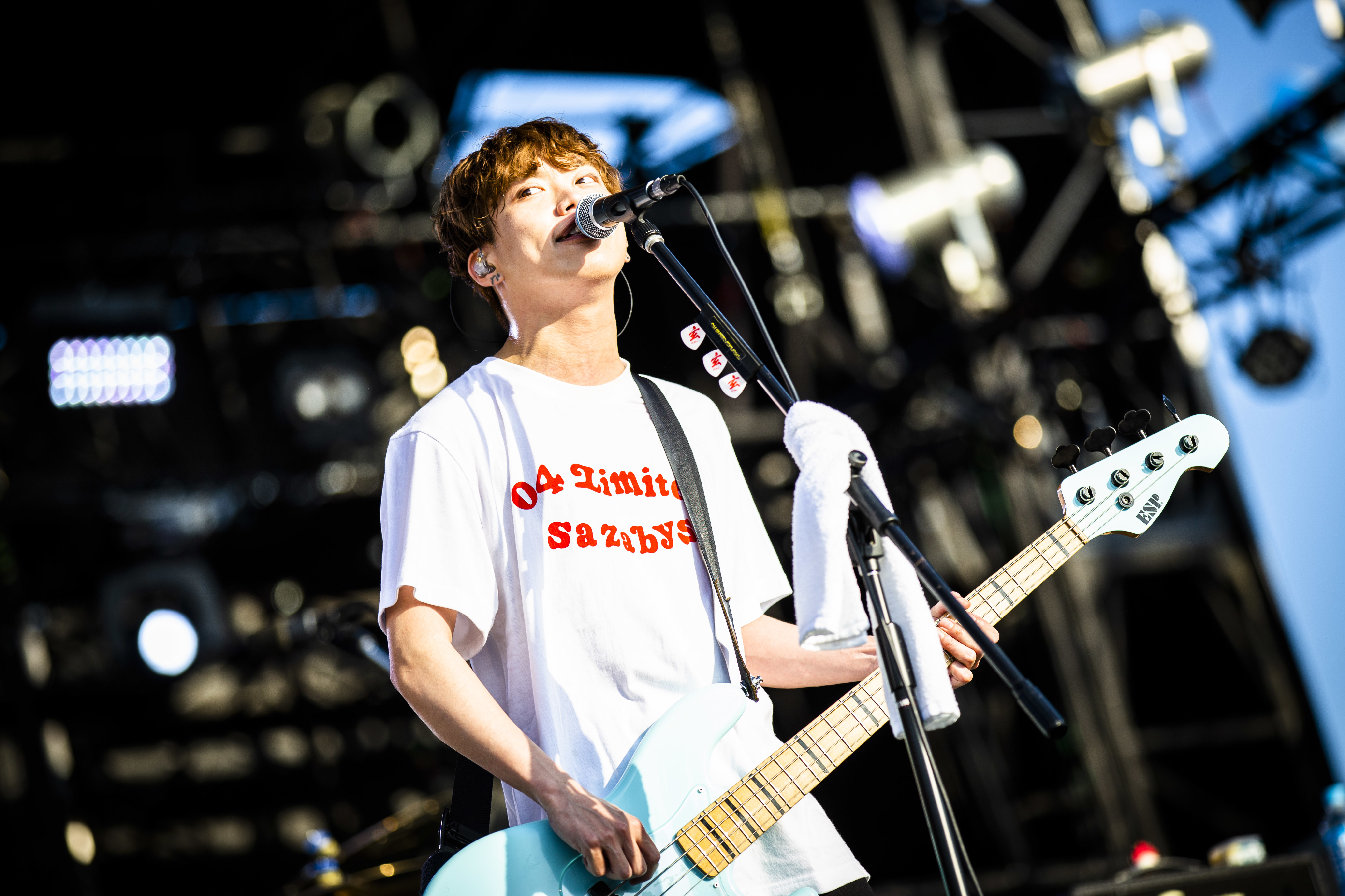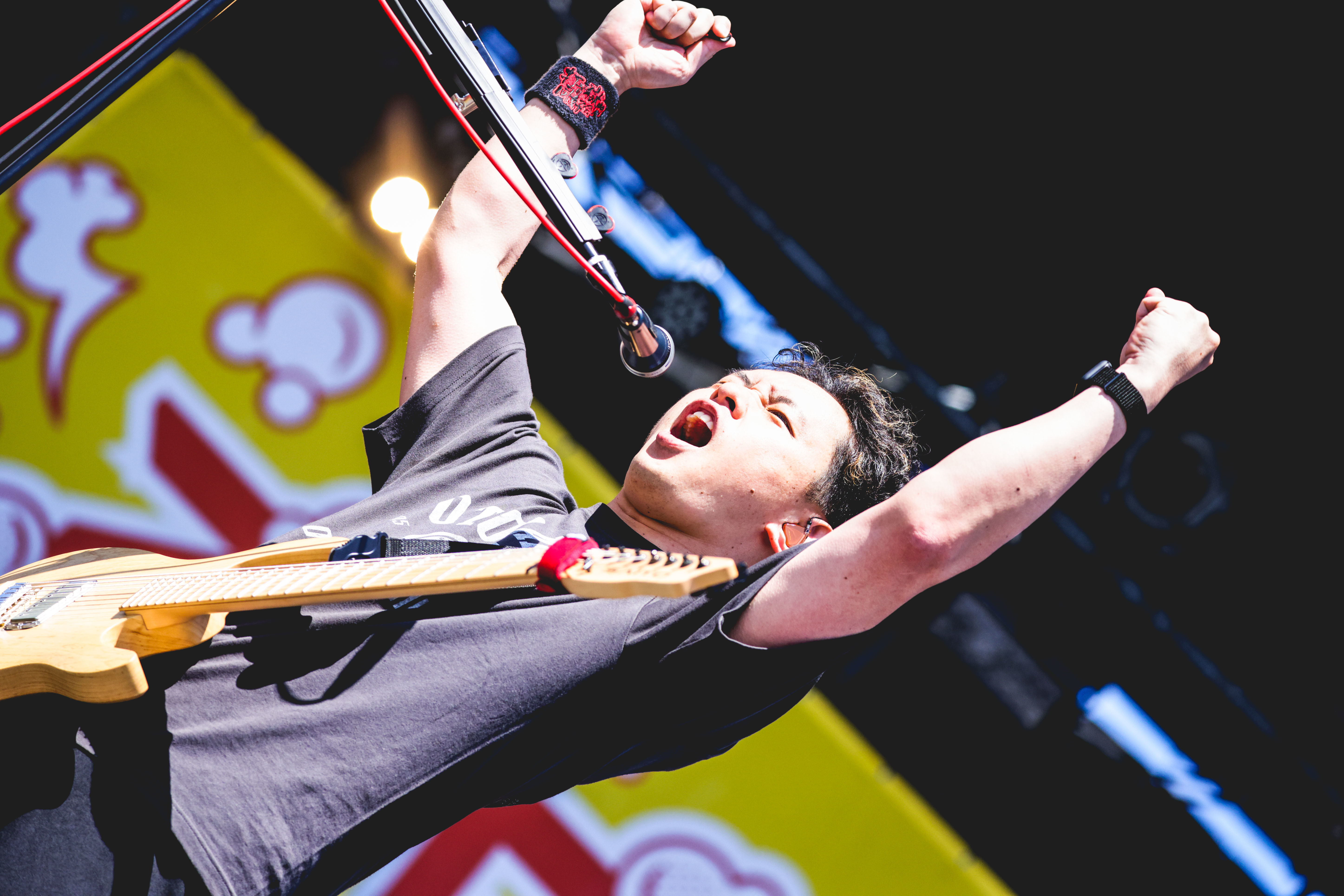 とスタートした04 Limited Sazabysは、この日の出演者の中でおそらくもっとも「感染予防でモッシュ等禁止」のダメージがでかいはずだが、そんなの意に介さず、どんどんオーディエンスを熱くしていく。