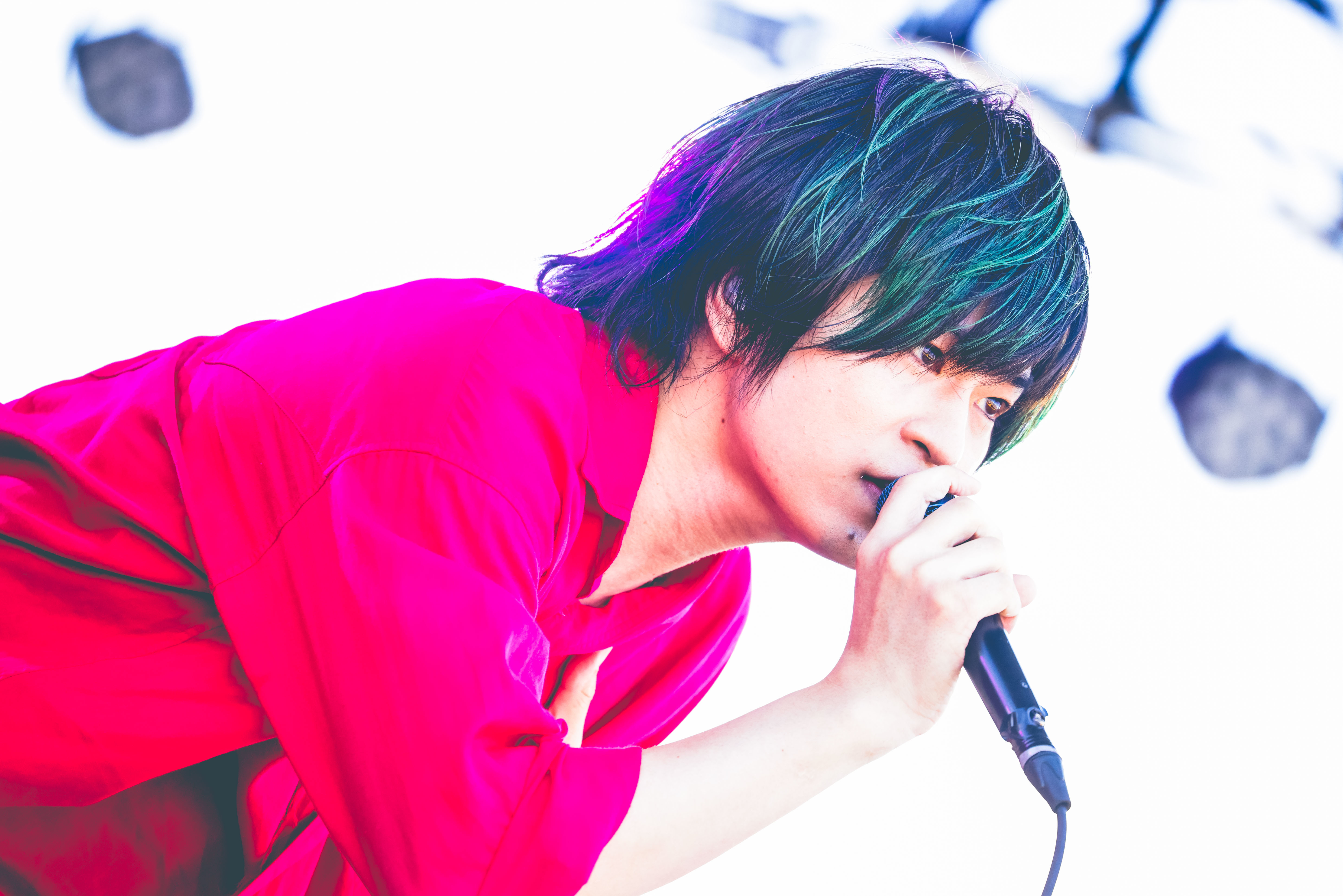 いつもの、ポエトリー・リーディングのような、アジテーションのような、長いMCで、オーディエンスをあおった後、「……あの子に俺は、心の服を脱いでもらってたのかな、と、今、みんなをあおってて思いました」と、我に返ったことを言葉にし始める、My Hair is Badの椎木知仁。その「あの子」と自分に関して、忘れたこと、覚えていることを、しばし言葉にしてから、その曲=「真赤」へ突入する。ここ2ヵ月で3回ライブを観ているが、いつどこで観てもその日一回限りのドキュメントだ、この人たちのライブは。一瞬一瞬が、一音一音が、常に初めて鳴らしたような切迫感に満ちている。