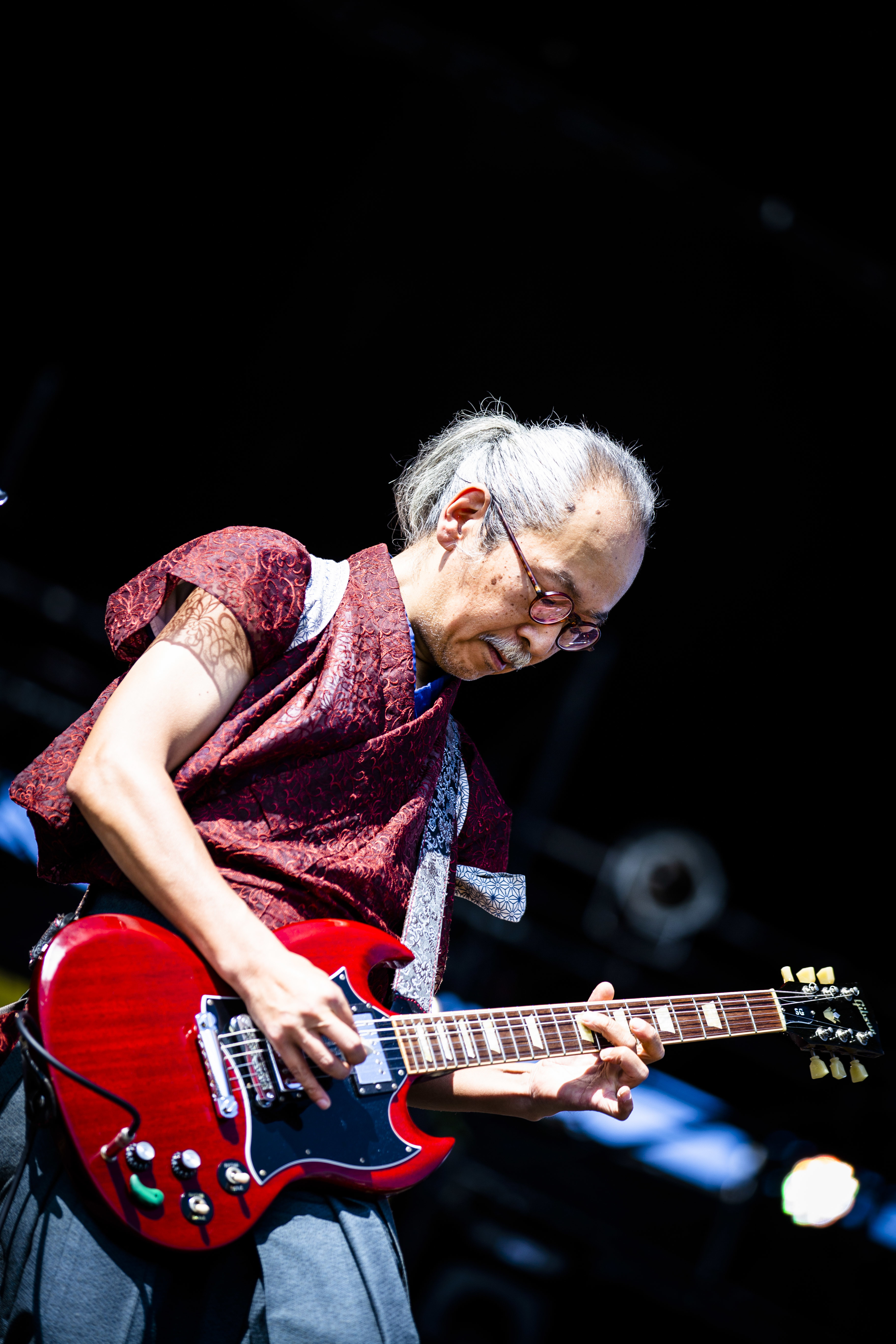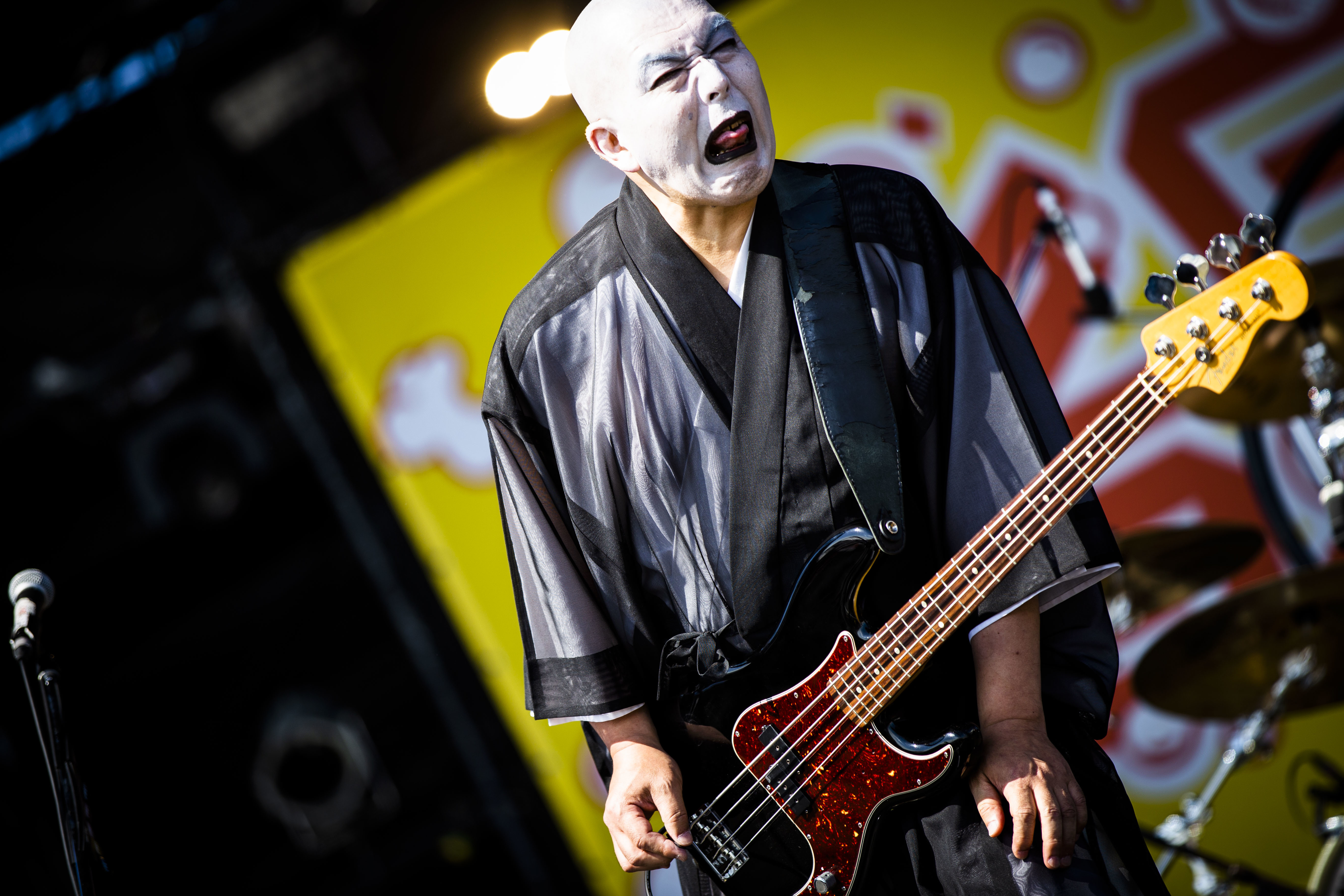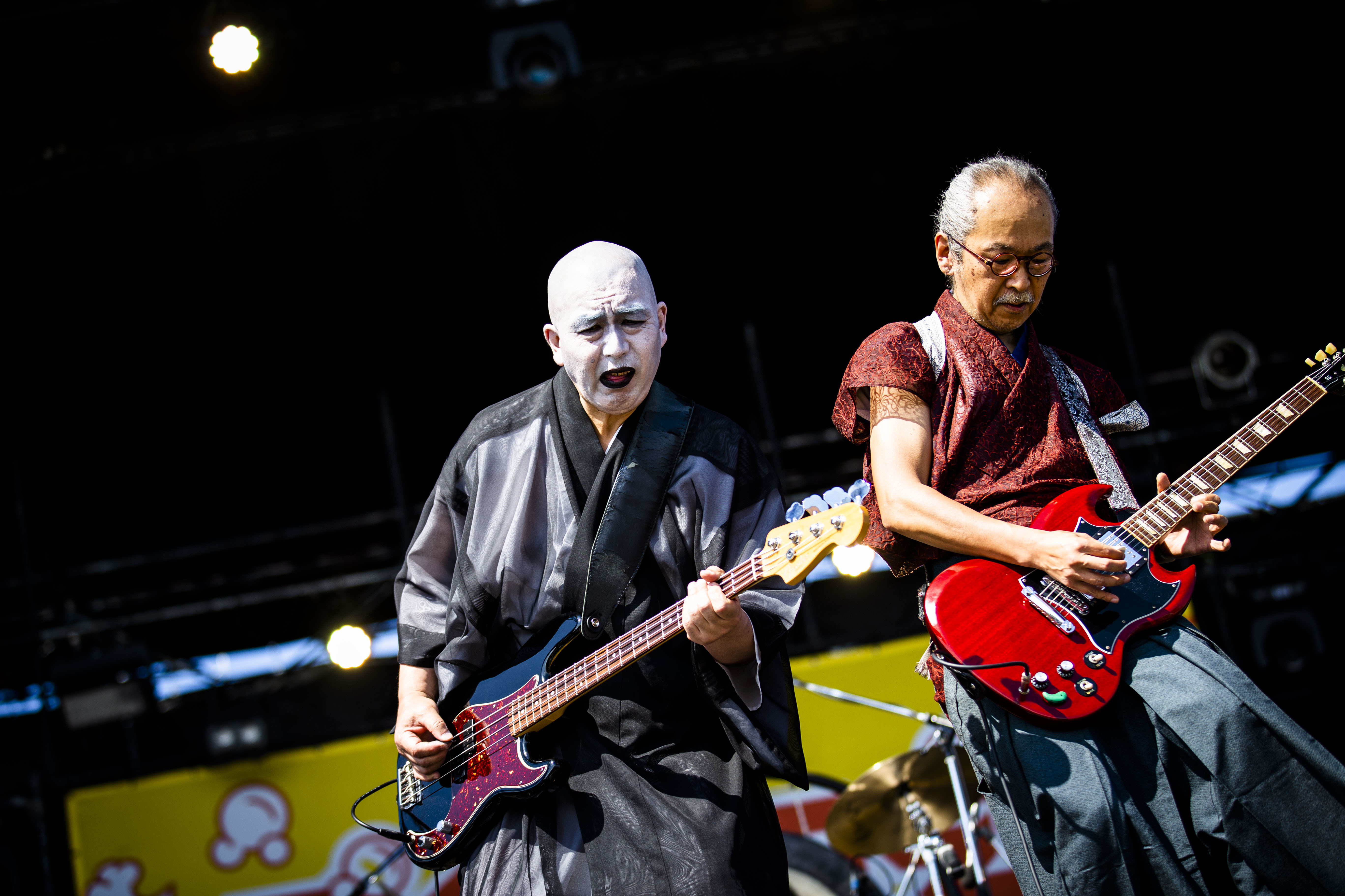 他のアクトは7曲か8曲なのに、人間椅子は5曲。要は1曲が長いからだが、その持ち時間をフルに使って、ちょい暑いくらいの心地いい晴天の泉大津フェニックスを、異世界に叩き込む。「それでは3人のありがたーい般若心経を聴いてください」で始まった「芳一受難」と、次の「無情のスキャット」が、その異世界っぷりの最たる時間だった。
