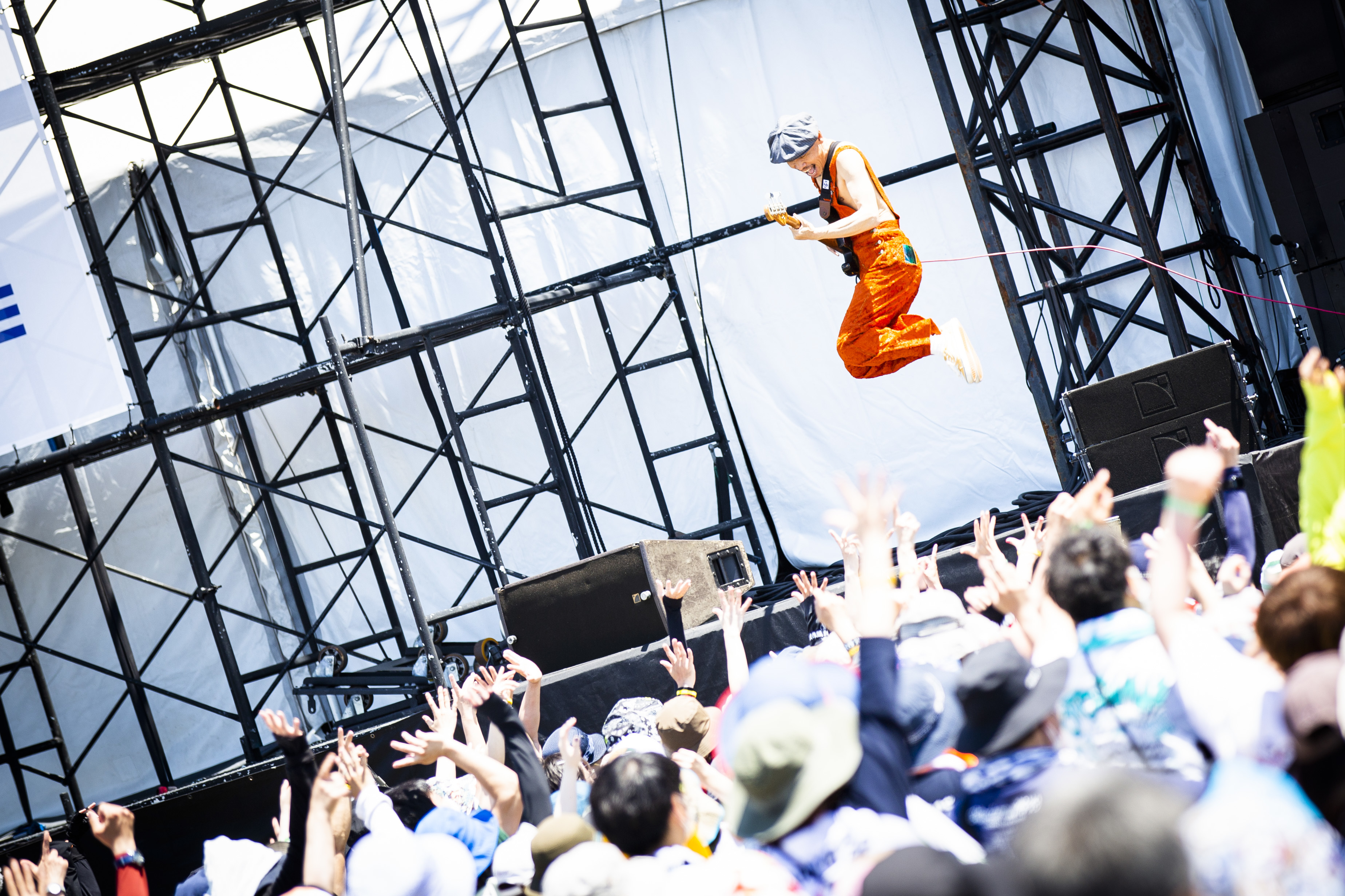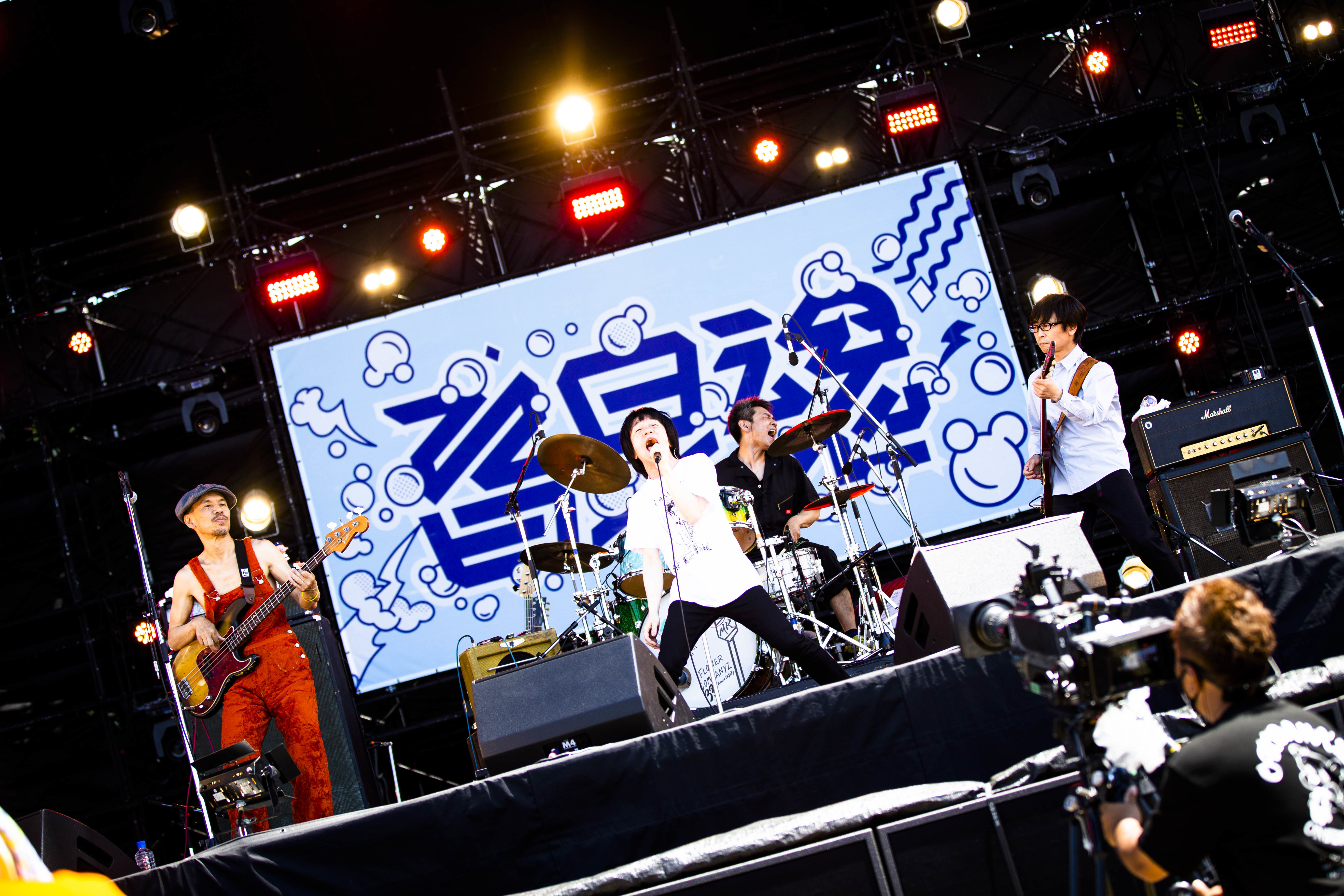 1回目からこのフェスと共に歩んできて、2010年の「ミスター小西ジャンピング乾杯骨折事件」や、2015年の初の日本武道館の時のバックアップ企画「フラカン熱湯CM」など、様々な歴史を作ってきたフラワーカンパニーズは、そのわりにいつもどおりの地に足のついたライブをやった。ように見えたが、後でグレートマエカワにきいたところ、「いやあ、ヤバかったわ俺、2曲目までグッときちゃってて。そのあとなんとか持ち直したけど」。泣きそうだったということだ、今年53歳のおじさんが。ラストの「サヨナラBABY」で、オーディエンスの腕が左右にバーッと振られるさま、壮観でした。で、泣けました。