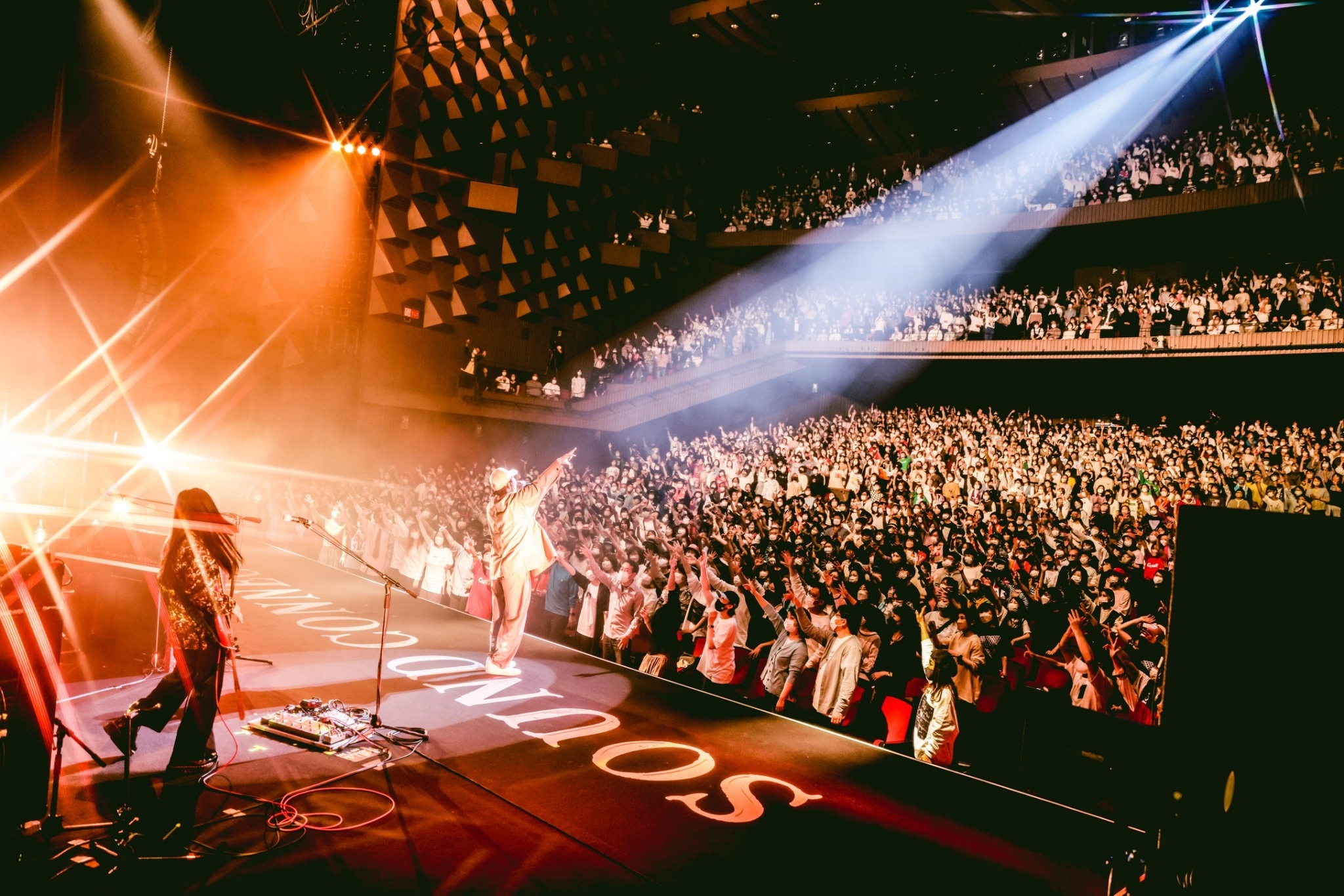 「『SOUND CONNECTION 2022』、フェスティバルホールに来てくれてありがとうございます~! 心から楽しみにしてたので、僕がこの中で一番うれしいと思う(笑)。満員のフェスティバルホール……僕も前にツアーでやりましたけど、まだコロナで制限があったから。でも、今日はいっぱいいるじゃん? あと、NulbarichのJQ(Vo)さん、バウくん(=Vaundy)が大好きですし、そんなみんなと一緒にやれるのもうれしいですよね。ここからは僕が頑張って歌って、楽しいニュースも伝えるので、せめて僕と同じくらい皆さんも幸せに、もし良ければ僕以上に幸せになってくれたら。そのためにここに来たから。最後まで一緒に楽しみましょう! (大きな拍手を受けて)とてもいい景色。つい最近出した曲で、珍しくストレートに歌えた曲があるので、それを聴いてもらおうかなと思います」