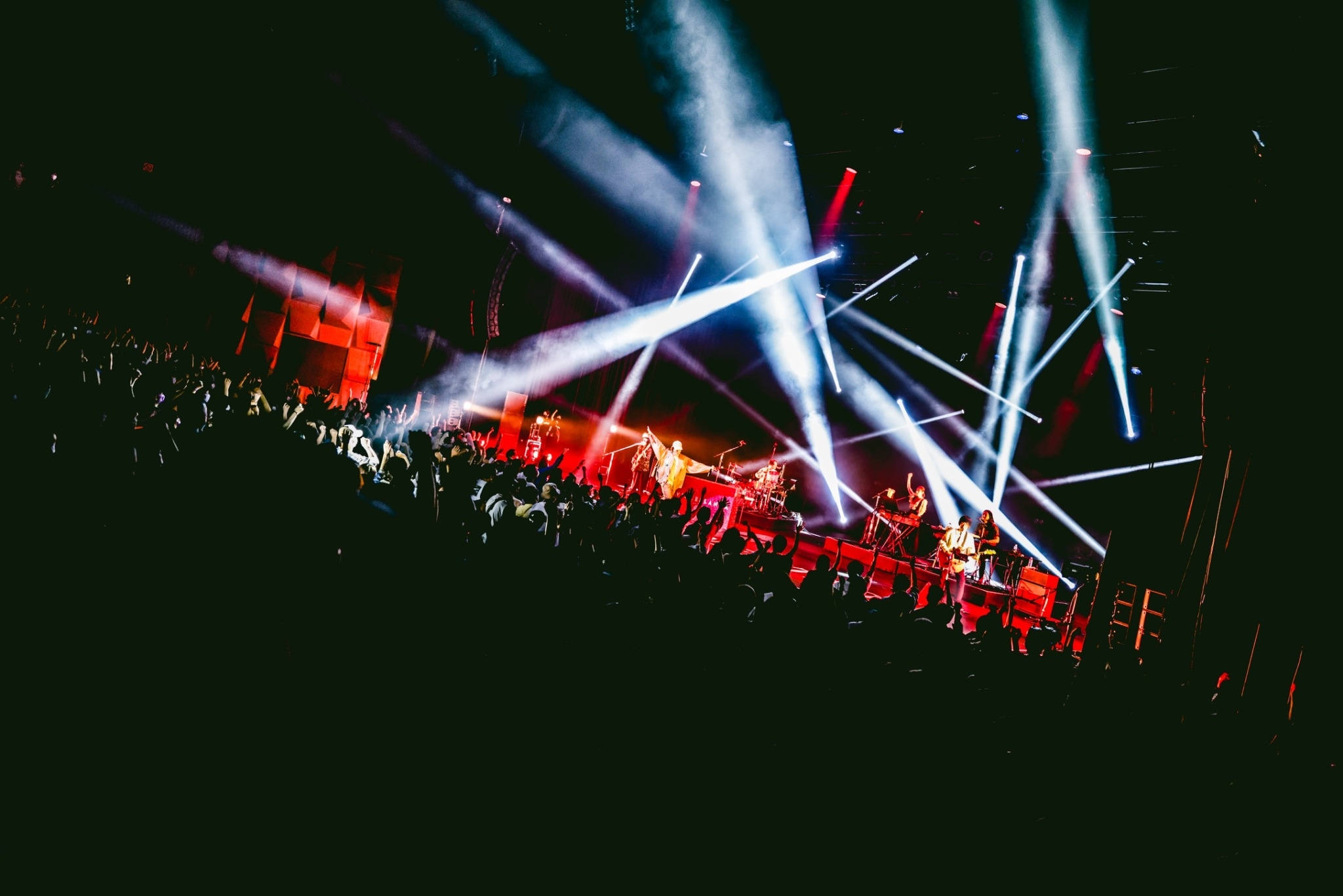 静寂と暗闇を抜って現れた6人のシルエットが浮かび上がる中、「ずっとみんながブチ上がってるのを見てたんで、期待してます。今日はよろしくお願いします」とNulbarichのJQが告げ、バンドの強靭なグルーヴを堪能できるオープニングから「何も考えず、感じたままに踊ってください」と「TOKYO」へ。冒頭からラフなたたずまいで伸びやかな歌声を聴かせるJQが、まるで自分の部屋にいるかのようにリラックスした表情で音楽を届けていく。3階席までびっしり埋まったフェスティバルホールを見上げ、「踊れる曲をいっぱい持ってきたんで、落ちないでね(笑)。気を付けてね」とほほ笑みながら、「ain’t on the map yet」でもイベントのクローザーという大役へのプレッシャーなどみじんも感じさせず、「縛られてるのは声の制限だけなんで。自分たちのペースで、自分たちのスペースで、新陳代謝を上げていこうじゃないですか」と、音のみならず言葉でも高揚感をもたらすパフォーマンスはさすがだ。