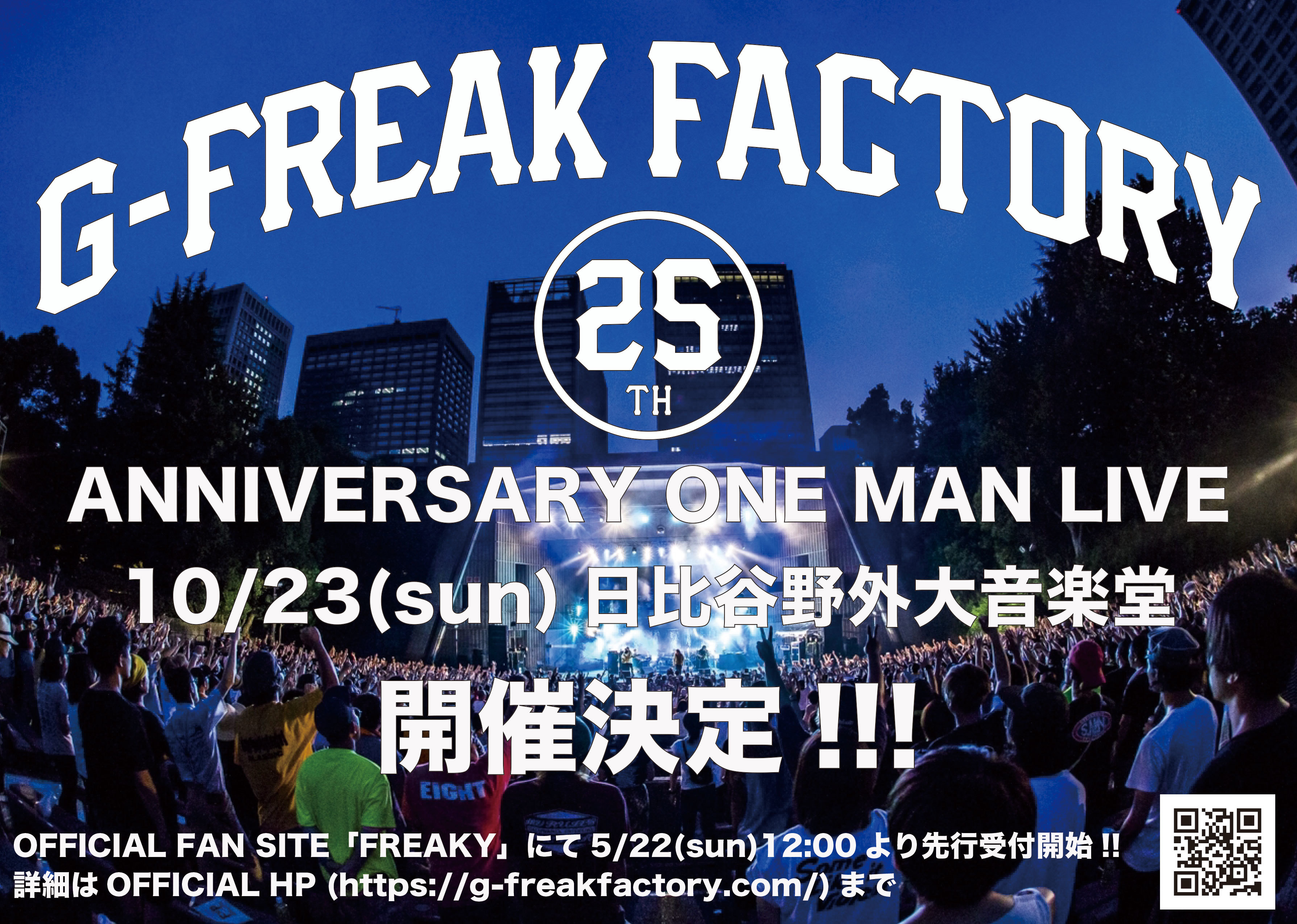 G-FREAK FACTORYが、10月23日(日)に日比谷野外大音楽堂にて結成25周年記念ワンマンライブ『G-FREAK FACTORY 25 th ANNIVERSARY ONE MAN LIVE』を開催する。