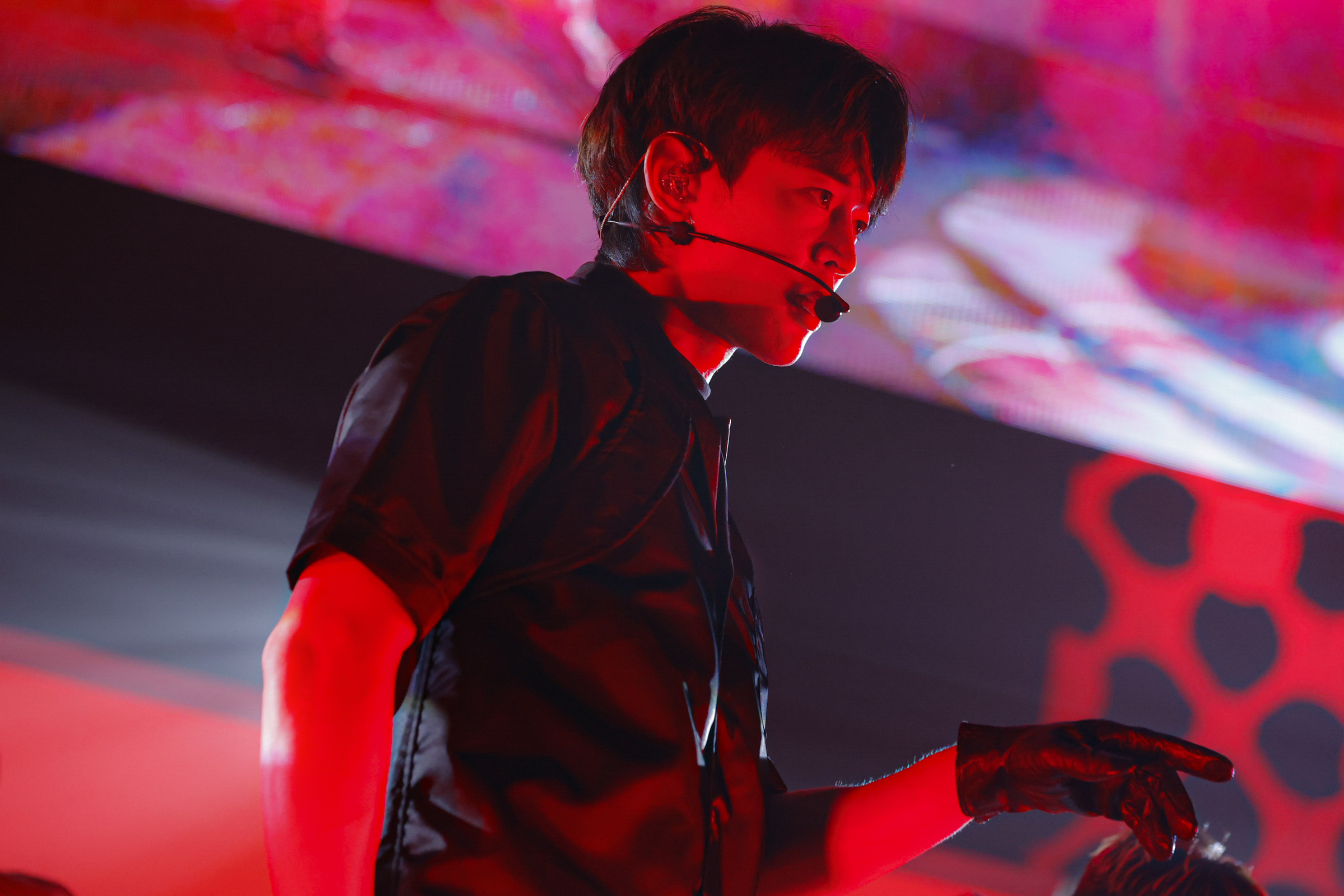 オープニング映像の後、ついにミンホがステージに登場。冒頭から新曲「Falling Free」を届けるサプライズで、ミドルテンポのバラードでダンサーを従えてパフォーマンスする。ボトムスがハーフパンツのカジュアルなセットアップの衣装を纏い、“空”をモチーフとした歌詞の世界観とリンクする鳥のような動きも取り入れたダンス、ファルセットを交えた歌唱など、“SHINeeのミンホ”とはまた違った姿でファンを魅了。会場の空気を一気に温めた。