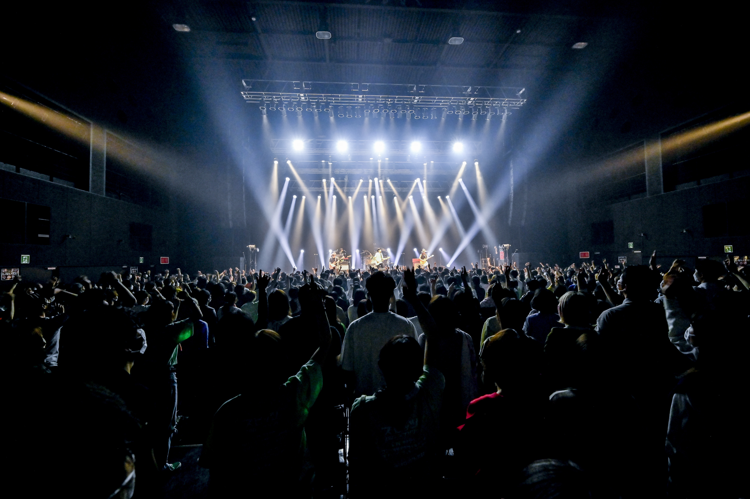 アンコール。マサムネの「バンドマンでしかいられない体になっているんで、何とか続けられる様に頑張ります」という言葉も響きまくった。そこからのエッジの効いた「三日月ロック その3」もかっこいい。遂に締めへ。思わず耳を傾けたくなる三輪テツヤのギターフレーズから「こんにちは」。<また会えるとは思いもしなかった 元気かはわからんけど生きてたね ひとまず出た言葉は「こんにちは」>という歌詞が、どうしても今の御時世、勝手に色々照らし合わせてしまうし、全く湿っぽくならない若々しいビートに燃えるし、萌える。