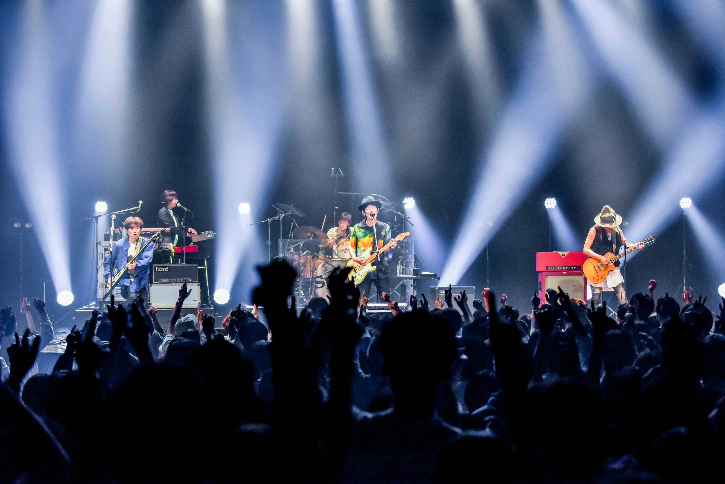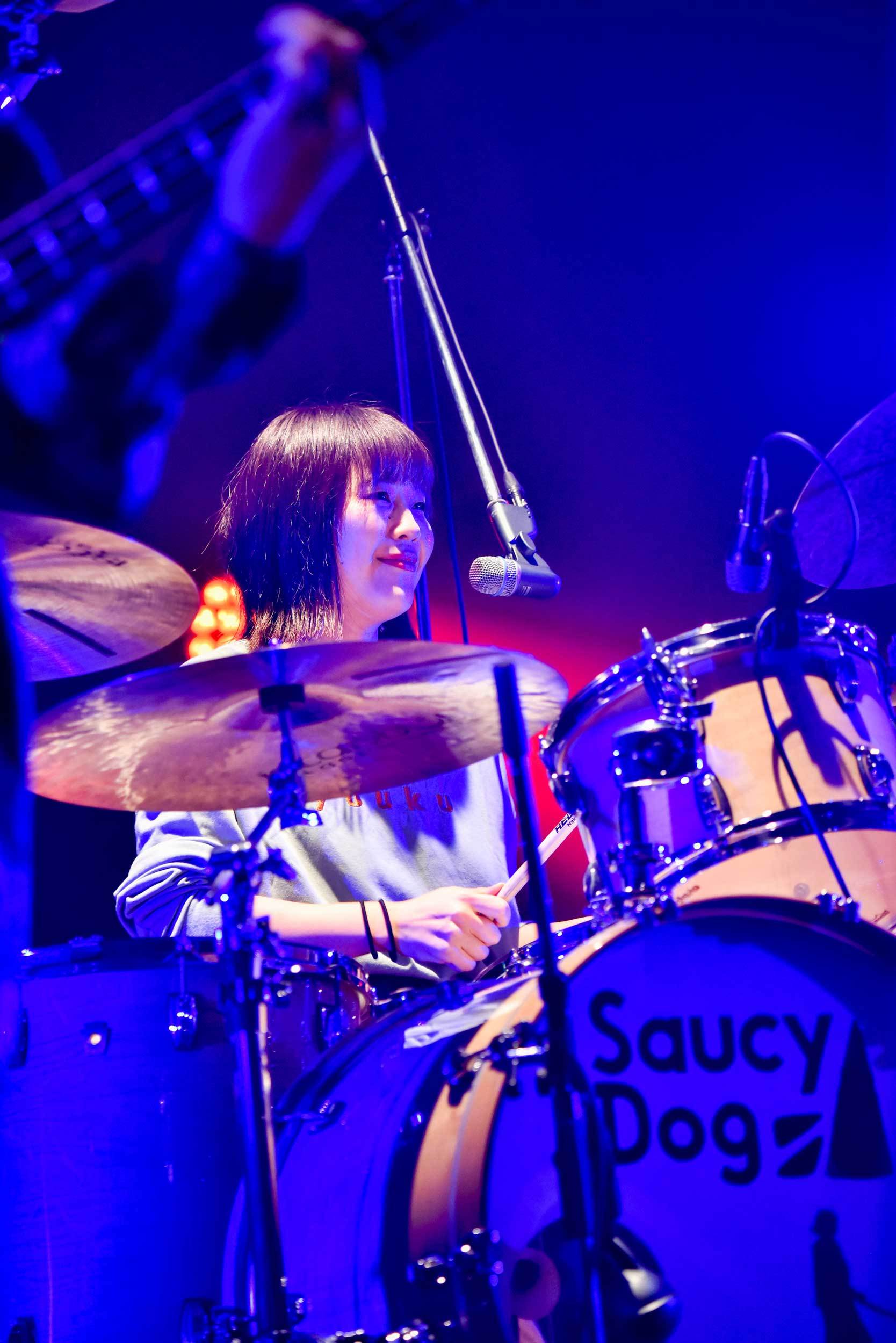 いよいよラストナンバーへ。その前に石原が語り出す。「まさかスピッツさん、奥田民生さんと、僕のライブ人生の中でライブができるとは……。そのライブをたくさんの人に目撃してもらうのは嬉しいです。できれば、「今日、Saucy Dogというバンドがいたな!」、「あの歌詞を覚えているな!」とみんなの人生の中に入りこめていたら。そうやって、みんなと生きていけたら……」。そう語ってから、勢い良いカウントから「猫の背」。「夢から醒めないように」の歌詞の部分で、観客から自然に手拍子が起きたのは、彼らの熱情が観客に伝わった事を証明するかの様で、とても素敵な光景であった。「ありがとうございました! 素敵な時間でした! 幸せでした! すごく緊張したけど……」。この石原の最後の言葉に全てが表れていた。私の隣にいた観客ふたりが「そりゃ緊張するよね!」と言いながら、大きな拍手を送っているのを観て、何故だかすごく嬉しかった。誠に誠実なトップバッター。