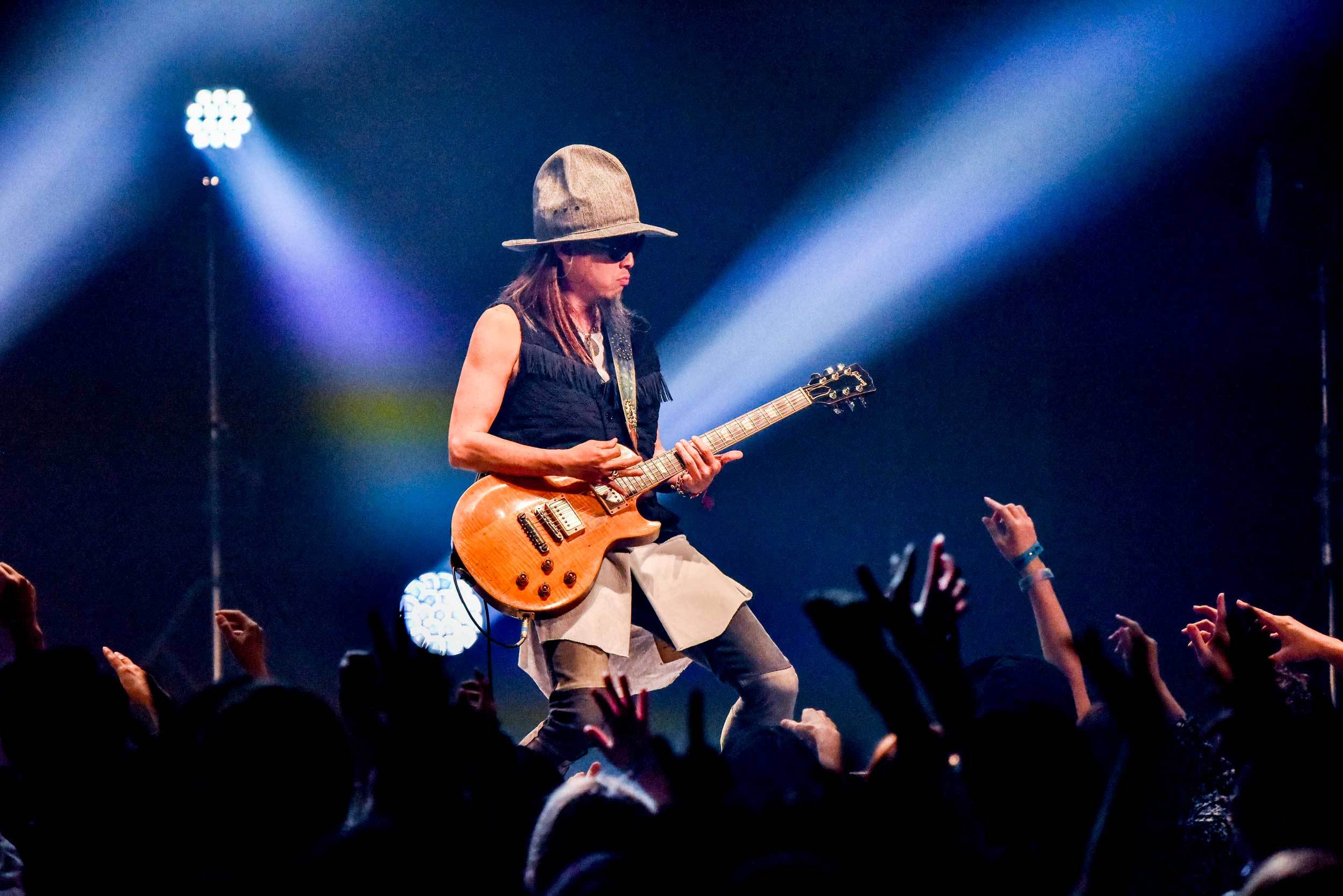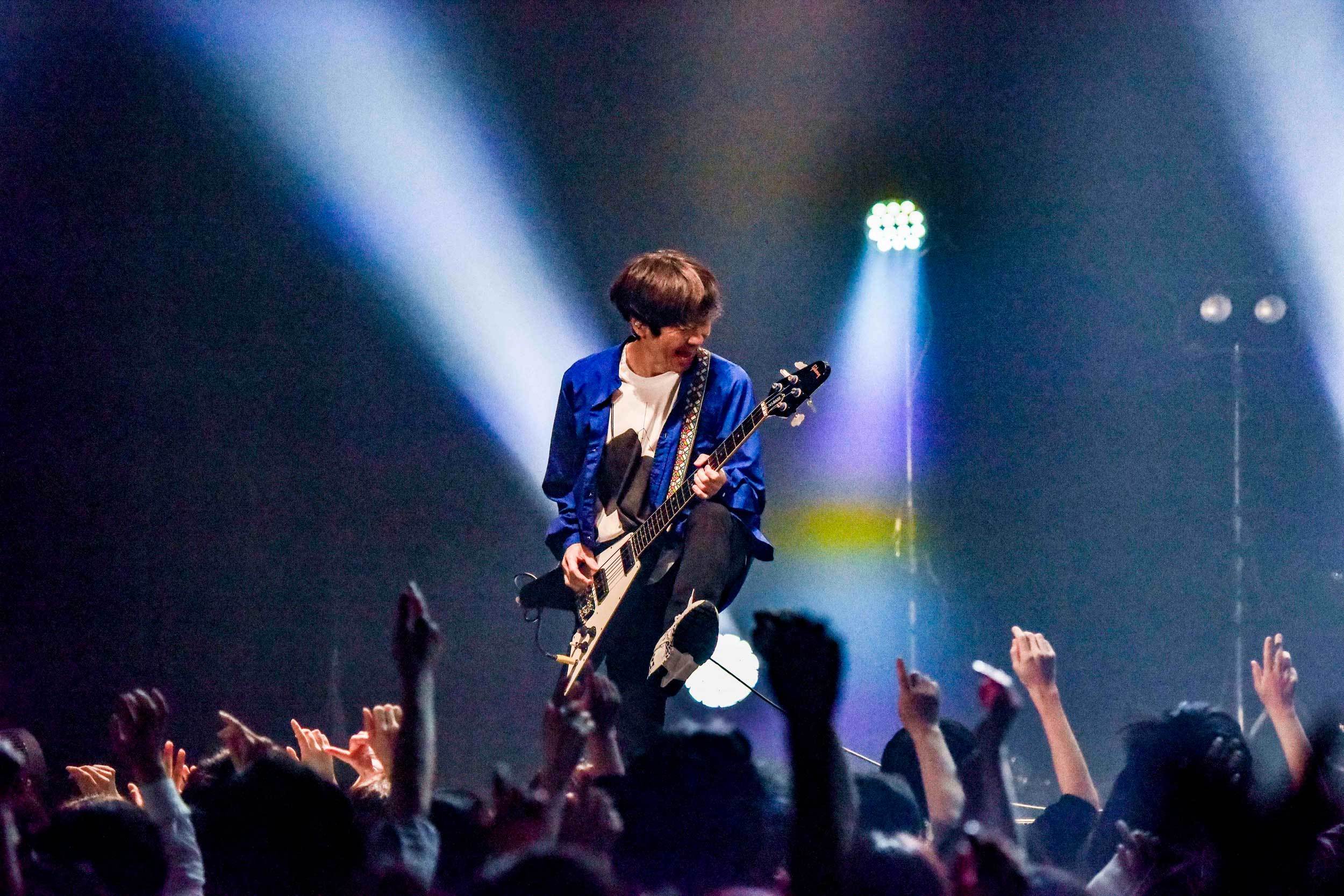 「ここにいるあなたに!」という石原の颯爽とした語りかけから鳴らされた「ゴーストバスター」は、最もリズミカルであり、観客への鼓舞にもなる激しさもあって、よりグッと耳を傾けられた。「知らない人もいるでしょうけど、自分なりの楽しみ方で楽しんで下さい!」と言って、そのまま「雀ノ欠伸」へ。その場で聴いていても、明らかにここの流れは確実に乗っていた。石原が手拍子を煽ったら、すぐさま観客から手拍子が返ってきた事からも、会場の空気がひとつになっている事がわかる。