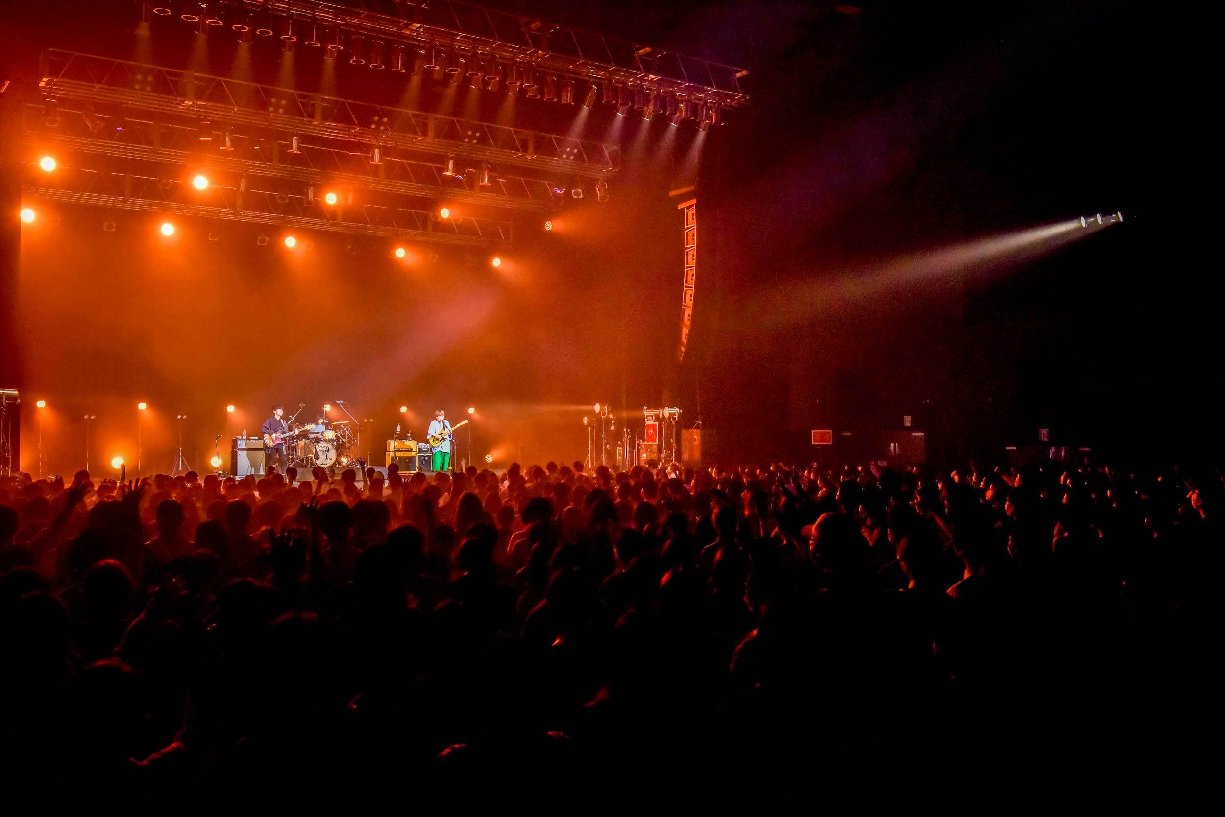 MCで石原は、プラムチャウダーが2014年に大阪城ホールで開催したイベント『仮面チャウダー ~YAJIO CRAZY~ チャウ大ユニバーシティインターナショナルコラーゲンハイスクール』に行っていたことを明かす。この何気ない思い出だが、それによって演者がグッと想いを持っているイベントだという事が、しっかりと我々に届く。せとのMCからも、とにかく真っ直ぐな想いが届けられる。もちろん音にも表れていて、3人が丁寧に丁寧に一生懸命に音楽を紡いでいる。大御所2組と共演して、大御所2組のファンの前でライブする事への緊張を感じつつも、だからこそ大舞台を心から楽しみたいという強い気持ちが根底にあった。