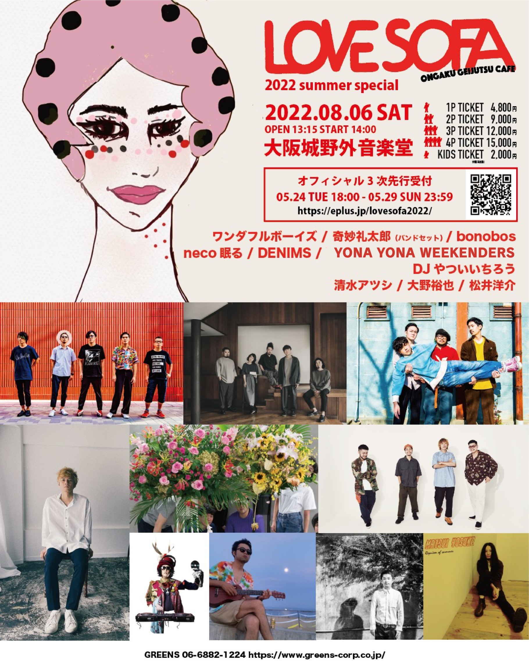 大阪を拠点に開催を続けるイベント「Love sofa」が、8月6日(土)に大阪城野外音楽堂にて『Love sofa 2022 summer special』と題し開催される。