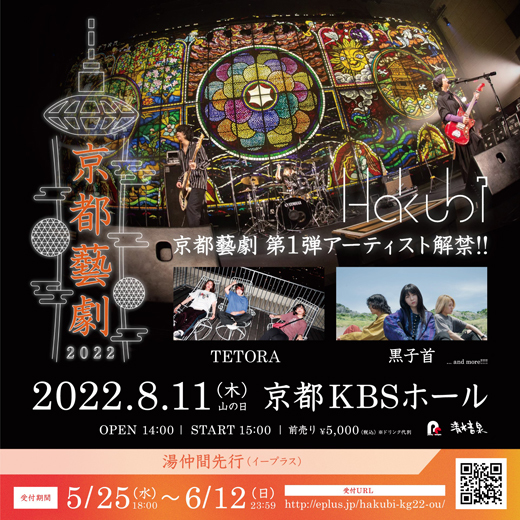 『京都藝劇 2022』は2021年に引き続き、今年も同じく地元・京都のKBSホールにて開催。Hakubiが初めてライブを行った2017年8月10日より、毎年京都にて欠かさずライブを続けてきた、バンドにとってのアニバーサリーデイ。地元の仲間達や、同世代のアーティストたちとともに、またライブに人が戻って来られる未来を見据え、今年も京都から決意の旗を掲げる。