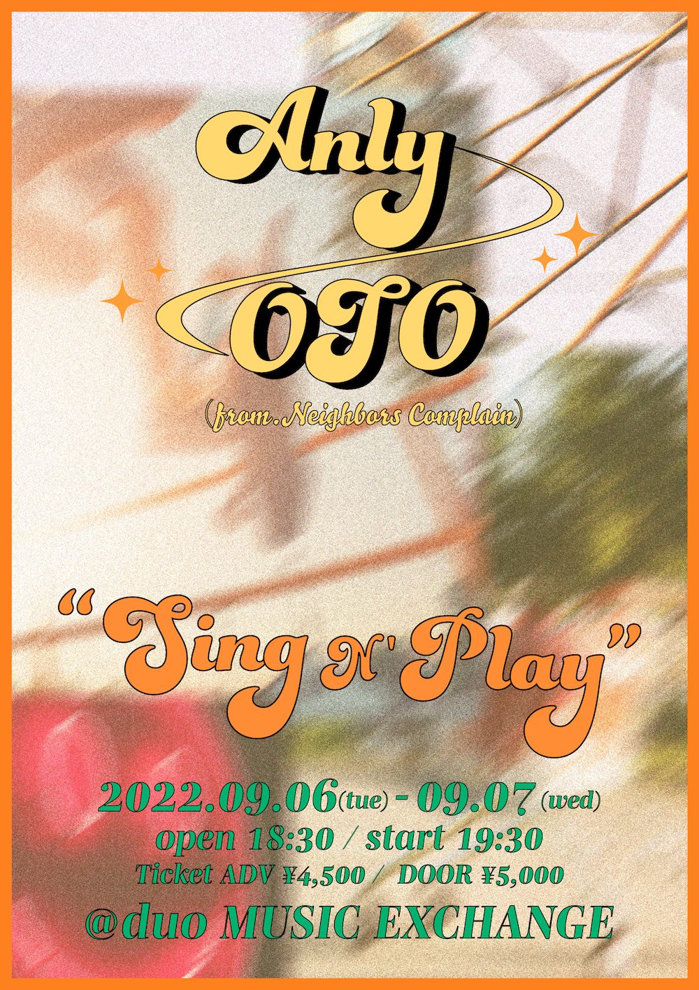 本企画『Sing N' Play』は、京都のアコースティック専門ライブハウスsomeno kyotoでスタートした、その日限りのコラボレーションを届けるライブシリーズ。AnlyとOTO(from.Neighbors Complain)は、2019年秋に京都・名古屋での開催で初共演し、2020年9月には配信ライブでも実施するなど、コロナ禍でも親交を深めてきた。今回は初めての東京公演、そして有観客での開催となる。
