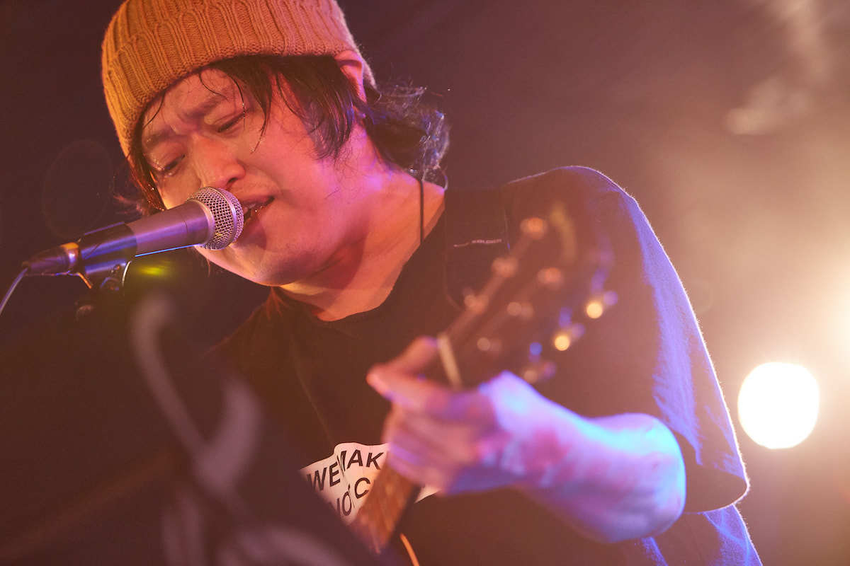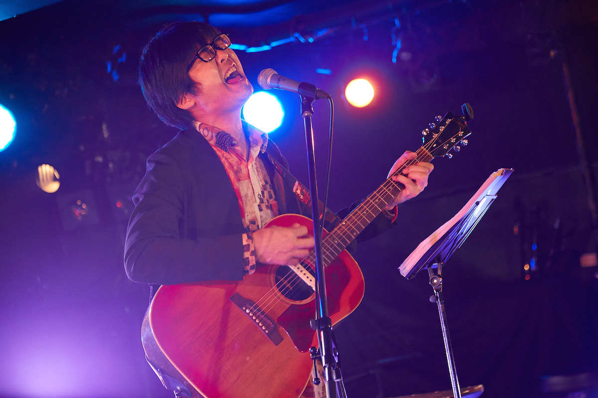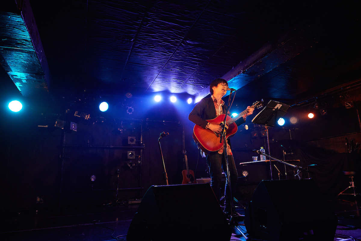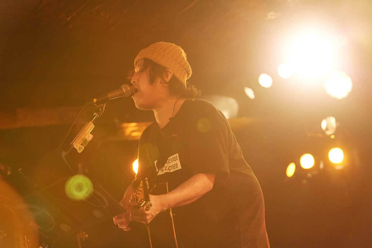 中高生の頃に聴いたラジオがミュージシャンを志す原点であるとした上で、「まごうことなき貴子チルドレンです」と告白した西村(ちなみにドラムの山田雅人も同様らしく、この日も観に来ていた)。ドラマを監督したり役者として1人舞台に出演したりとマルチな活躍も話題に上っていた彼が、自分で撮った映画の主題歌なのでタイアップだと言い張っている──というユーモラスな紹介から歌ったのは「Love Me Shelley」。ミドルテンポに乗せ、優しい泣きメロが染み渡る。スタンディングでフロアを埋め、曲間の度に惜しみない拍手を送るオーディエンスに、「この光景にずっと泣きそうです」と語りかけてから、最後に「君に響け」を披露。アコースティック演奏であることを忘れるくらいに場内を温めてバトンをつないだ。