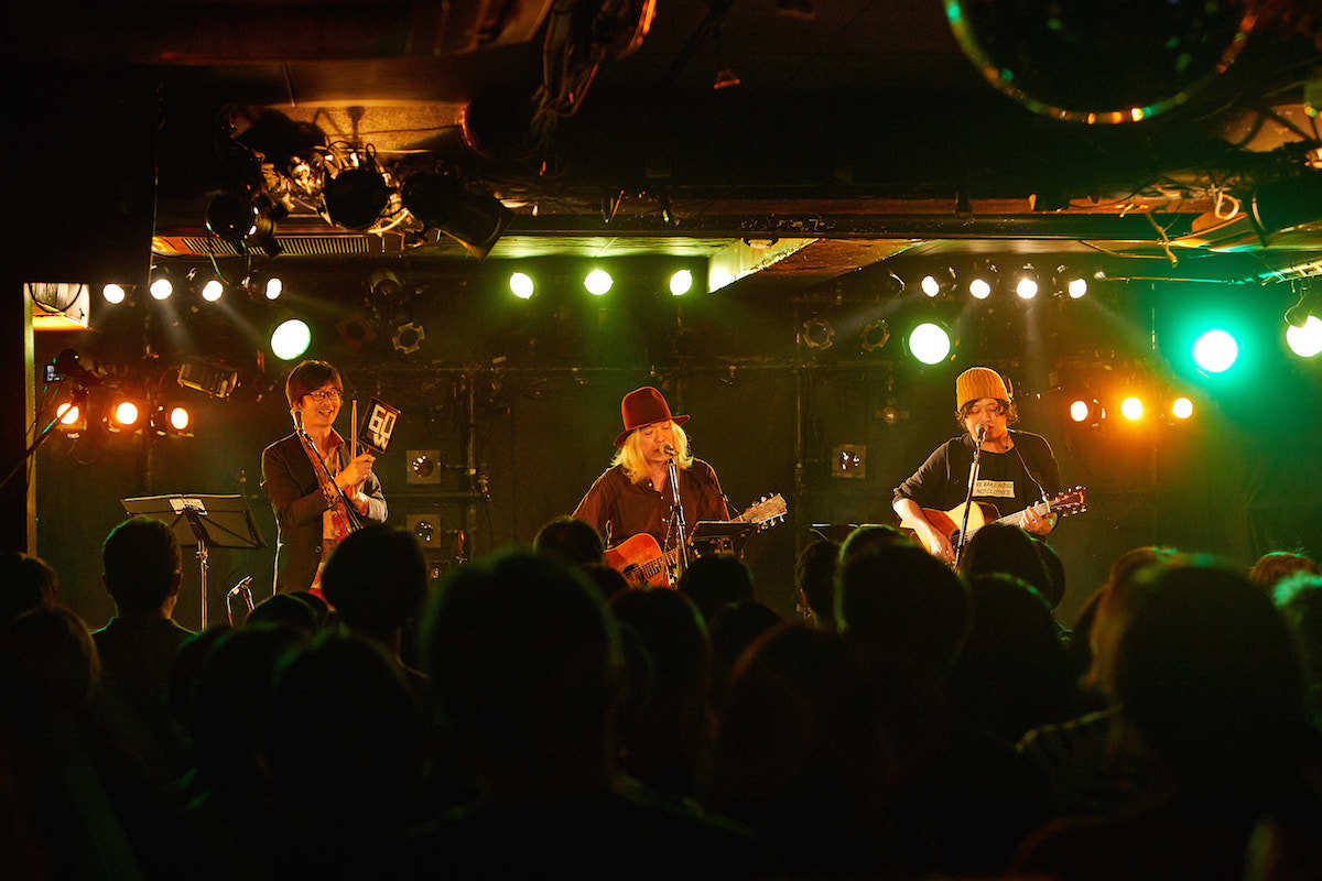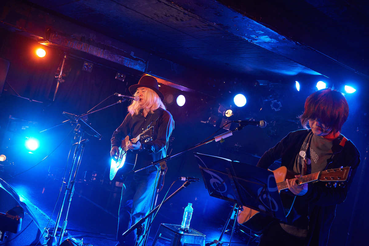 西村との出会いは20年ほど前、福岡にある「照和」というライブ喫茶であること、憧れの存在である直枝には10年前に話しかけてからの付き合いである、といったエピソードを振り返りつつ、2人との共演を喜ぶ長澤。西村との出会いよりもう少し前に生まれたという「15の夏」はシンプルな演奏と即興で言葉を乗せているような歌で届け、ブルースを思わせる「されど木馬」ではがなりたてるような荒々しい歌唱も交え、鬼気迫るステージを展開していく。どの曲にも、まるで今思い浮かんだ言葉をダイレクトに投げかけているような、真に迫る生々しさがあるのがすごい。そしてその極致と言えるような「蜘蛛の糸」を、繊細なアルペジオと叙情的な歌でもって届けきって、全8曲のライブを終えた。