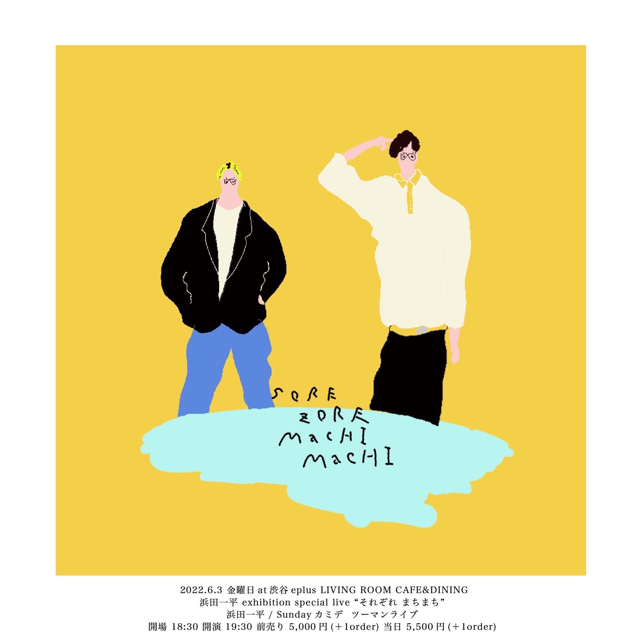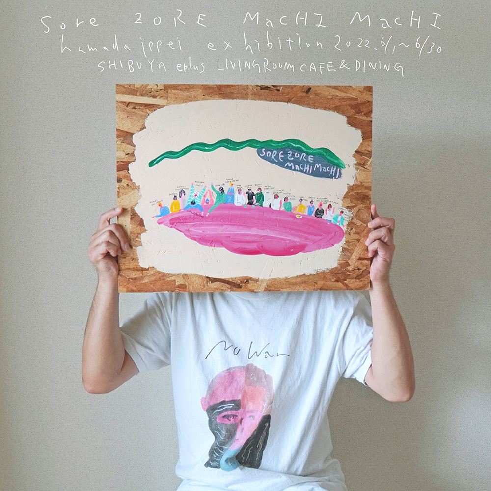 シンガーソングライター/イラストレーターとして活動する浜田一平が、個展『それぞれ まちまち』を、6月1日(水)~30日(木)eplus LIVING ROOM CAFE&DININGにていよいよ開催する。自身最大最長となる同展では、さまざまな素材に鮮やかな色使い×いびつなバランスで描かれた25作品を展示。会期中も似顔絵ワークショップと並行し、その音楽同様、日々に潜むドラマにインスパイアされた新作をどんどん追加する予定と、溢れる創作意欲を独特のタッチで落とし込んでいく、生きた個展となっている。さらには、6月3日(金)には自身の音楽キャリアにおけるキーマンであるSundayカミデ(ワンダフルボーイズ、天才バンド)を迎えたツーマンライブを実施し、個展の幕開けを歌でも彩る。