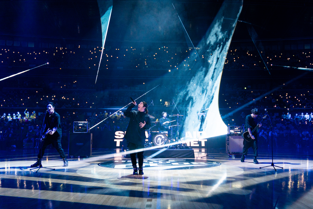 「Win / Lose」は、国内男子プロバスケットボールリーグ『B.LEAGUE 2021-22 SEASON』の年間公式テーマソング。ハーフタイムショーでは、ボーカルのYoshが「皆さんが声を出せない分、我々が精一杯気持ちを込めて演奏します」と気合たっぷりの挨拶からバンドの演奏がスタート。場内は多数のレーザーやジェットスモークがバンドの熱い演奏をより盛り上げ、観客も自らの携帯のライトを掲げ、会場の一体感をより助長させた。そして、万感の想いで演奏を終えると「ありがとうございました」と熱い感謝の言葉を残しパフォーマンスを終えた。
