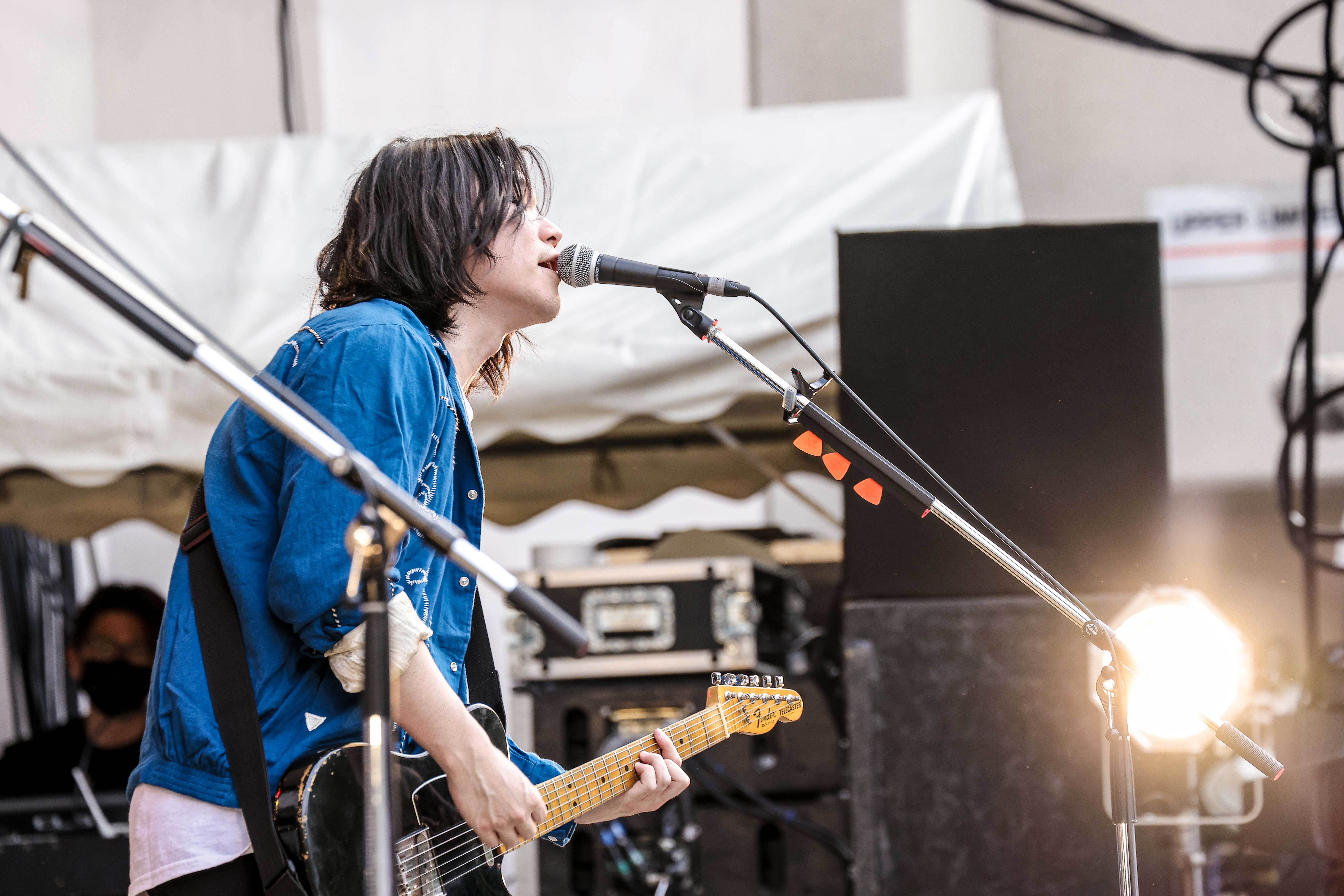 <初夏の風に吹かれながら>と歌詞を変えて歌った「ジャーニー」、叫ぶように声を張り上げ想いを込めた「さよならPeace」、苦しみを乗り越えてバンドに辿り着いた彼らの歴史や気持ちがしっかり伝わる「オーバーテイク・ミー」で、客席の心を掴んでゆく。MCでは稲生が改めて感謝を述べ「僕が音楽を支えにして生きているように、皆さんにとってそんな音楽が僕らのものであったらと思います」と表現者の矜持を口にして、次々にグッドメロディを披露。