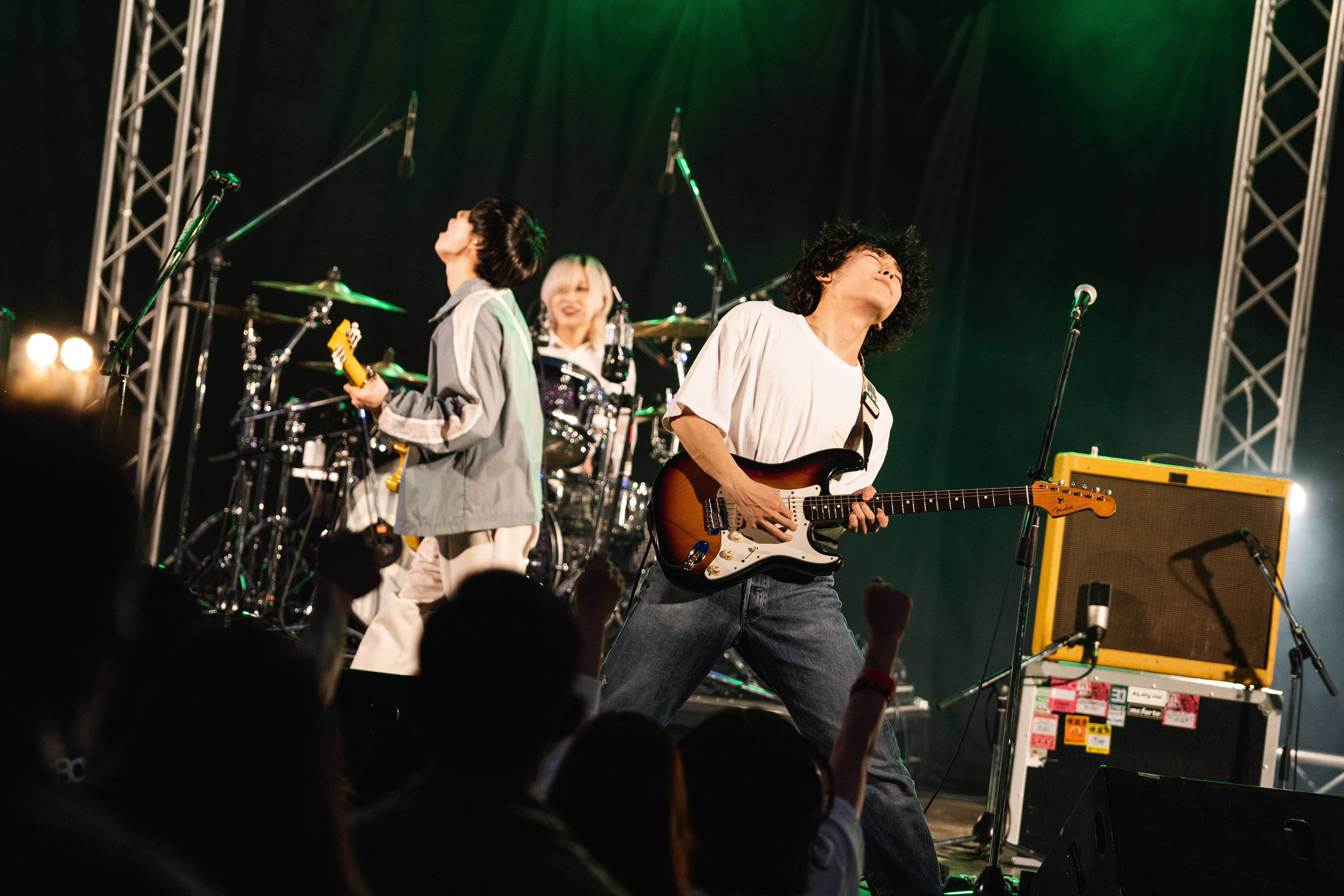 そんな運も味方につけて、日常の鮮やかさや切なさを歌う。ラスト2曲は一気に駆け抜けた。ふじいしゅんすけさん(Dr)がパワフルにビートを叩き込んだ「愛してやまない一生を.」を経て、1分半の「一瞬」をドロップ。はちきれそうなほど瑞々しい等身大のロックを鳴らし、青い余韻を残してステージを去った。