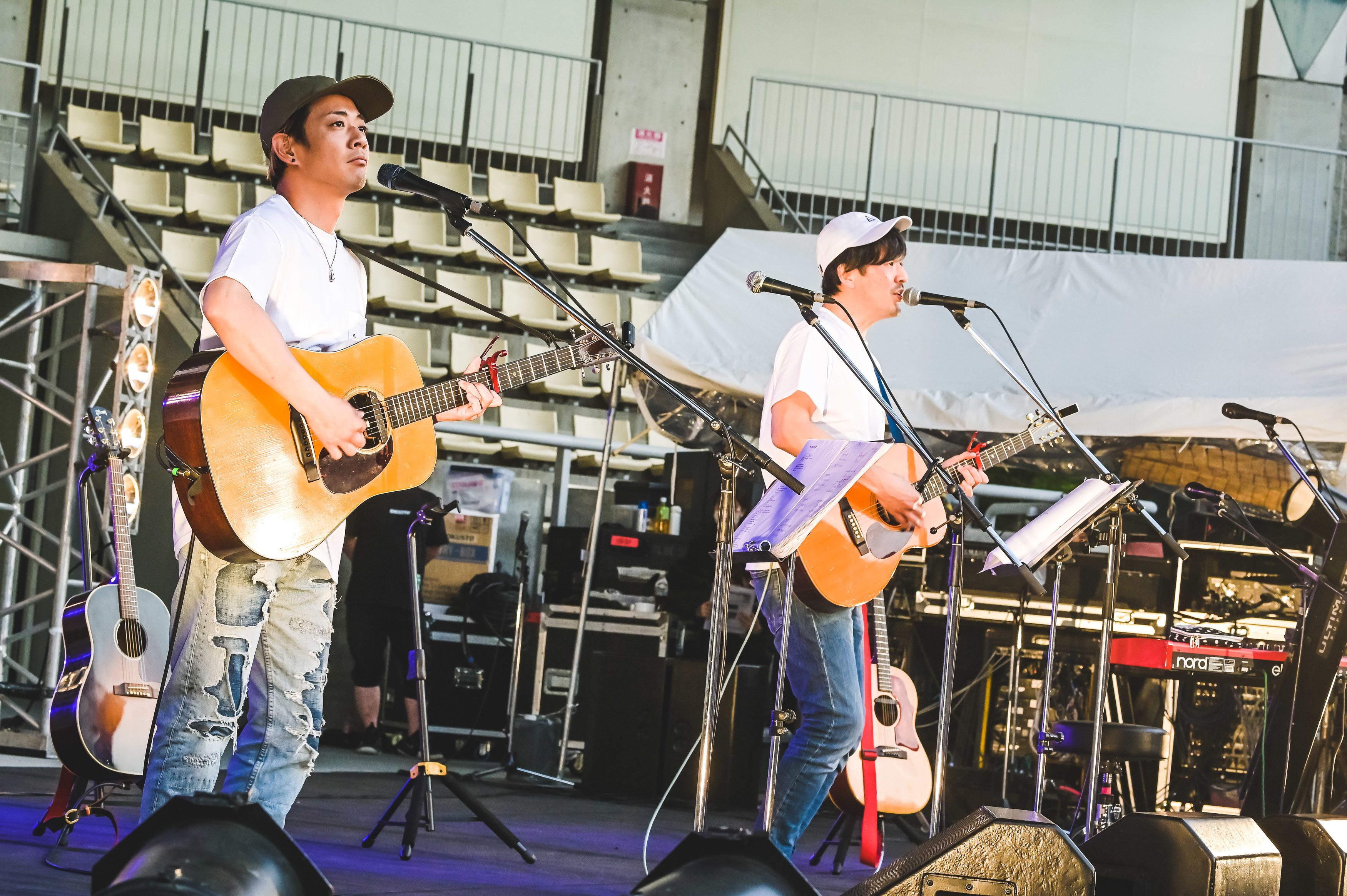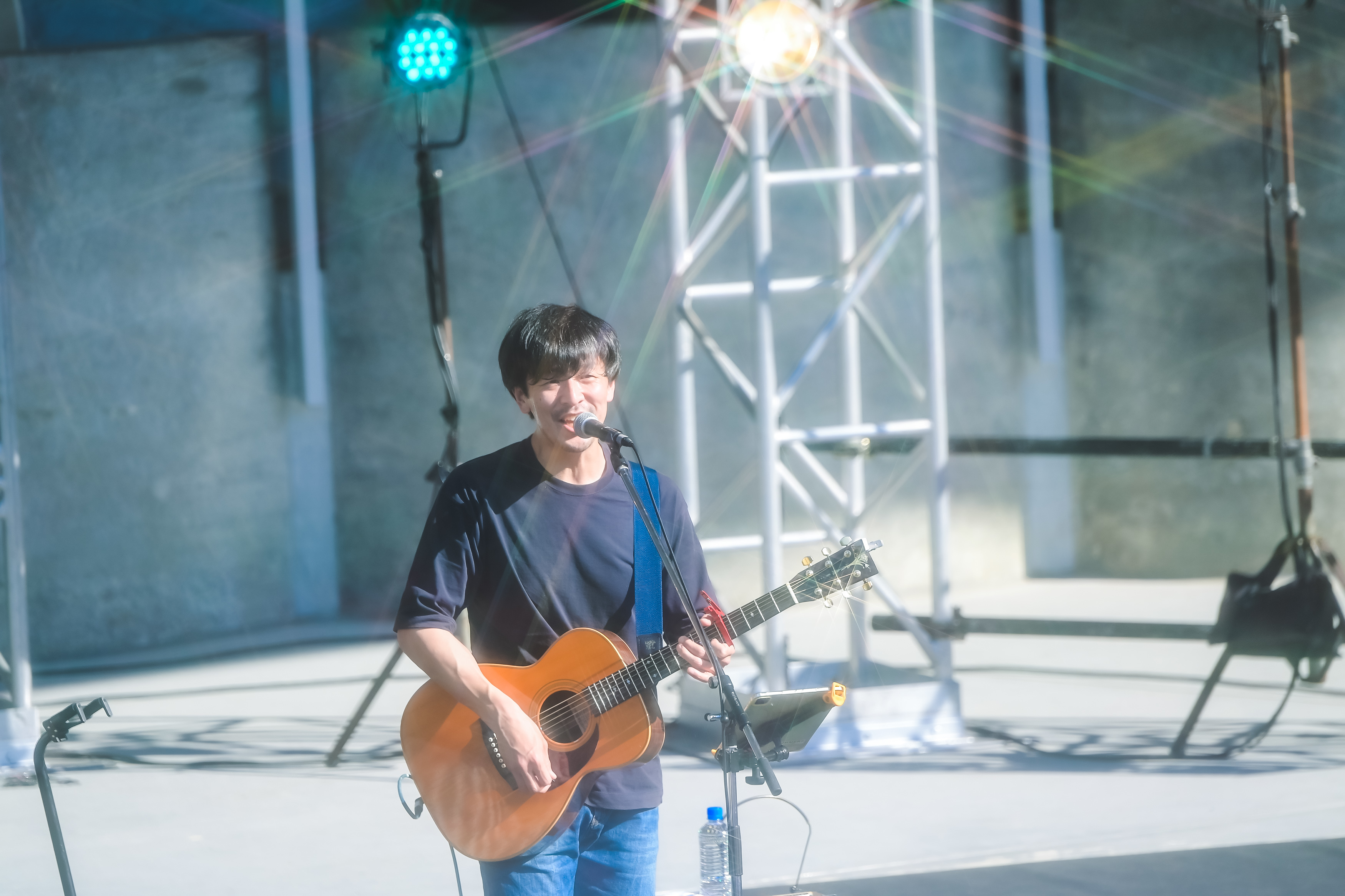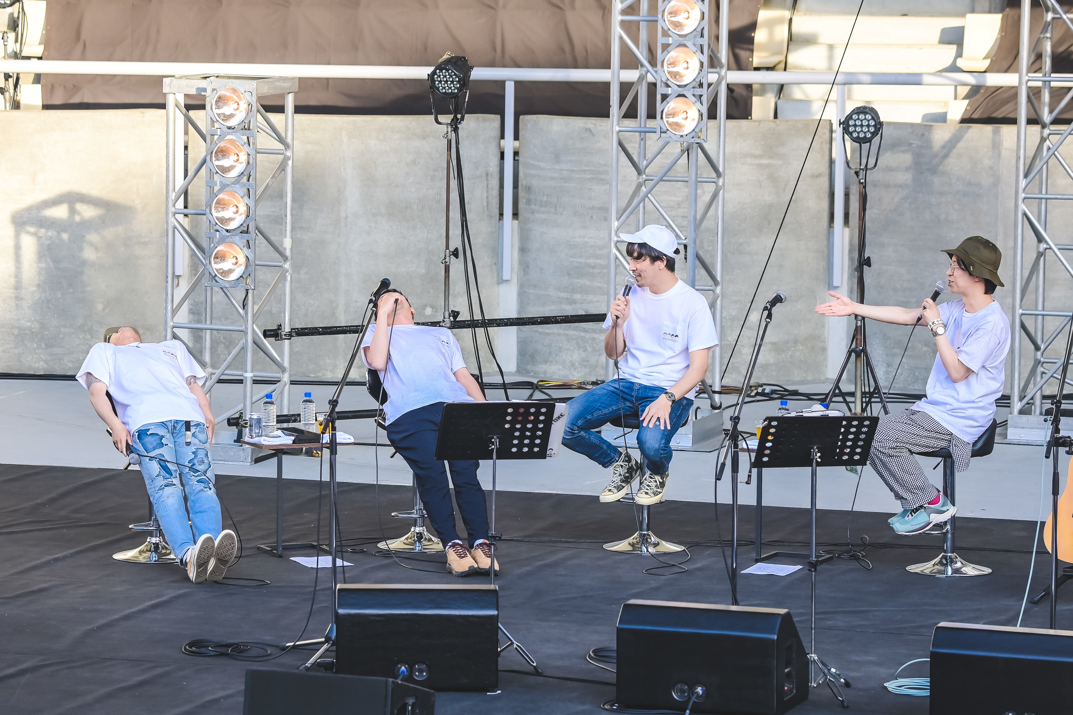その後は、今後のリリースやツアー予定についてトークしながら、好きなタイミングでお花摘みに行く(トイレタイム)など終始自由な時間がながれ、気ままにお互いの持ち曲をコラボしていく。弾き語りのスタイルも性格も異なる4人。さまざまな化学反応が生まれ、同じ曲でも新鮮に響くこのシステム、今後も無限に続けていけそう……。「初の野外開催、とってもいい日になりました」最後は4人でギターをかかえ、まさに四絃一撥なパフォーマンスで「奥田民生/さすらい」を。