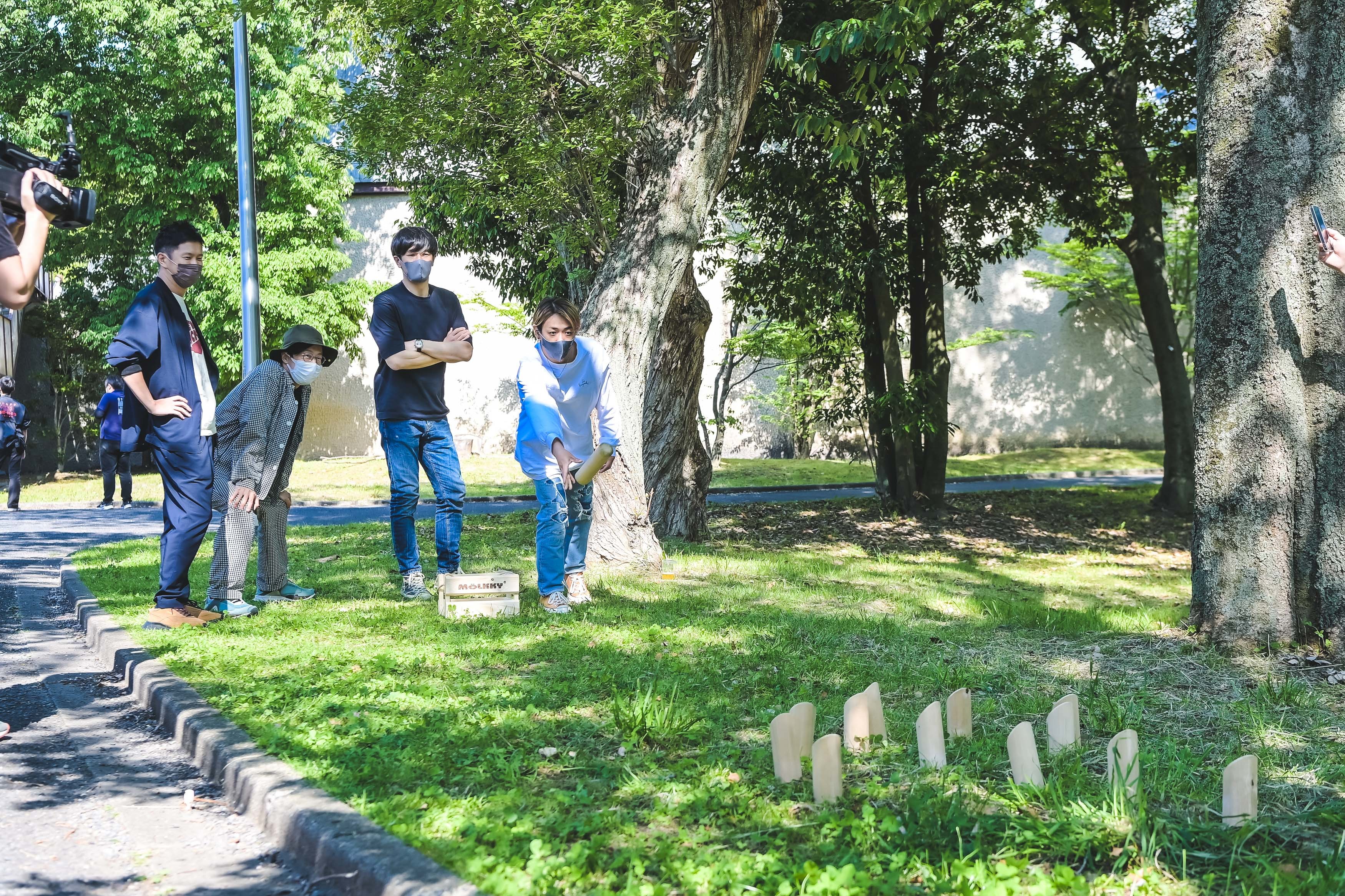 本イベントは、それぞれの弾き語りによる1部と4人によるトーク&コラボステージの2部構成。毎回恒例となっている1部の出順決めは、北欧発祥のスポーツ「モルック」で行われ、対戦の様子は、開演前に会場裏からインスタライブで生配信された。モルックとは、木製の棒を投げて獲得した点数を競うボーリングのようなシンプルな競技。1投ポイント制で対戦した結果は、1位Keishi、2位荒井、3位村松、4位ホリエとなり、この順番で希望の出順を選択。2位の荒井が早々にみんなが敬遠する1番手に名乗りを上げ、漢気を見せた。