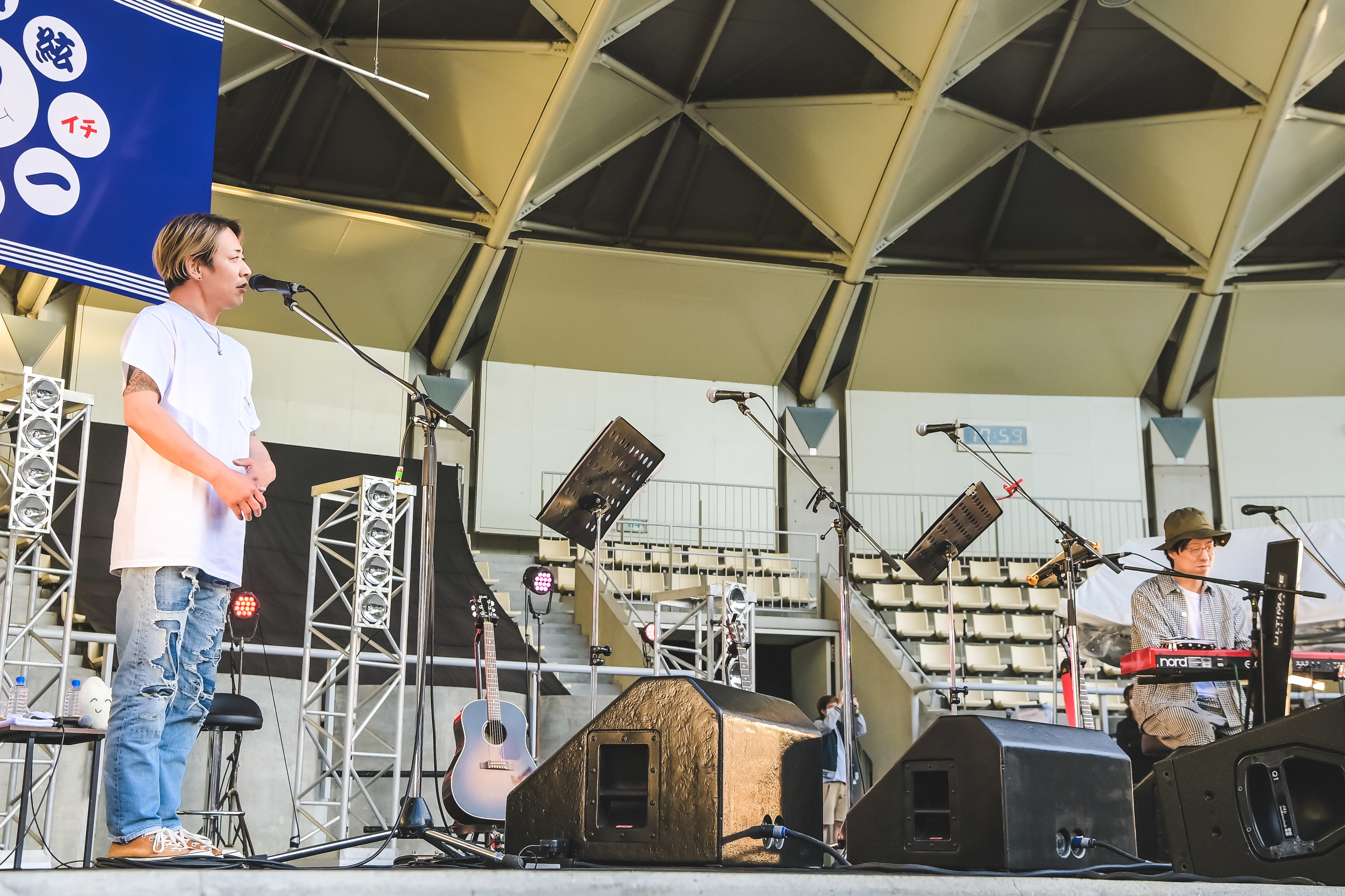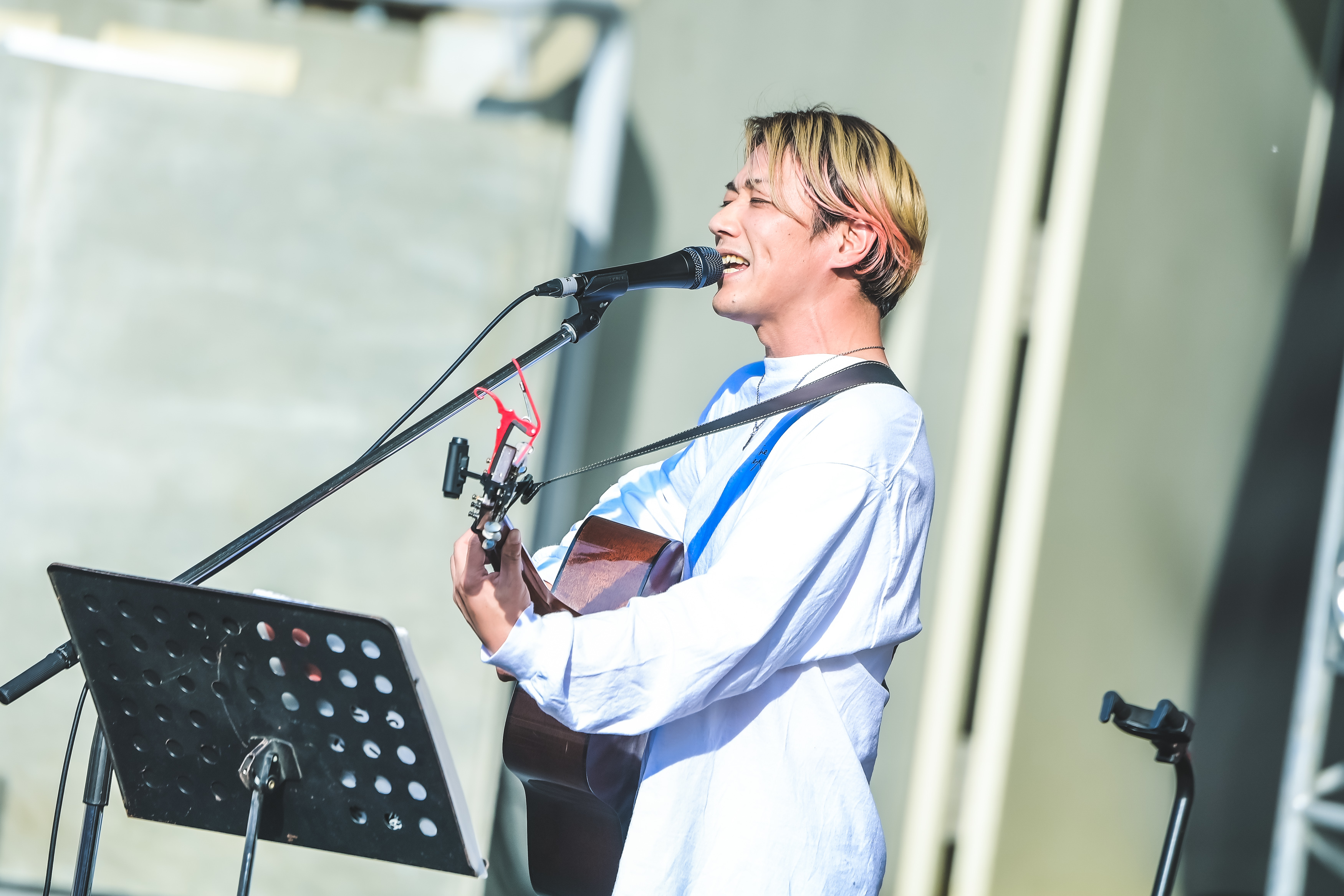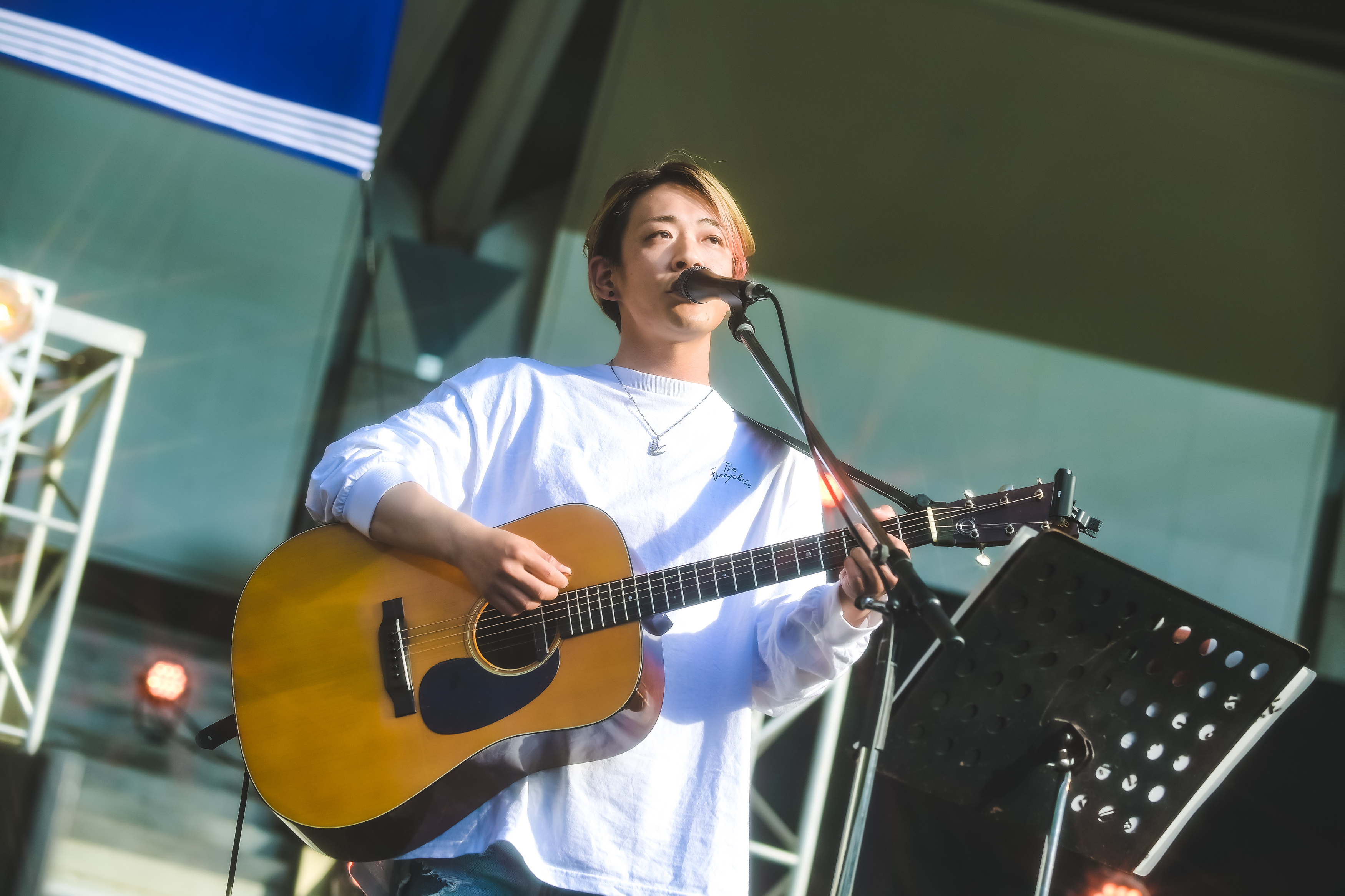 そして、先ほど親友・Keishi Tanakaが自身の提供曲を披露したことを受け、今度はKeishiが書いてくれたという楽曲「ラブレター」を。1曲目のエモーショナルな歌唱とは対照的に、男らしさと色気漂う歌声で魅了する。流麗なギターの音色が涼やかな風に溶けていくようで心地良い。「さっき酒呑みながら(ライブを)観てたんですけどすごくいい感じ。最近見てなかった景色だなと」感慨深く会場を見渡していた。